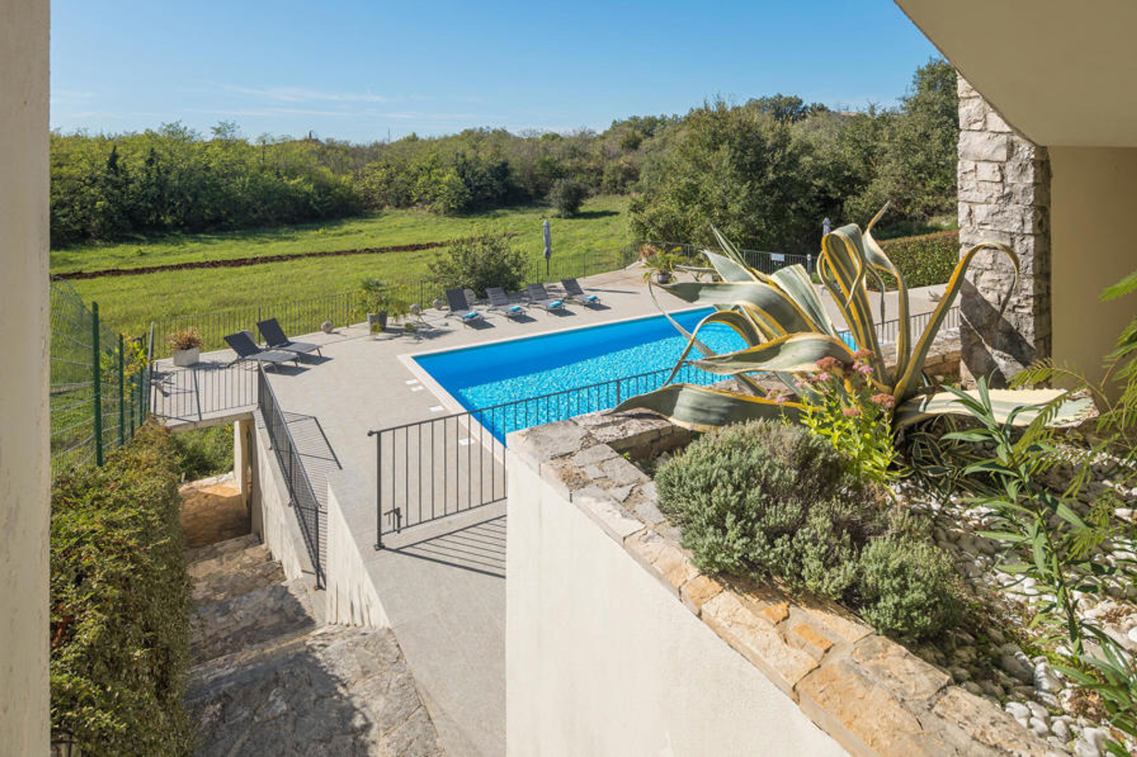 In the small village of Bibali, near the town of Buje, you will find this lovely and modern two-storey vacation apartment. Furnished with modern and comfortable furniture, it is a dream for everyone who is looking for peace and relaxation, but also that certain something on vacation. The apartment is located in the villa with four other vacation apartments, which are also rented. The bedrooms are located on the first floor, while the kitchen, living room and dining room are located upstairs. In the common garden the outdoor pool is waiting for you to cool down and have fun. The rich surrounding nature will make you feel as if you are in the middle of the green mountains, while here you are only twenty minutes drive from the beautiful beaches of Umag. Buje is located in the north of Istria, 10 kilometers inland from the Adriatic Sea. Due to its prominent position on the top of the hill, it is visible from far away. From here the view of the whole area opens up. Olive groves and vineyards spread all around the terraces. In spring you will have the opportunity to pick your own wild asparagus. If you prepare it with eggs, it becomes the traditional Istrian dish Fritaja. If you are tired of international cuisine, we recommend you to visit an 'agrotourism'. Here you will be offered only local food - in such establishments only products from their own production are allowed to be served. Only a few years ago, only a few hardy adventurers exchanged the blue waves of the sea for the green hills of the hinterland. The charm of the hinterland known as the Croatian Tuscany is attracting more and more people: the hilly landscape, elegant cypress trees, quaint stone houses and ancient mountain villages.