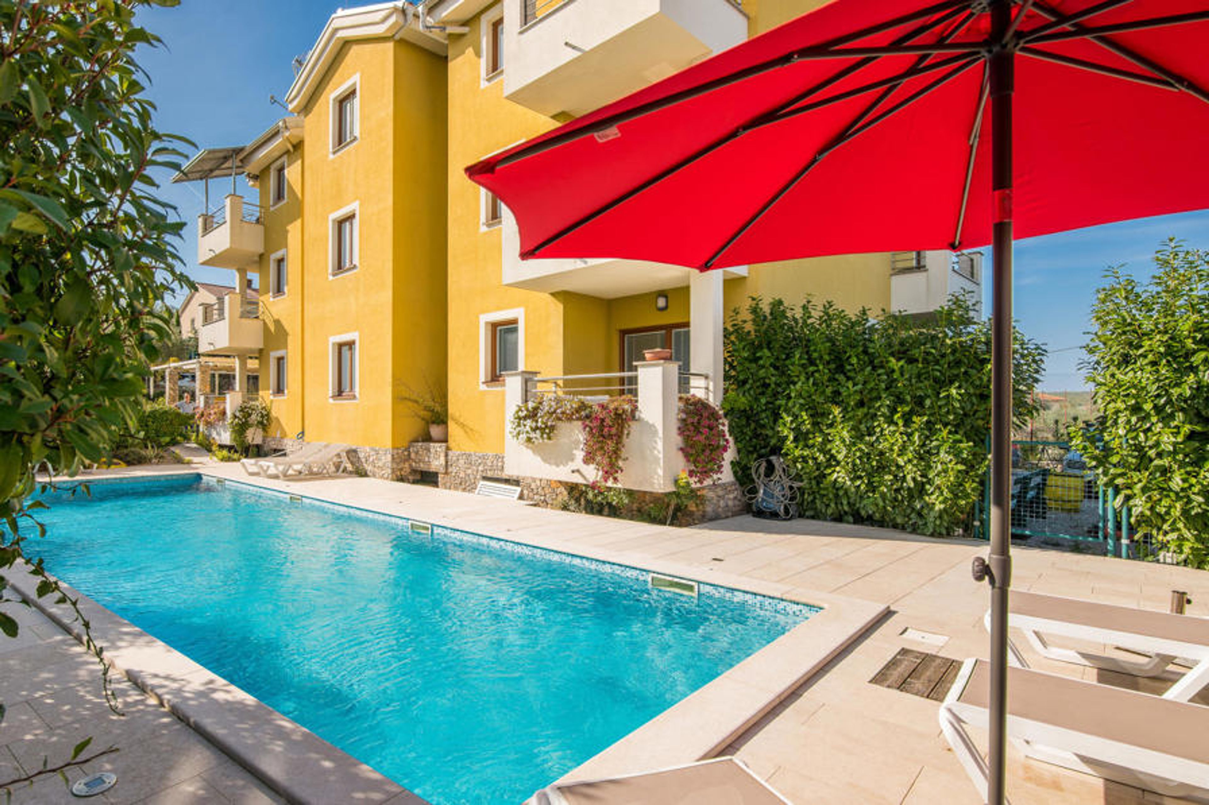 Near the town of Krk, in the small Salatic and in a quiet environment are located these beautiful and stylish apartments in a residential building. Here you will be offered high comfort. On the large property there is a pool, a covered terrace with barbecue and a specially equipped children's playground with swing, seesaw, slide and sandbox. Everything is prepared for your undisturbed relaxation in the quiet environment. Not only relax, you can also be active. There are varied cycling and hiking trails in the region. On the property there is a charging station for electric cars and bikes.