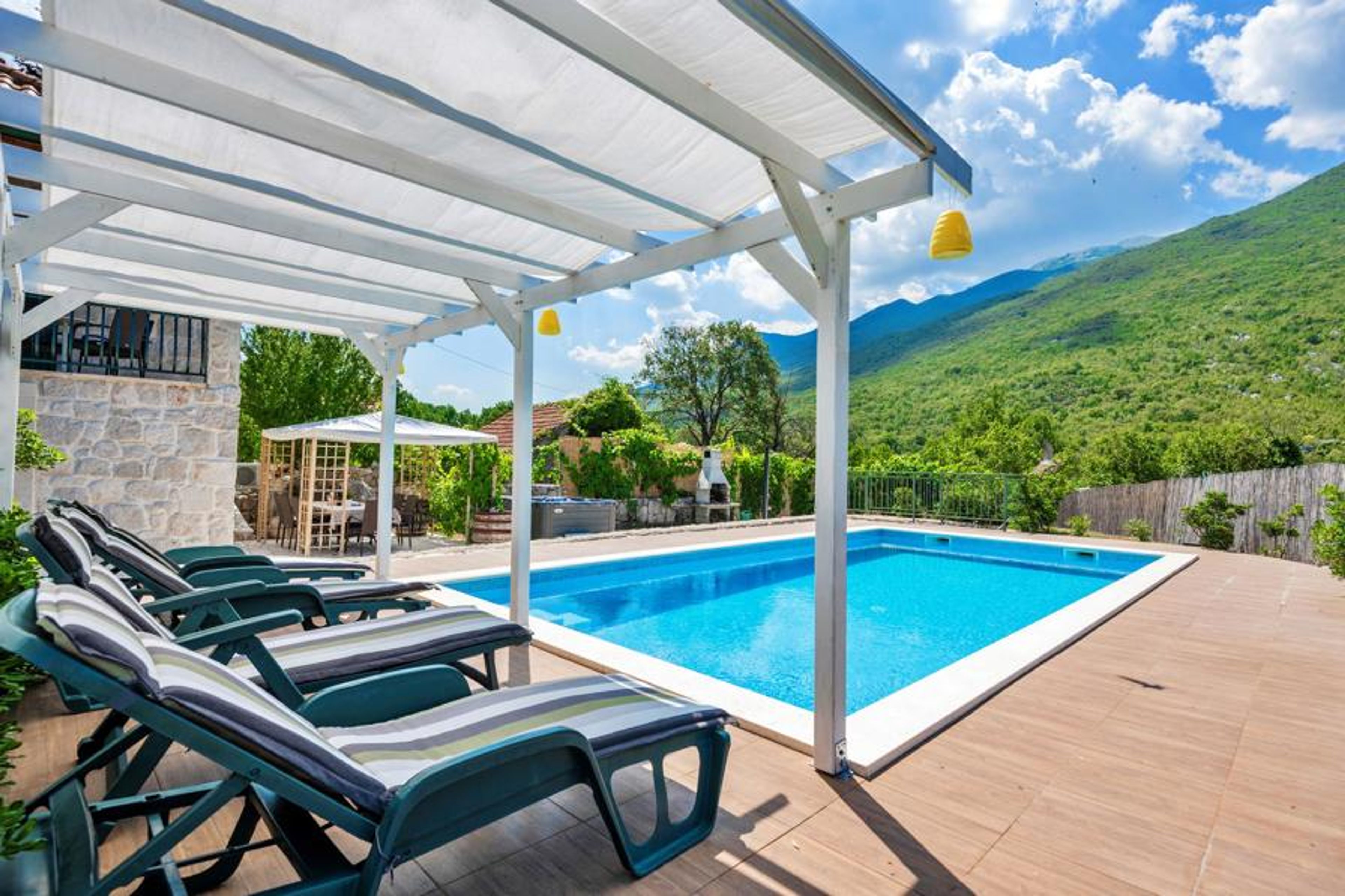 This completely renovated stone house in authentic style is located in the interior of central Dalmatia. It is tastefully furnished and spreads over two floors, which are connected by an external staircase. The pool terrace provides refreshment and relaxation in the hot summer days. In front of the house there is also the terrace with barbecue, from which you can enjoy the view of the northern side of the Biokovo Nature Park, while a children's playground and outdoor content provide fun and entertainment. An infrared sauna is available in the fitness room, as well as an outdoor jacuzzi by the pool.