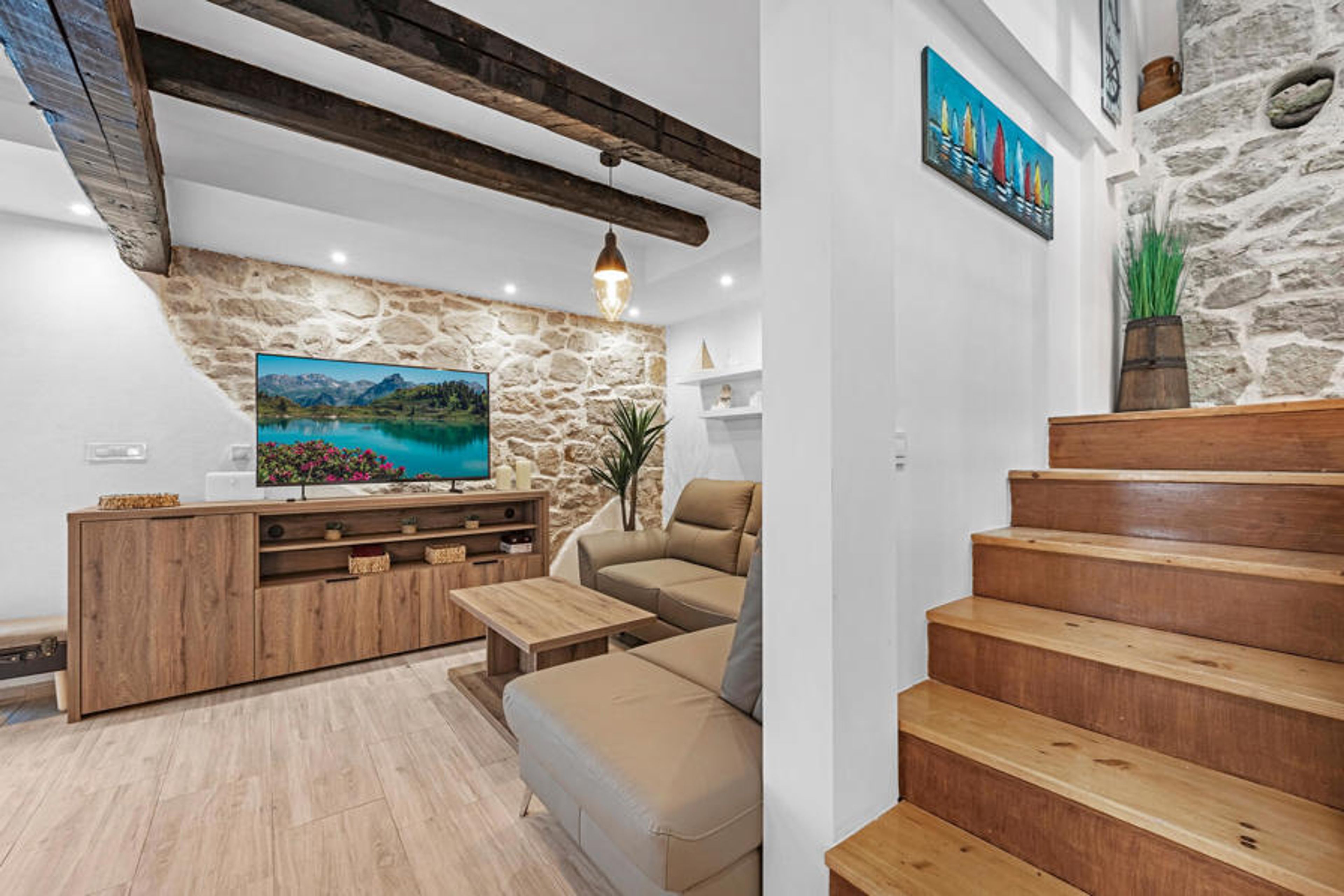 A combination of modern architecture and ancient walls is combined in this tastefully furnished holiday house, which is situated directly on the sea, in the village Murter.