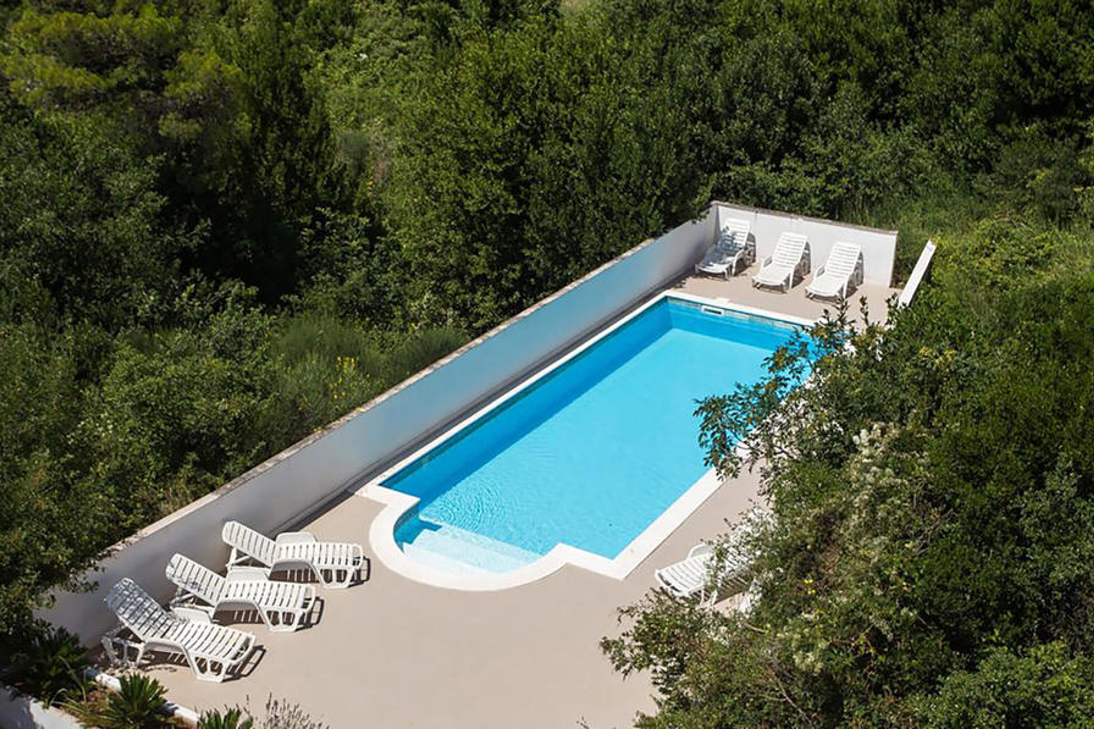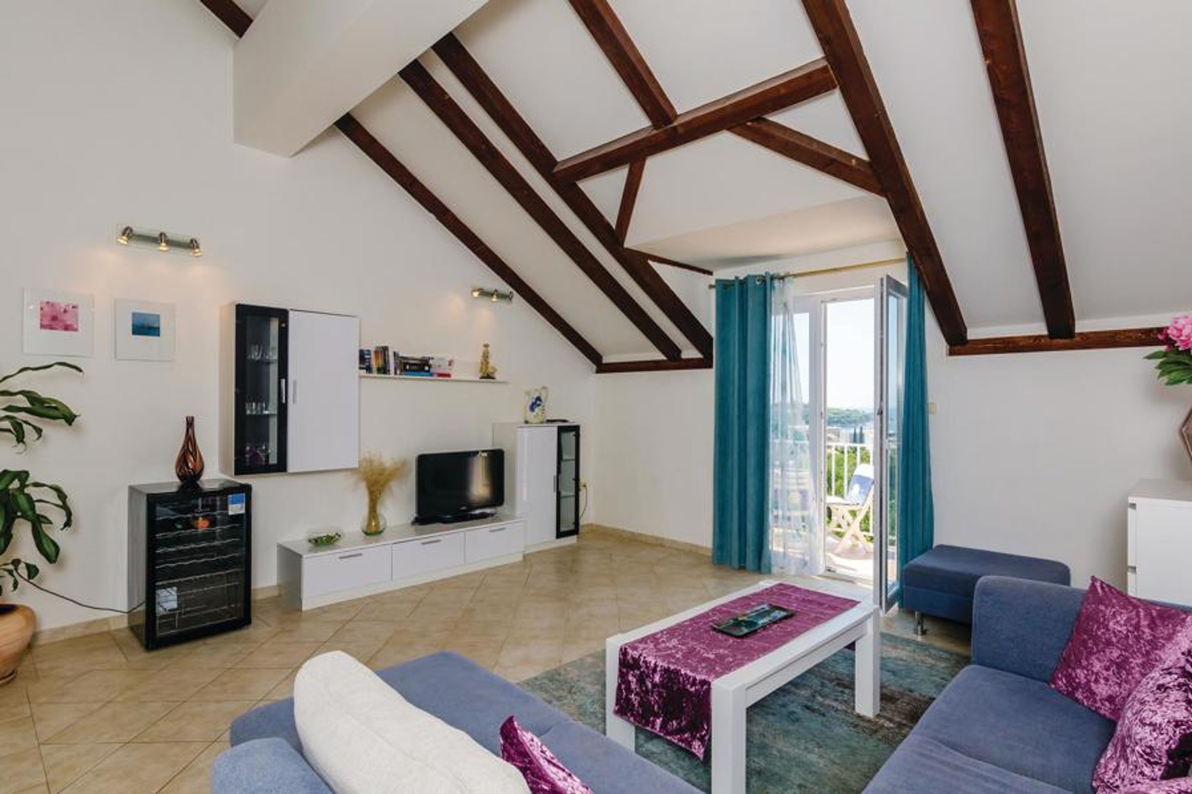 This simply furnished apartment is located in an apartment building, in a beautiful part of Cavtat and is ideal for families. The apartment is spread over two floors which are connected by internal stairs. On the second floor you can reach the large terrace from the living area, from where you can enjoy the beautiful view of the sea. At the back of the house you have a terrace with barbecue. Further stairs will take you to the community pool, which is located about 40 meters away.
