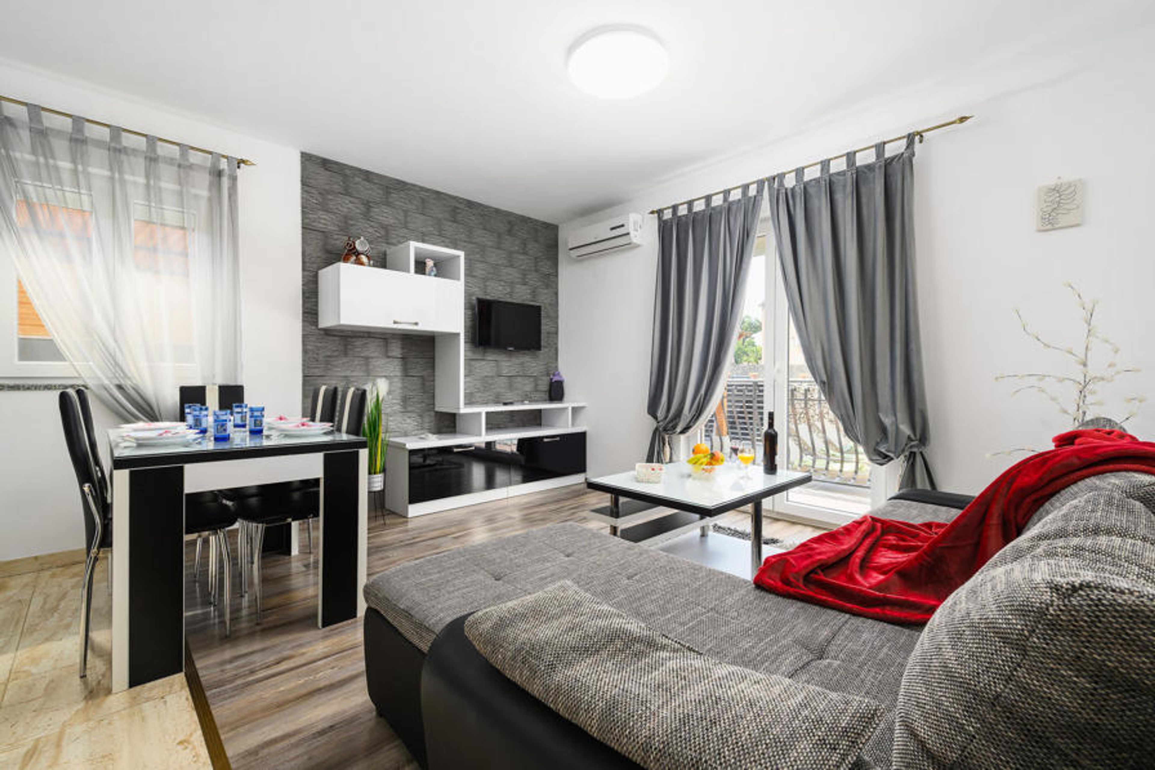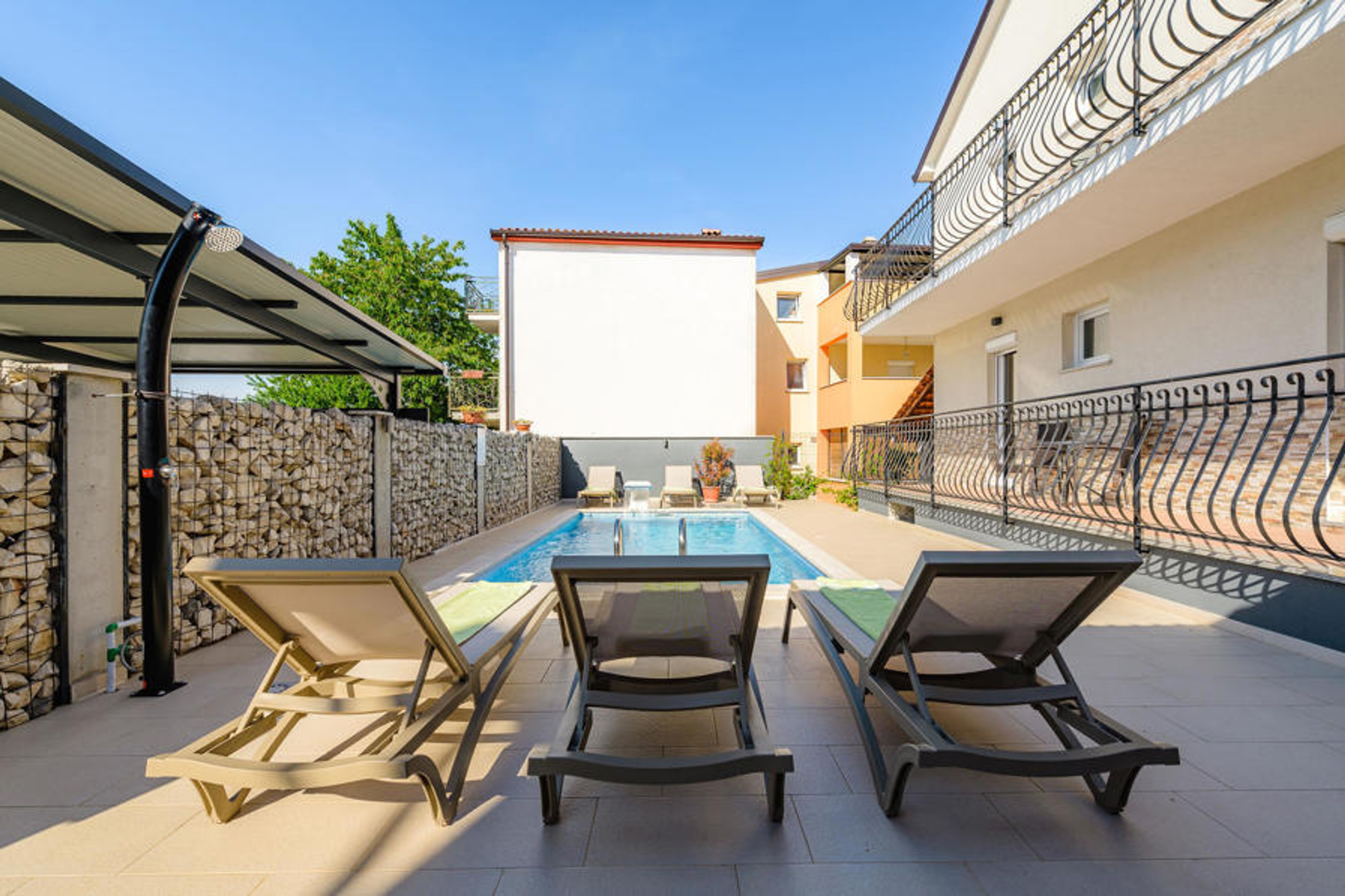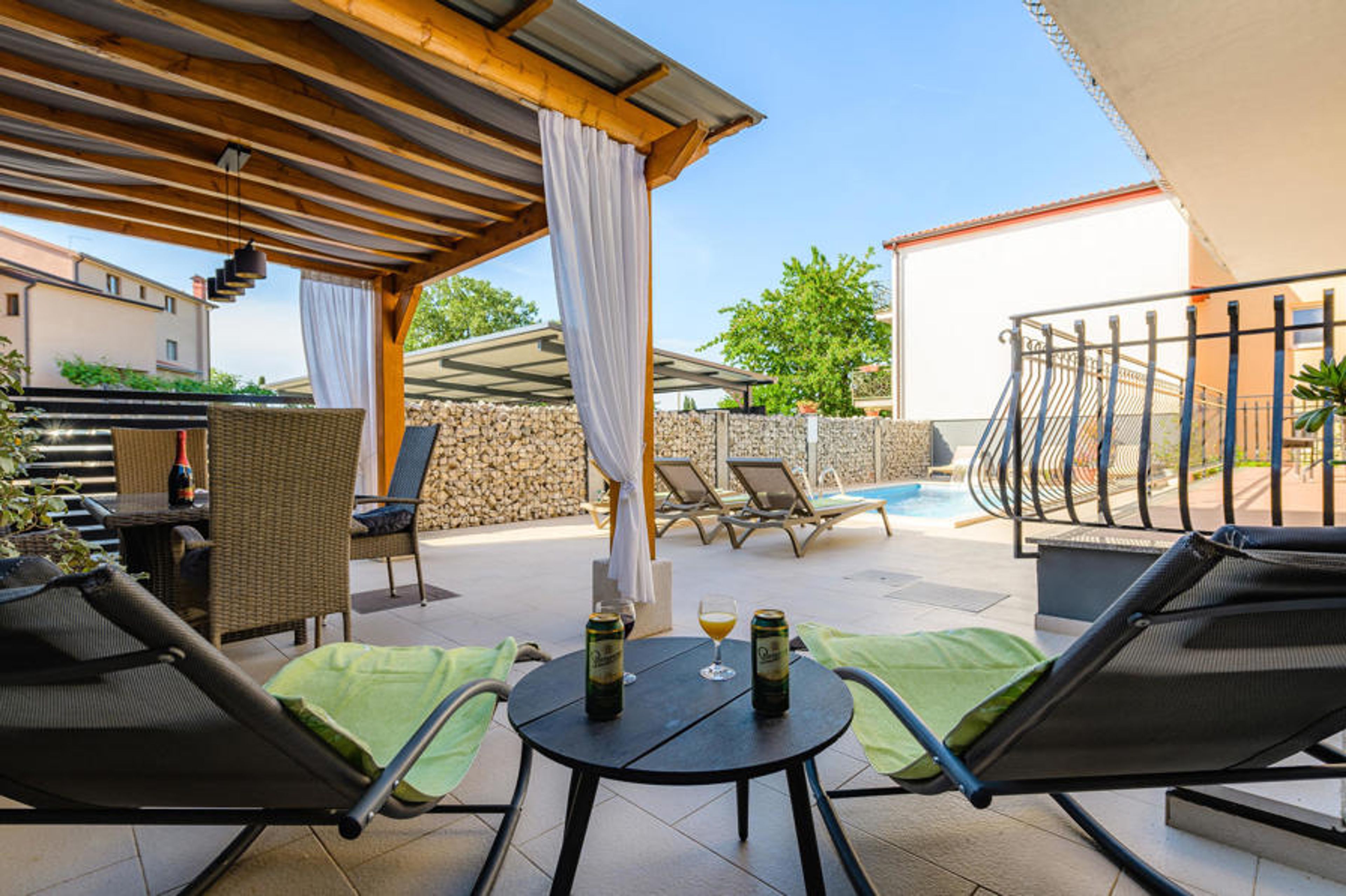 Fabulous vacation house with tasteful interior in the village of Rovinjsko Selo, near the romantic old town of Rovinj. It consists of two apartments with similar furnishings. Due to the good distribution of space, this vacation home is suitable for a vacation of two families, for a joint vacation with privacy. In addition to the large balconies, there is a covered terrace for a cozy get-together. Swim at the beautiful beaches and bays along the Riviera and walk along the vibrant promenade of Rovonji, where many restaurants and taverns await you.