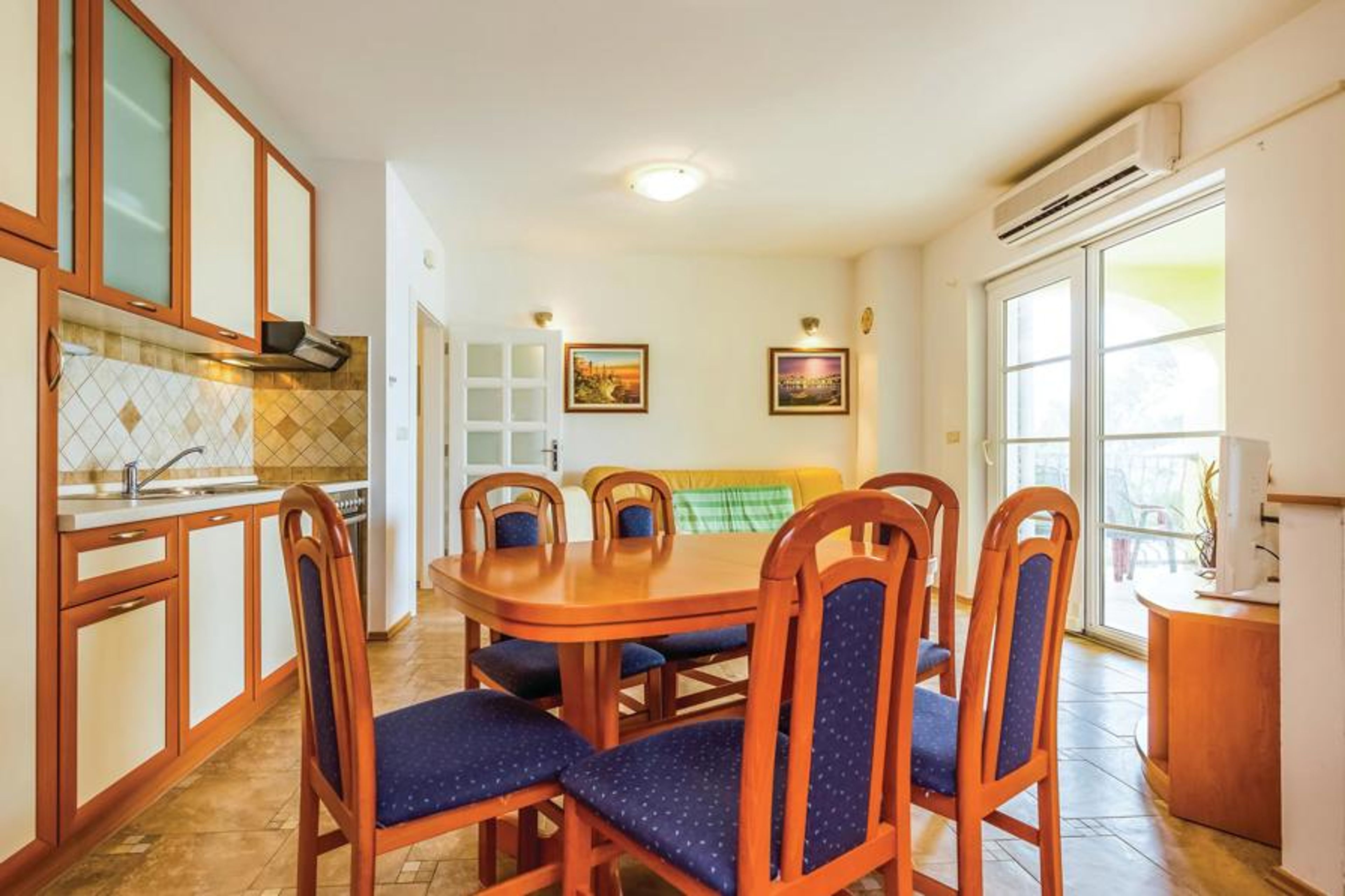 Enjoy the beautiful view of the sea and the town of Rab from this tastefully furnished apartment, which is located on the second floor. The covered terrace with garden furniture also overlooks the sea and is a great place to relax after pleasant days of swimming. The proximity to the beach, restaurants and clubs are other advantages of this vacation home, so you can listen to the music of the nearby sitting gardens and night clubs. You can also visit the town of Rab, which is easily accessible via the beach promenade.