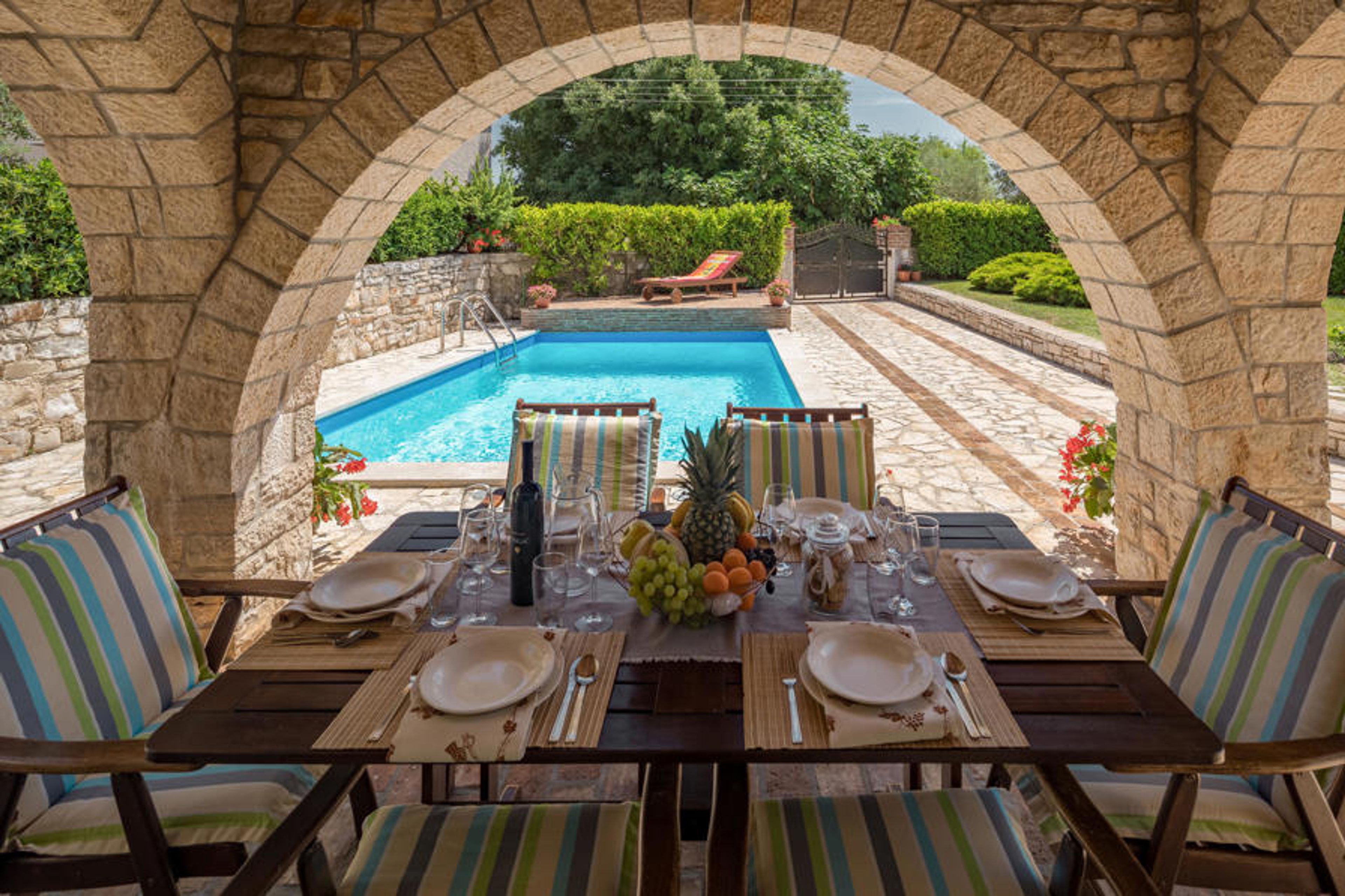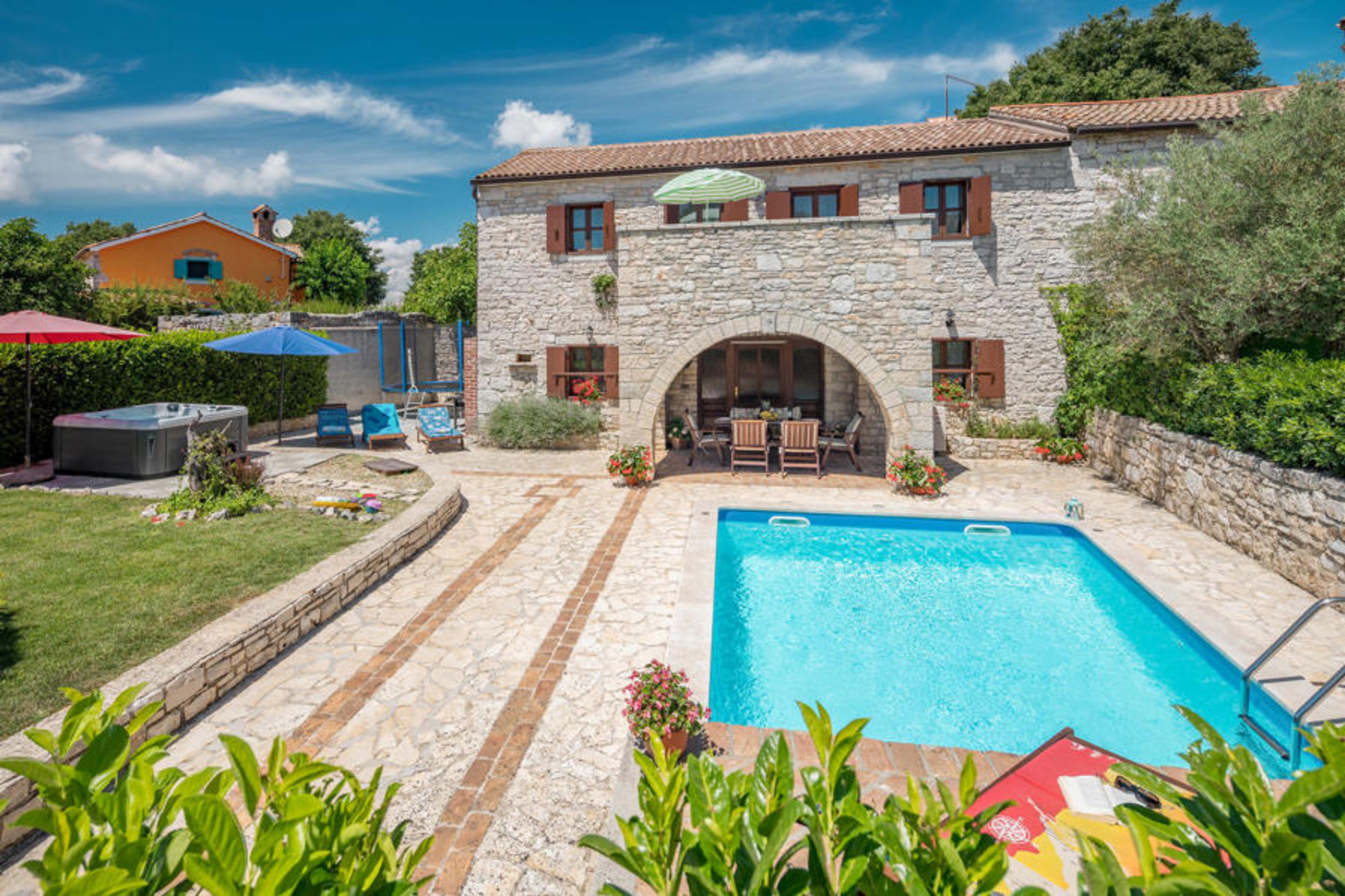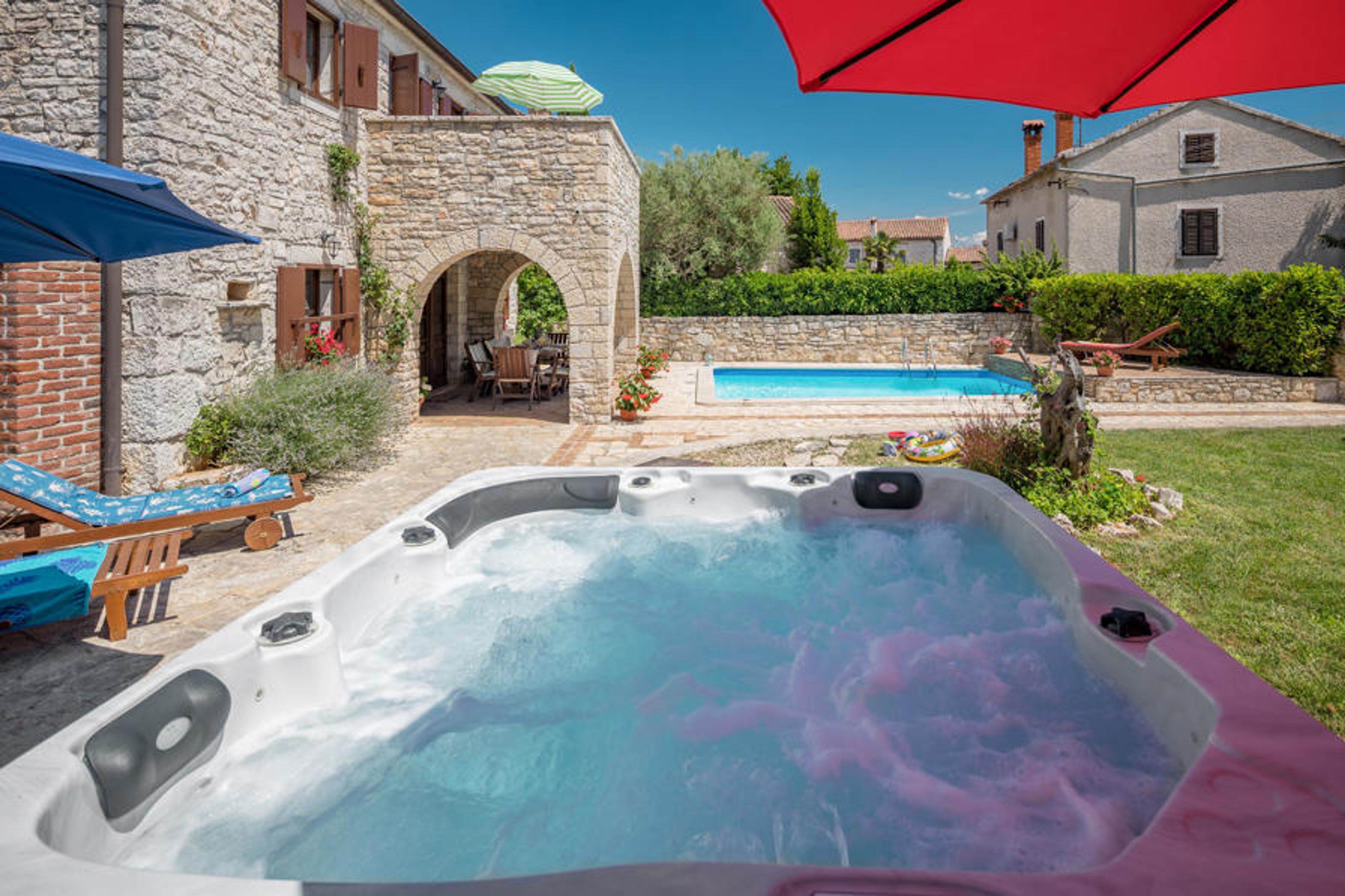 Do you appreciate the tranquility of small places, refreshment in the pool on hot days and all this with a view of a green and blooming landscape? Do you value tasty dishes in good konobas, nice people and a cozy atmosphere? Then this vacation home in typical Istrian style is just right for you! It is located in the tranquil village of Marasi and is furnished in a rustic, elegant and partly antique style. Relax by the beautiful swimming pool and enjoy the excellent local wine. The children have plenty of space to play and romp, in addition to the swing and sandbox. We recommend, among other things, a trip to Vrsar! Here you will find beautiful beaches and small, cozy konobas with traditional dishes. In Porec you can stroll through narrow streets and visit one of the numerous cafes. An experience for children is the Dinosaur Park in Funtana. It is the second of its kind in Europe. Here you can admire the dinosaurs in true size and in motion.