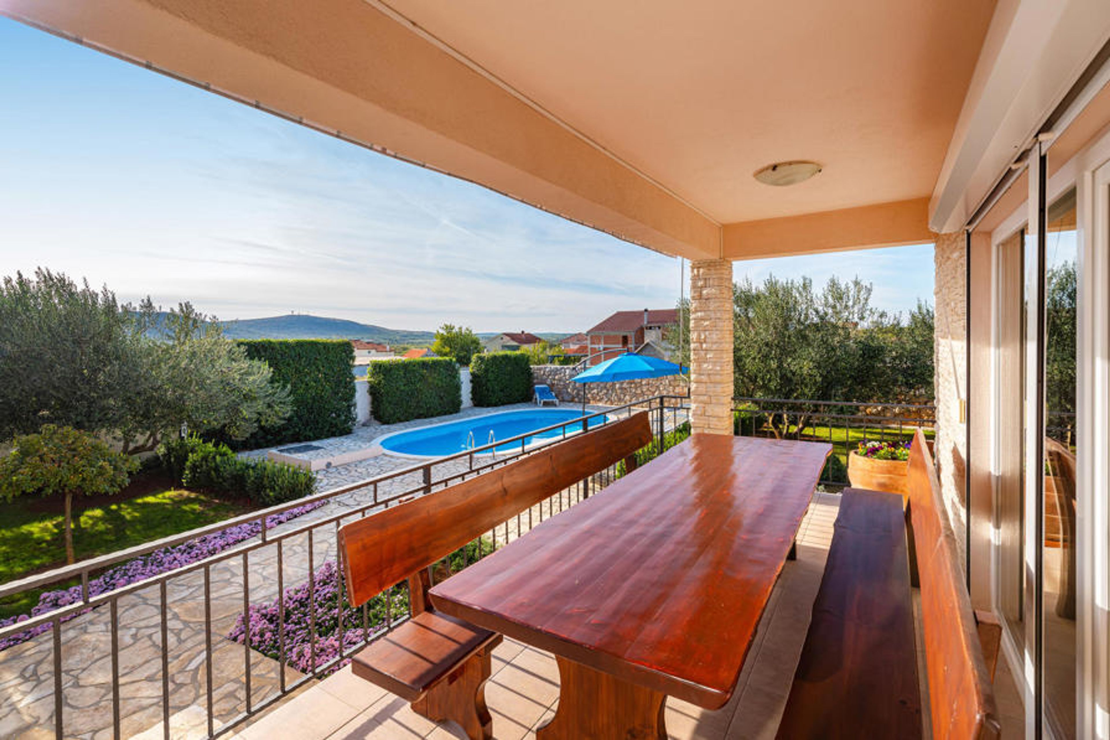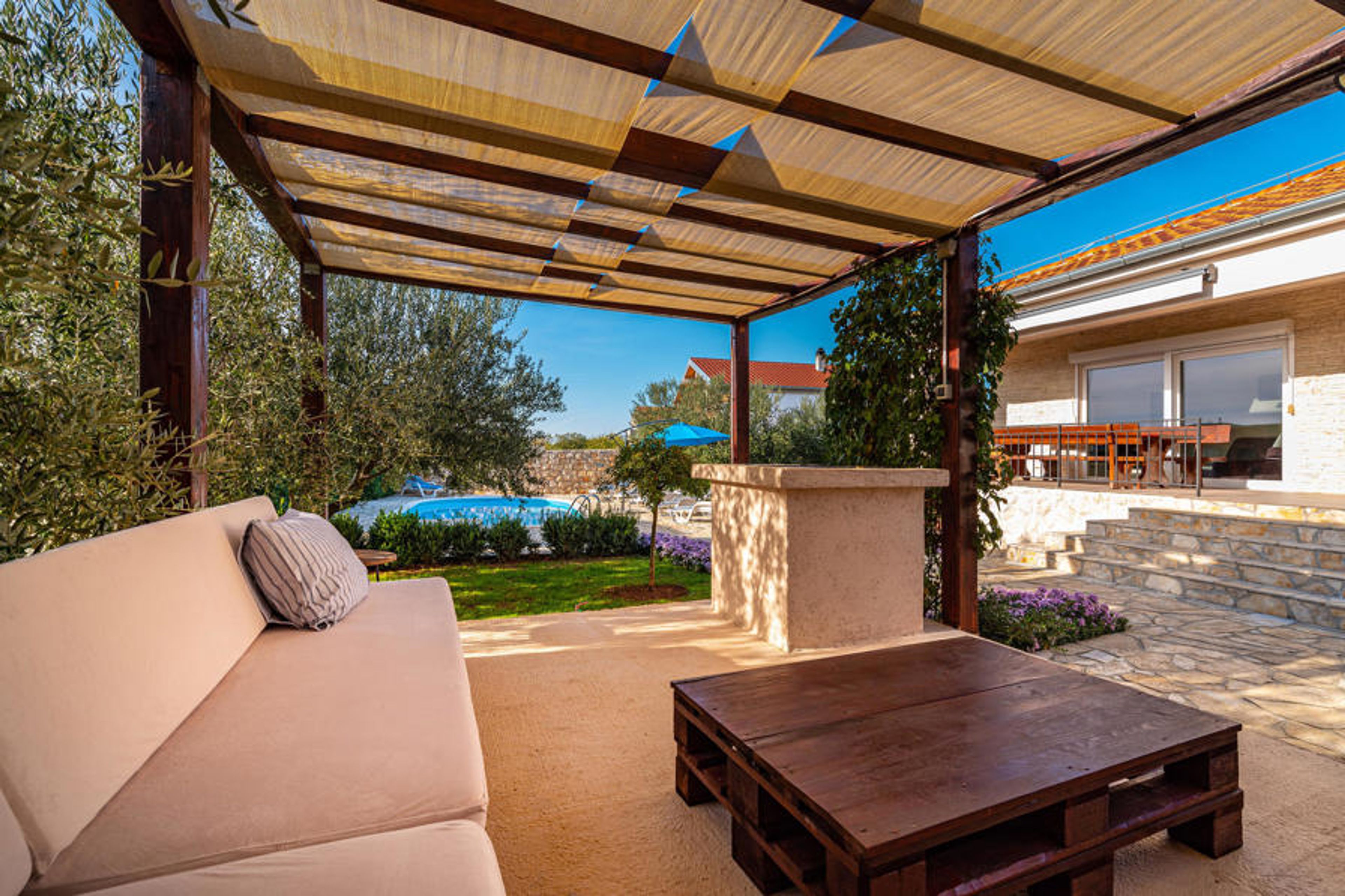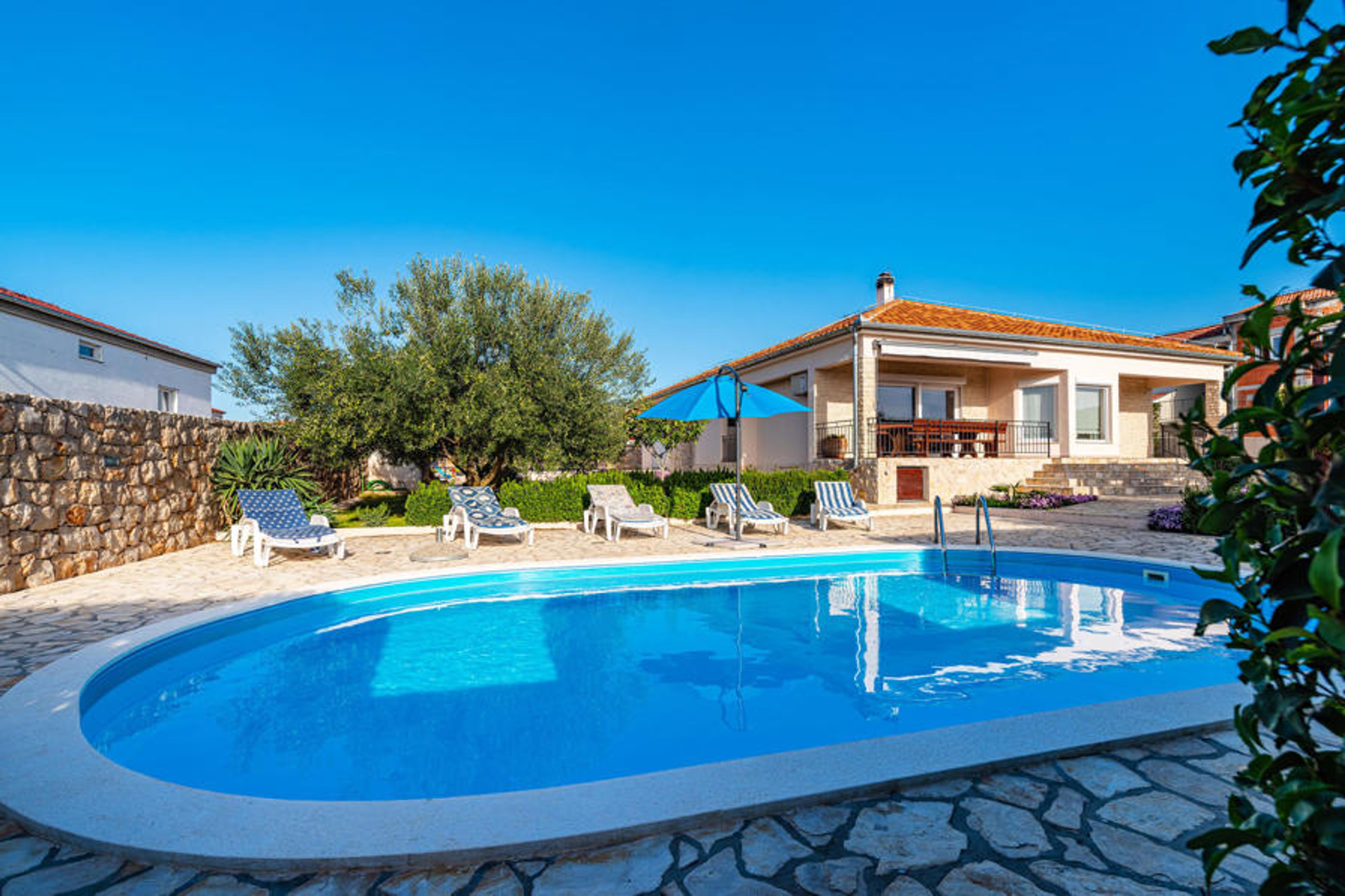 Spend your vacation in this beautiful bungalow and enjoy the Mediterranean flair in the garden. On warm summer evenings you can relax on the covered terrace. The swimming pool with sun loungers is located in front of the house and next to it are playground equipment and a barbecue. The vacation accommodation is tastefully furnished. In the basement you will find an activity room with bathroom. Gorica is located about 7 km from Sveti Petar, where the nearest beach is located. You can also visit Zadar, which is about 24 km away. There is a beautiful old town and with the greeting to the sun and the sea organ, modern architecture also awaits you there.