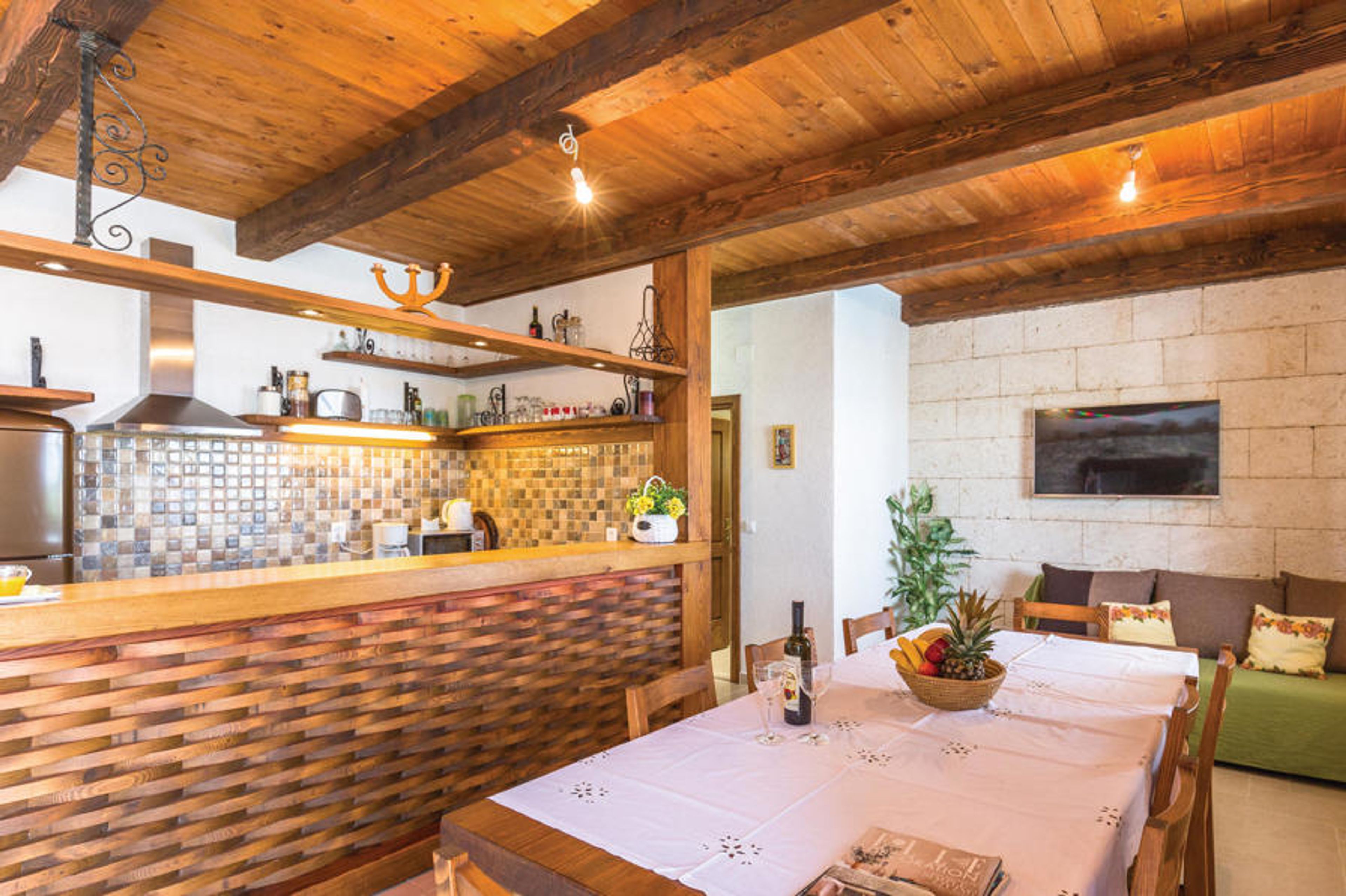 This well-furnished vacation home with pool and terraces, from which you can enjoy a beautiful panoramic view of the sea, is located in the small village of Gornje Tucepi, below the Biokovo Nature Park. The vacation home consists of a first floor where there is a kitchen, a living room with a fireplace, a recreation room and an extra toilet. On the upper floor there are two bedrooms, each with its own bathroom. The floors are connected by external stairs. The nearest beautiful pebble beaches are about 2 kilometers away. It is also recommended to try the leisure activities in the popular tourist town of Makarska.