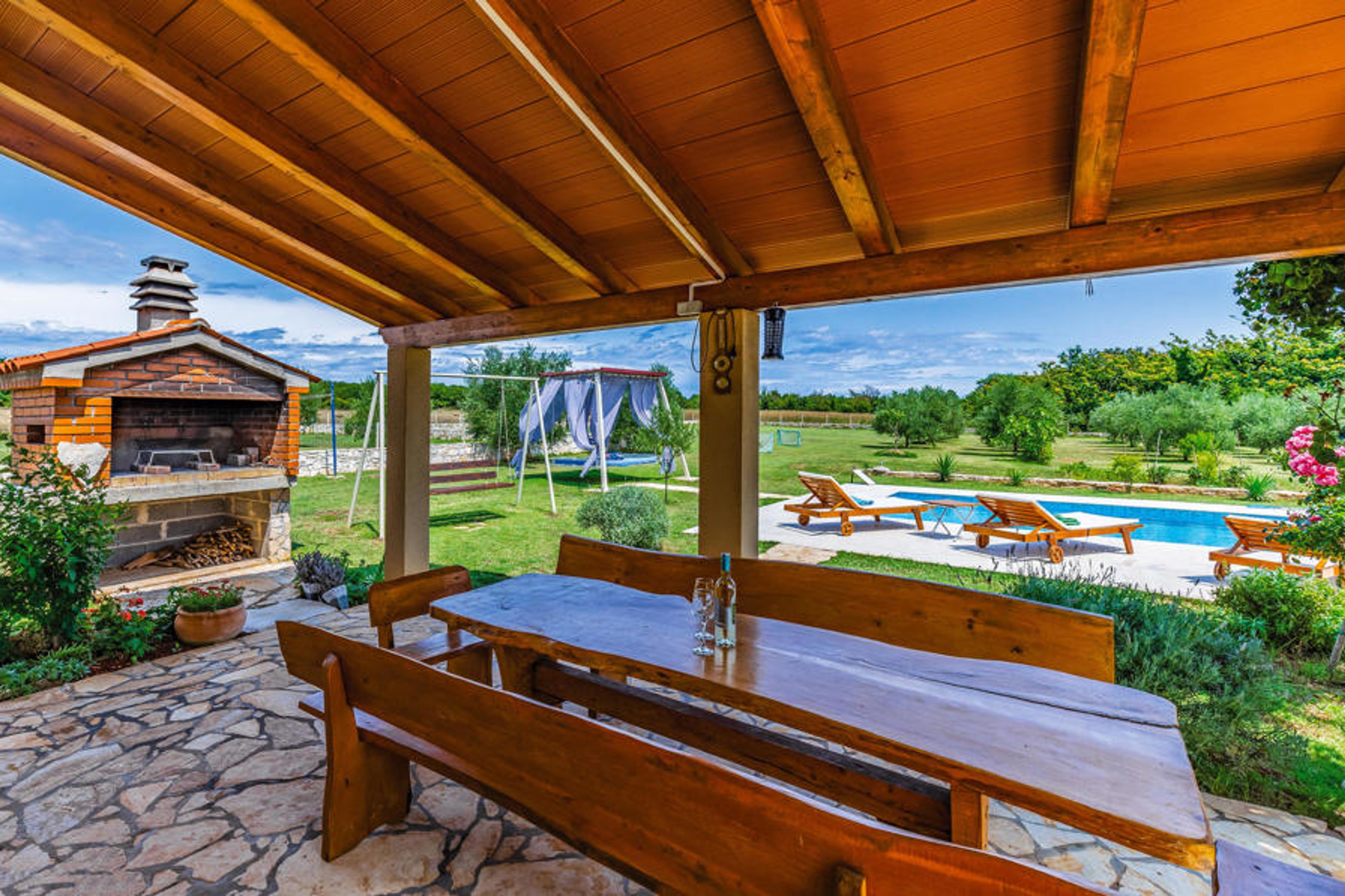 Realize your well deserved holiday in this beautiful holiday house with pool, which is located on a plot of approximately 5500 m². The plot is a bit secluded, near the village Šišan.
