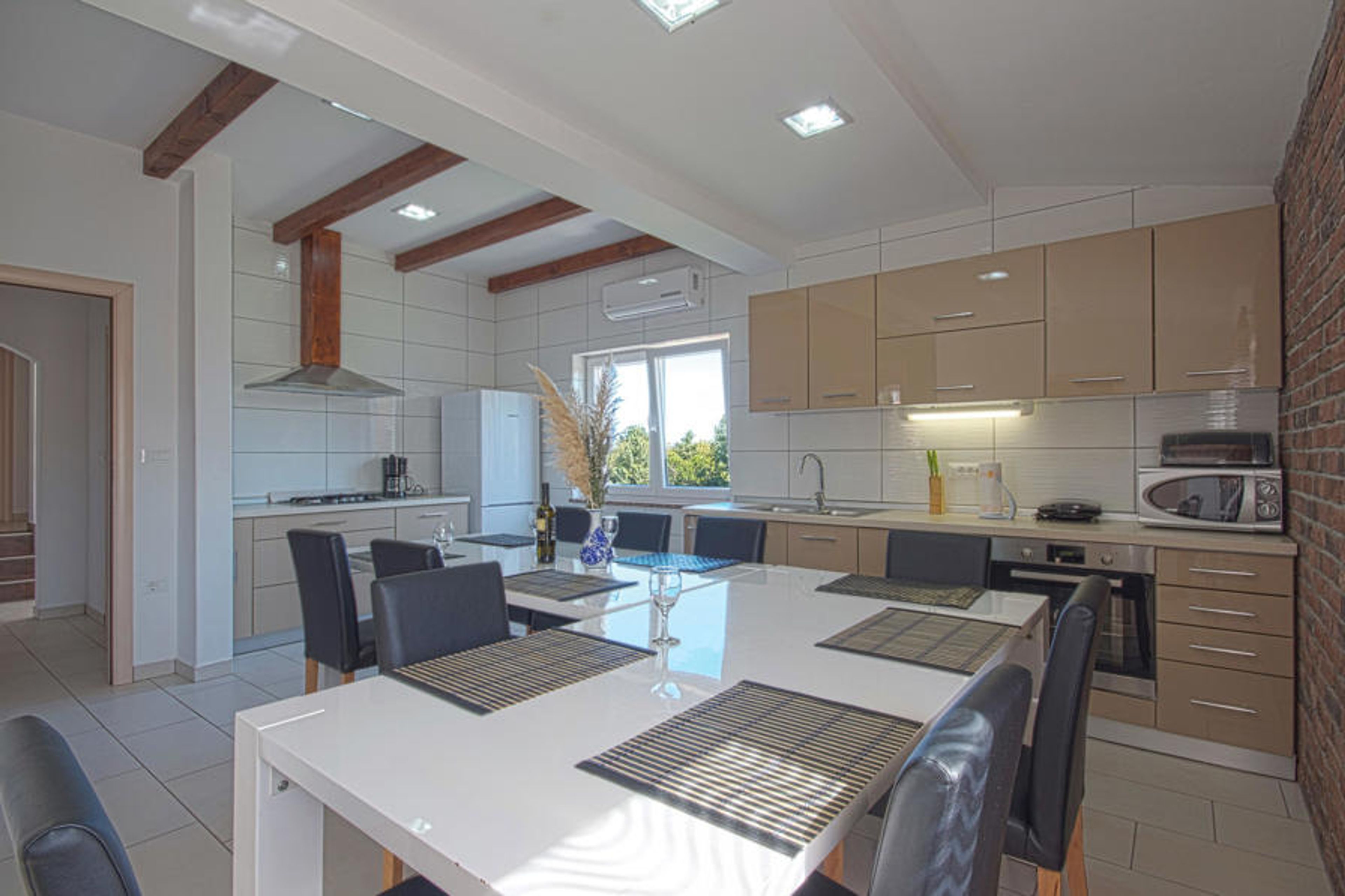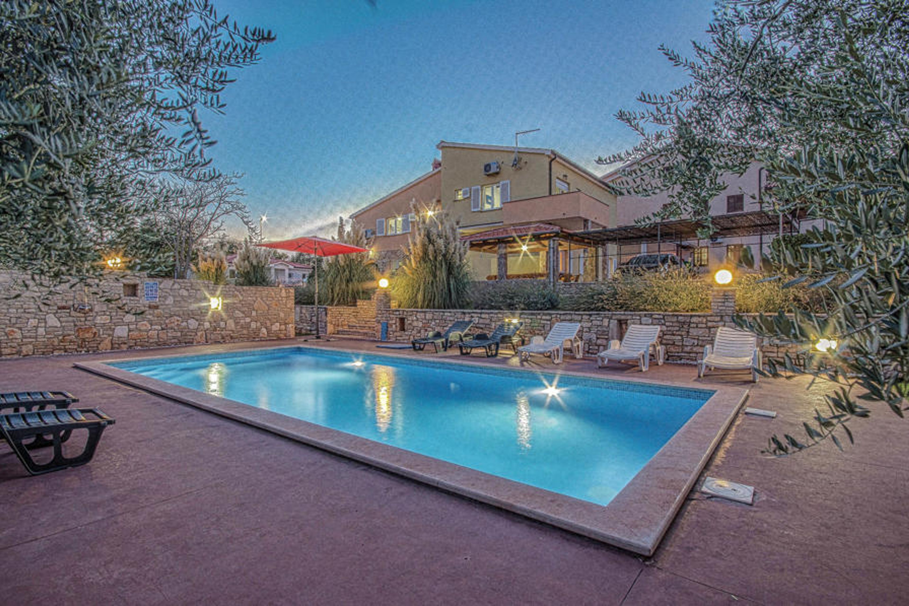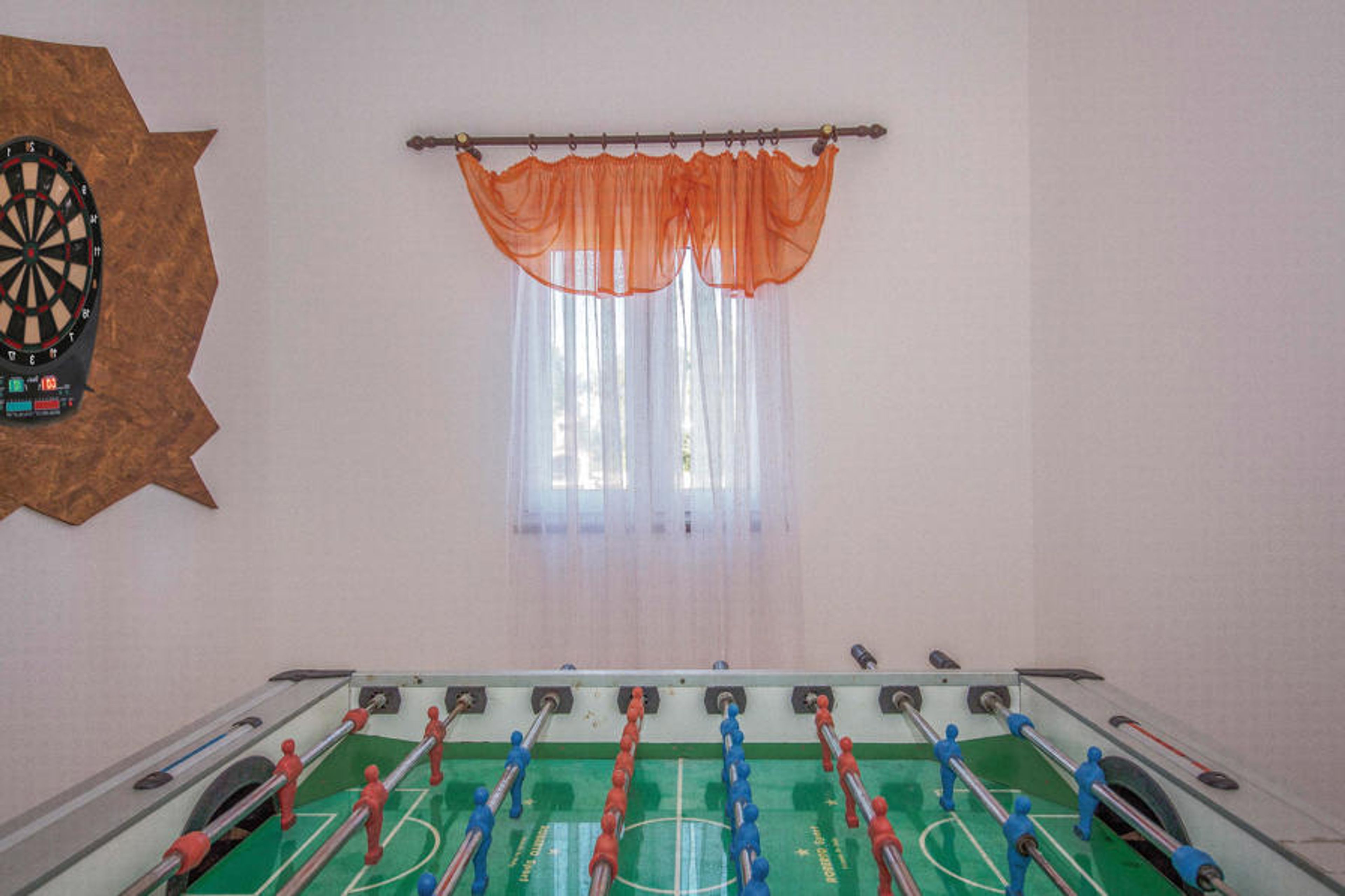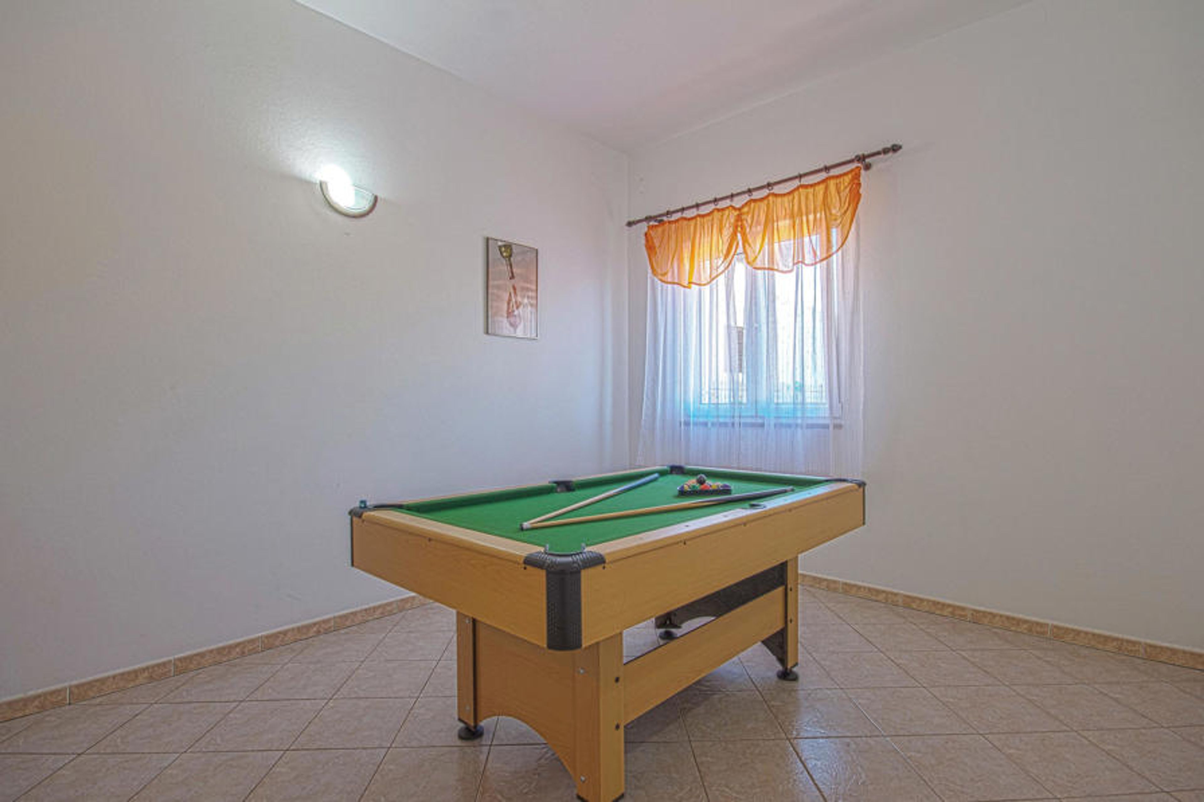 This spacious holiday home in Pavicini is perfect for a holiday with friends or a large family. The apartment on the upper floor, accessible via external stairs, offers you numerous cosy bedrooms and a large kitchen with dining area, ideal for your meals together. The inviting living room makes for relaxing evenings, while the leisure room, on the ground floor and with a separate entrance, offers entertainment for everyone with table football, darts and billiards. Outside, the pool invites you to refresh yourself and the spacious terraces offer space for cosy barbecues.
