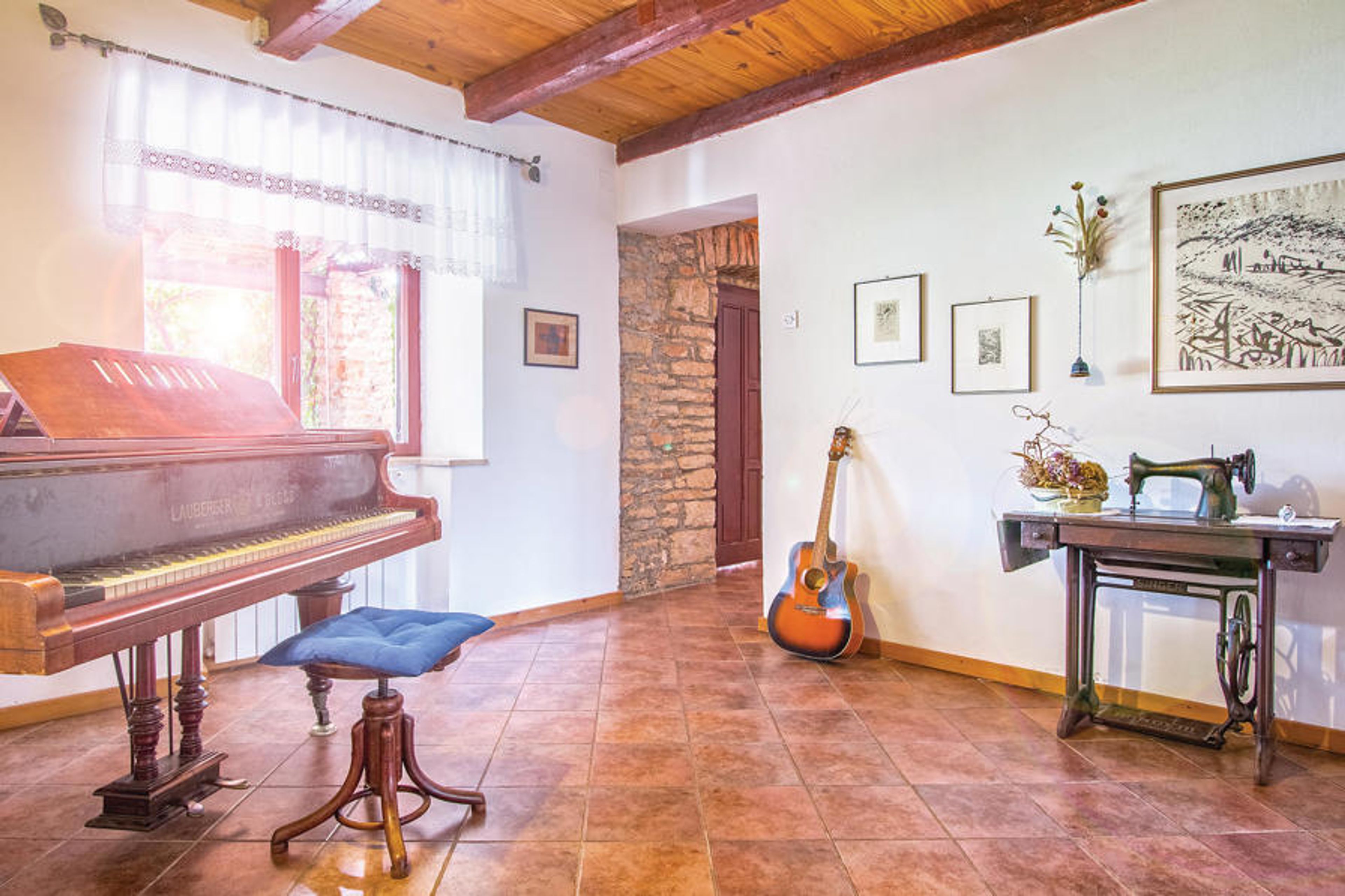 In an idyllic village are located these two halves of a semi-detached house. They are modernized, spacious and furnished according to typical Istrian style and with love. Here you can enjoy the country life to the fullest. The clear air, beautiful nature and absolute tranquility, interrupted only by birdsong in the morning, will delight you. Your children have a soccer field on the large fenced property and can have a good romp here. The large terrace will become your second living room, from where you can enjoy the sun and watch your children play. In rainy weather, the covered terrace will become an oasis and invites you to enjoy cozy rounds. A wonderful swimming pool can provide a refreshing cool down from the summer heat. There you can also have a delicious cocktail in the lounger or simply immerse yourself in light summer reading. There are also 2 pianos. Explore the surrounding area and discover many secluded coves and beaches. Bedrooms 3 and 4 are without doors.