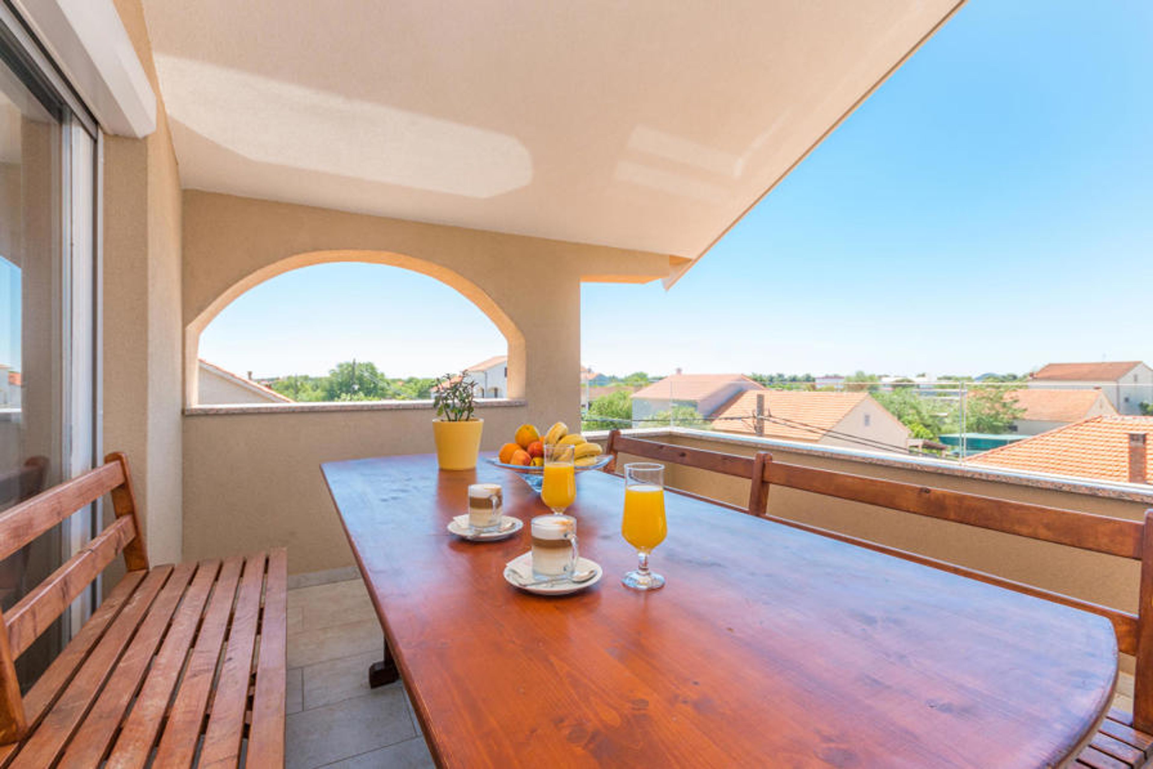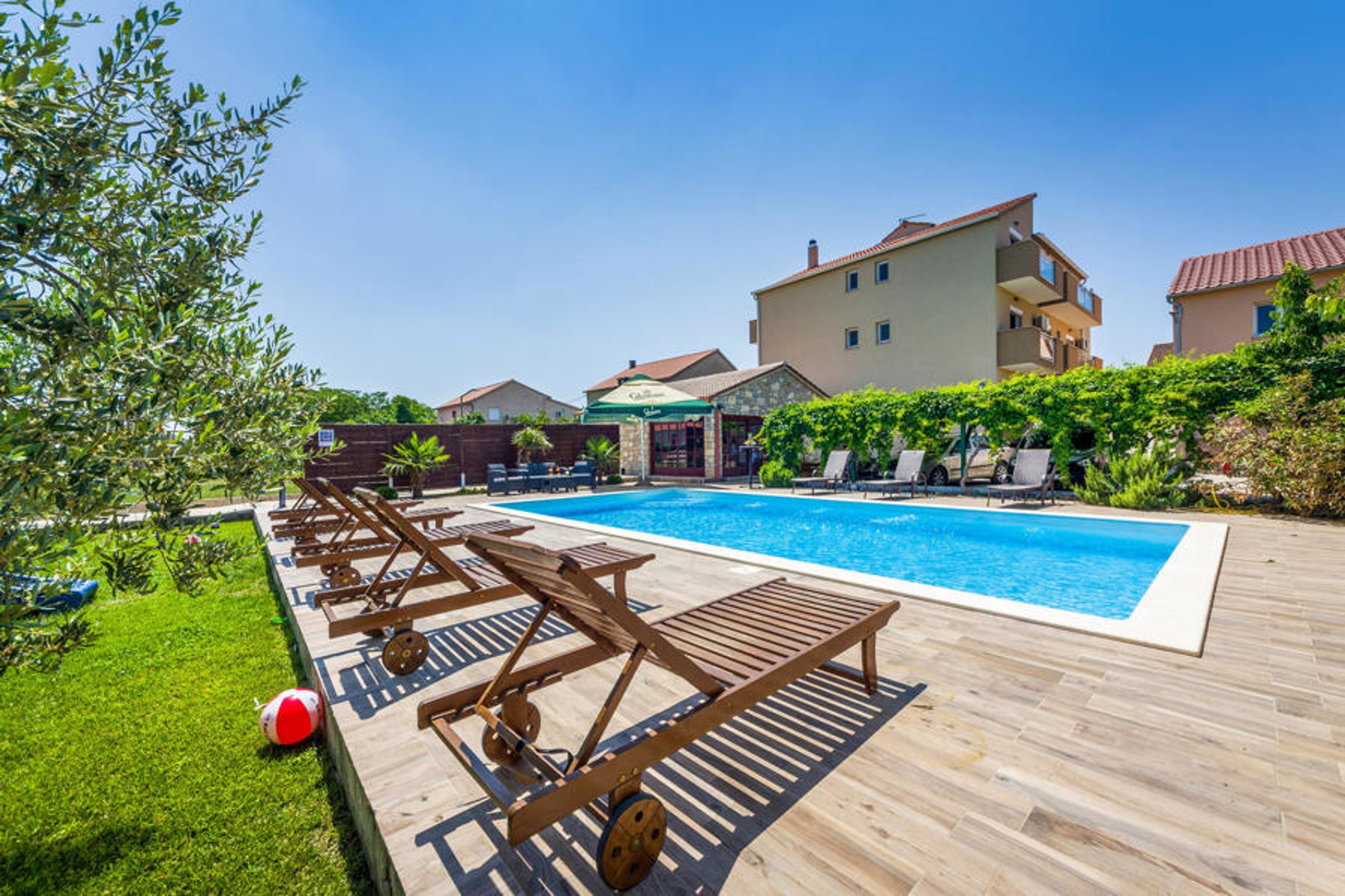 Spend a nice vacation in one of these apartments on the second floor (see also CDZ749 and CDZ751). With the shared pool and konoba (tavern) you will have a nice setting for socializing and preparing delicious grilled dishes. There is a café on the first floor. A bocce court is also located on the property and the sandy beach is about 2 km away. Biograd was the seat of the Croatian king in the 11th century. The town is known for its traditional Dalmatian cuisine, as well as beautiful beaches. It is also the perfect starting point for trips to the national parks in the area.
