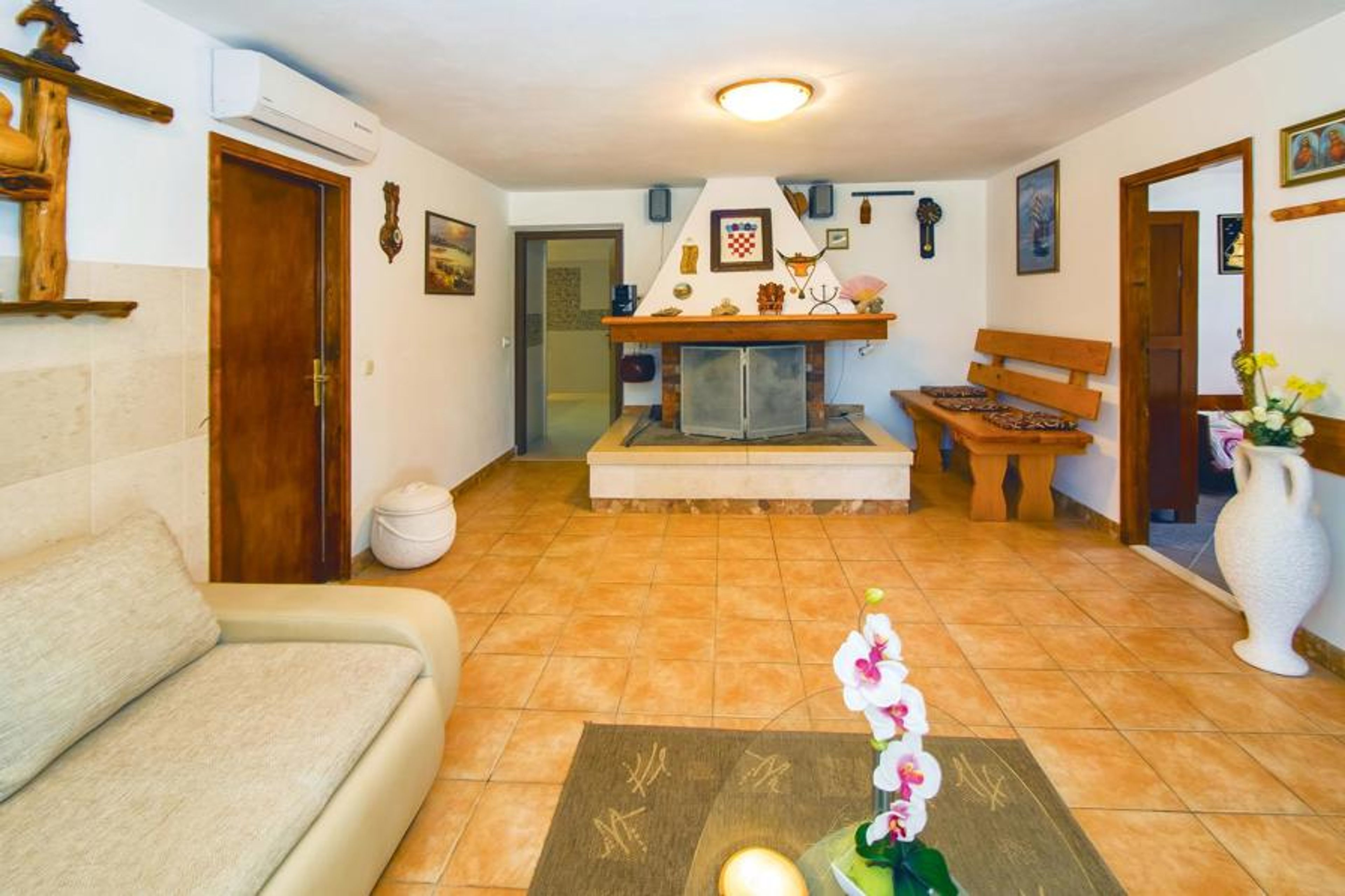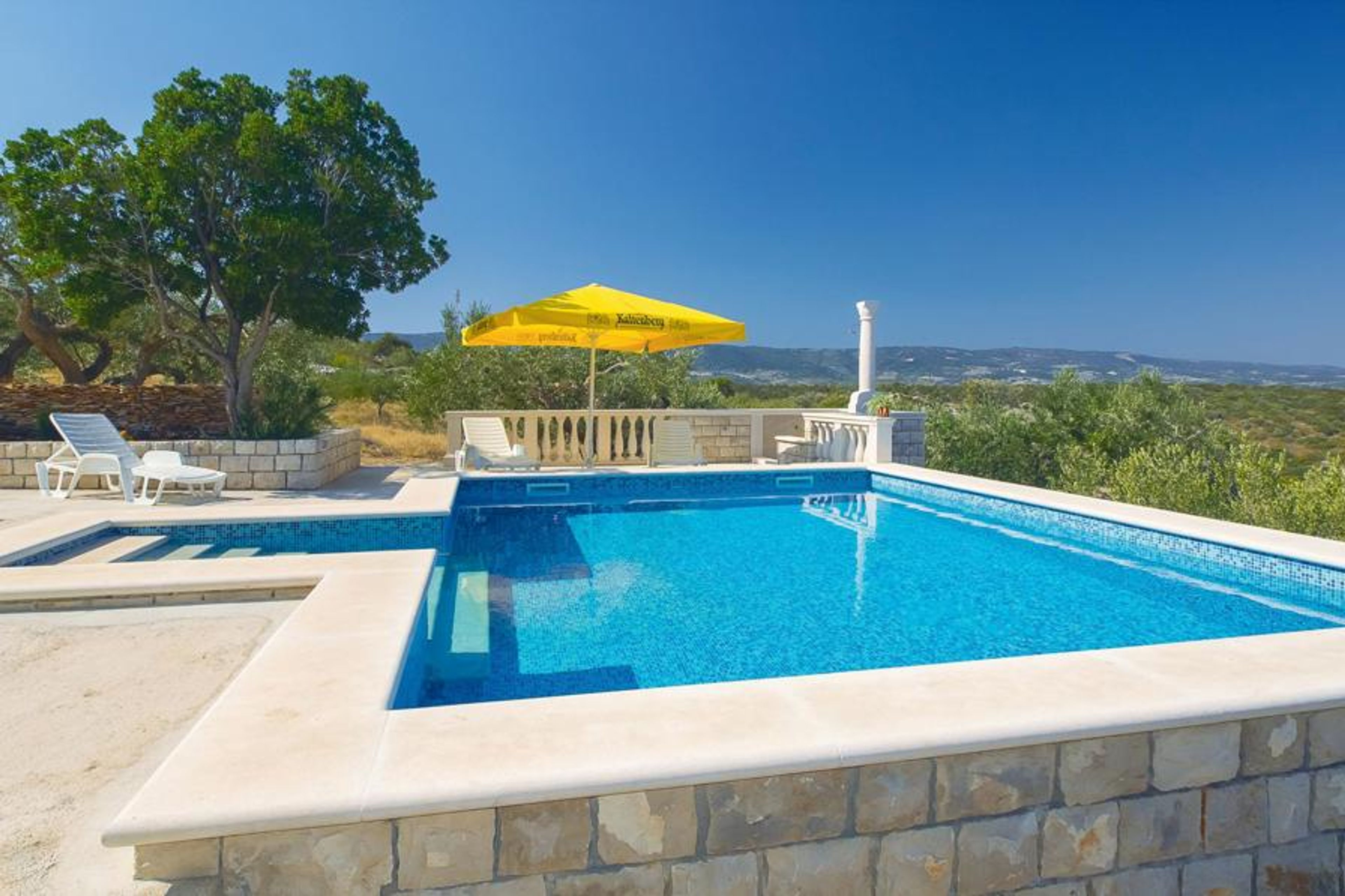 This pretty holiday home is located on a picturesque hill in the small Dalmatian village of Puia, which offers a panoramic view of the sea, the Bra quarry and the neighbouring mainland. On the ground floor there are two bedrooms, a living area with a fireplace, a kitchen and a bathroom. There is a further bedroom on the first floor, which has its own toilet. The holiday home is surrounded by pine forest and olive trees. From the kitchen and living area you can access the terrace, which is covered with plants. Spend your holiday outdoors at the rustic stone table and enjoy a barbecue with your loved ones. A narrow gravel road leads to the holiday home.