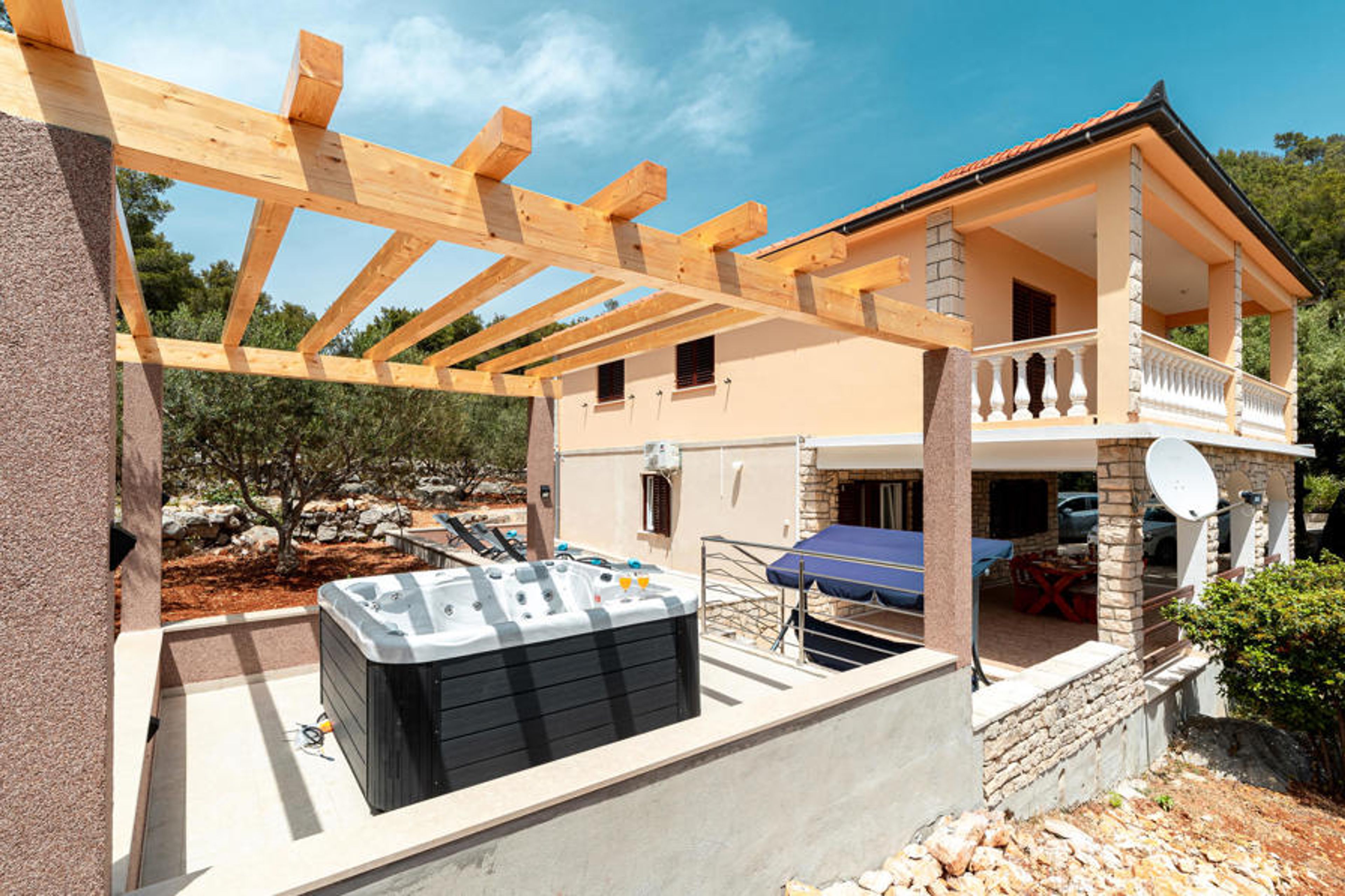 This functionally furnished holiday home is located on a large lot in the place Prizba on the island of Korcula. Enjoy your first cup of coffee in the morning on the terrace with beautiful sea view.