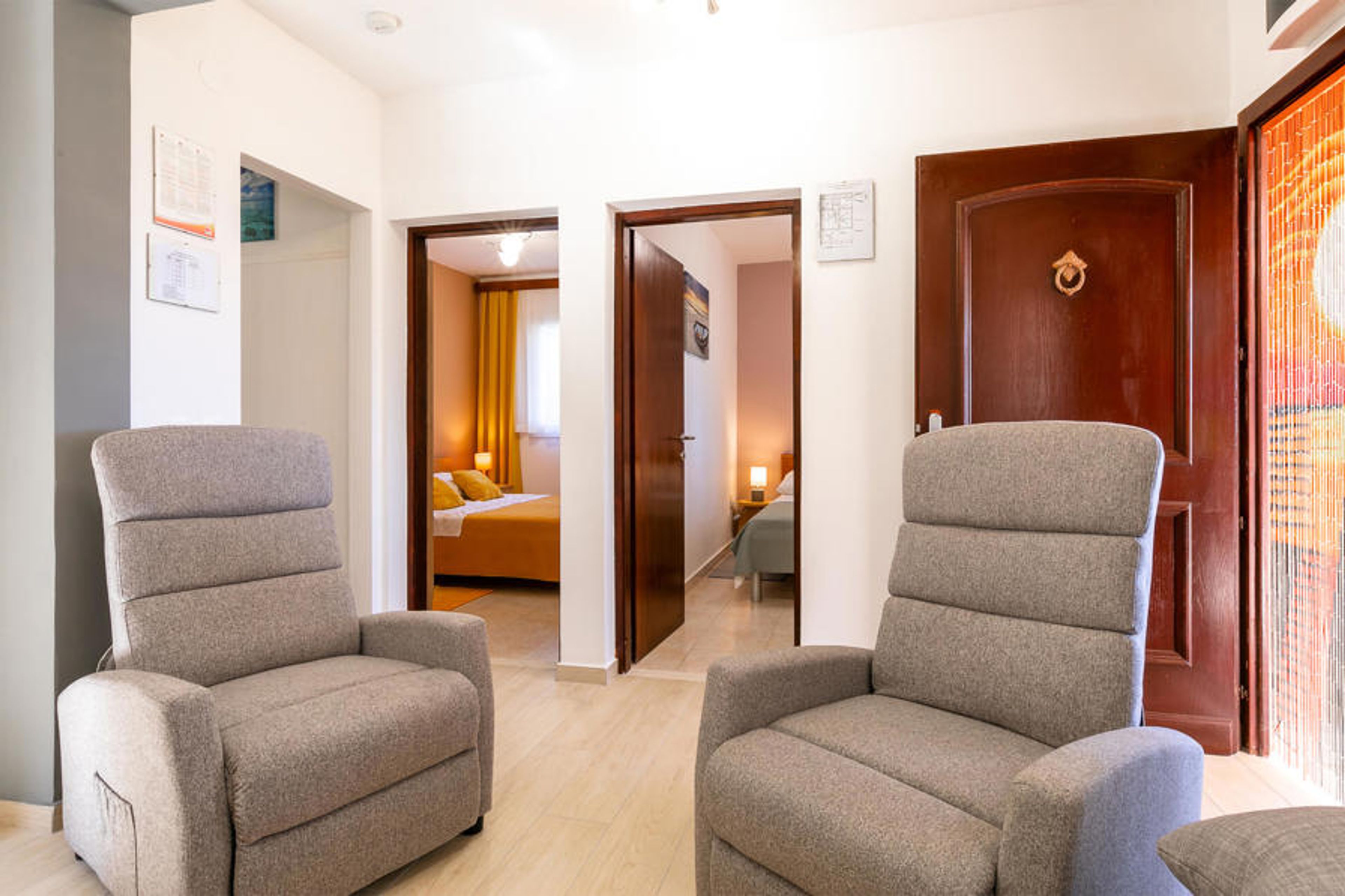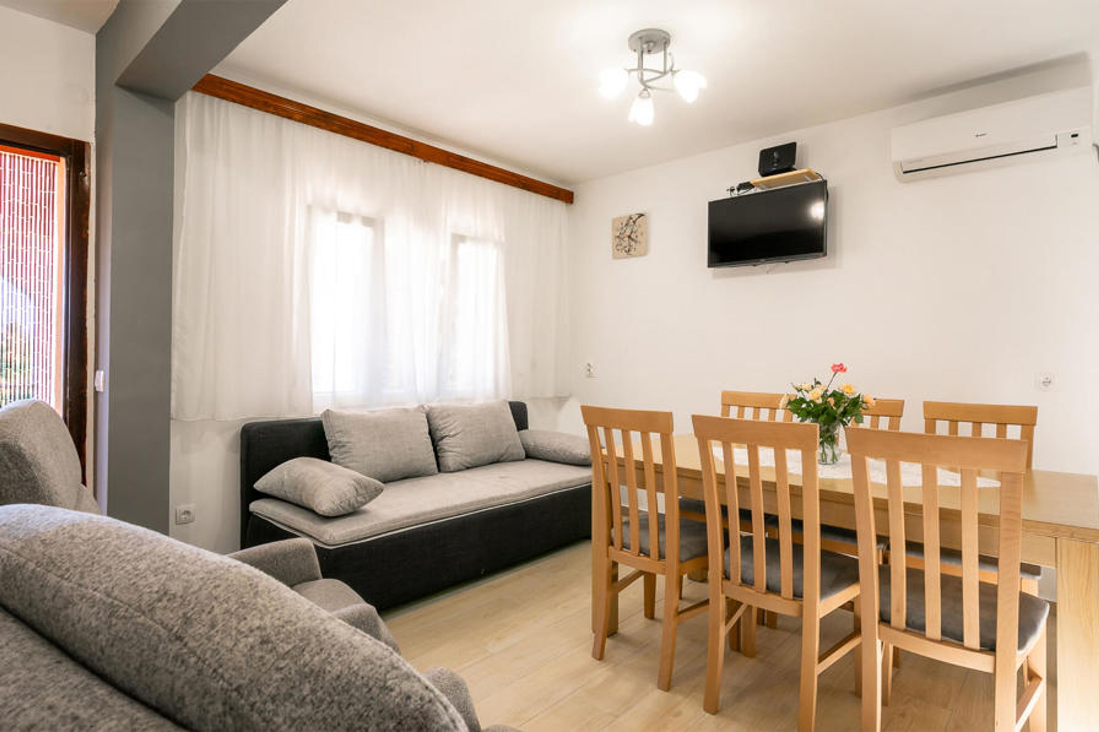 The functionally furnished vacation apartment is located on a large plot in the village of Prizba. Enjoy your first coffee in the morning and the wonderful sea air on the terrace. In the evening you can sit together with your loved ones and prepare a delicious barbecue on the stone grill on the terrace. Just a few minutes walk away you can relax on rocky or pebble beaches and jump into the refreshing water. The place Prizba is composed of several small bays, which are very interesting.
