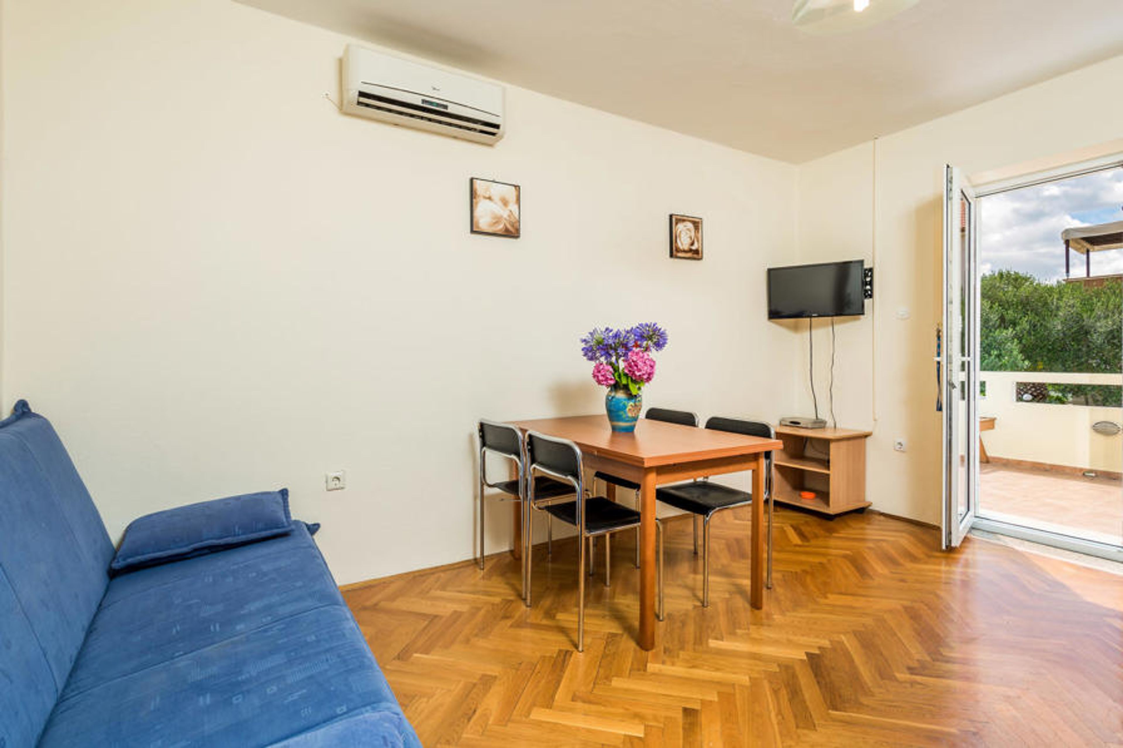In a multi-family house on the island of Pag, is this simply and functionally furnished apartment. It consists of 2 bedrooms, a bathroom, living room and kitchen. On the beautiful terrace you can comfortably drink your morning coffee and plan your day, while looking at the sea and the bay. A small forest path separates the house from the beach, where you can soak up the sun and briefly forget all your worries.