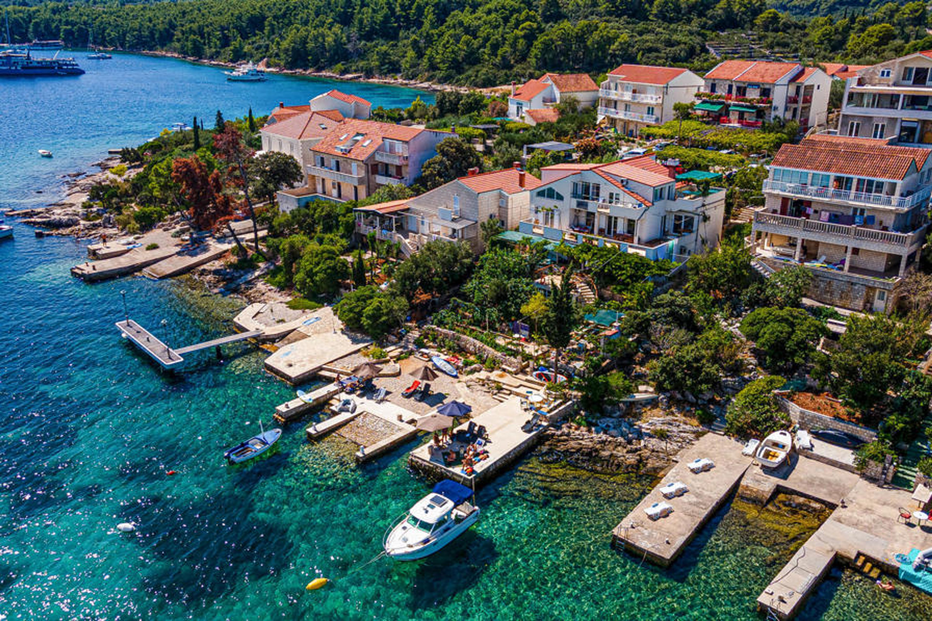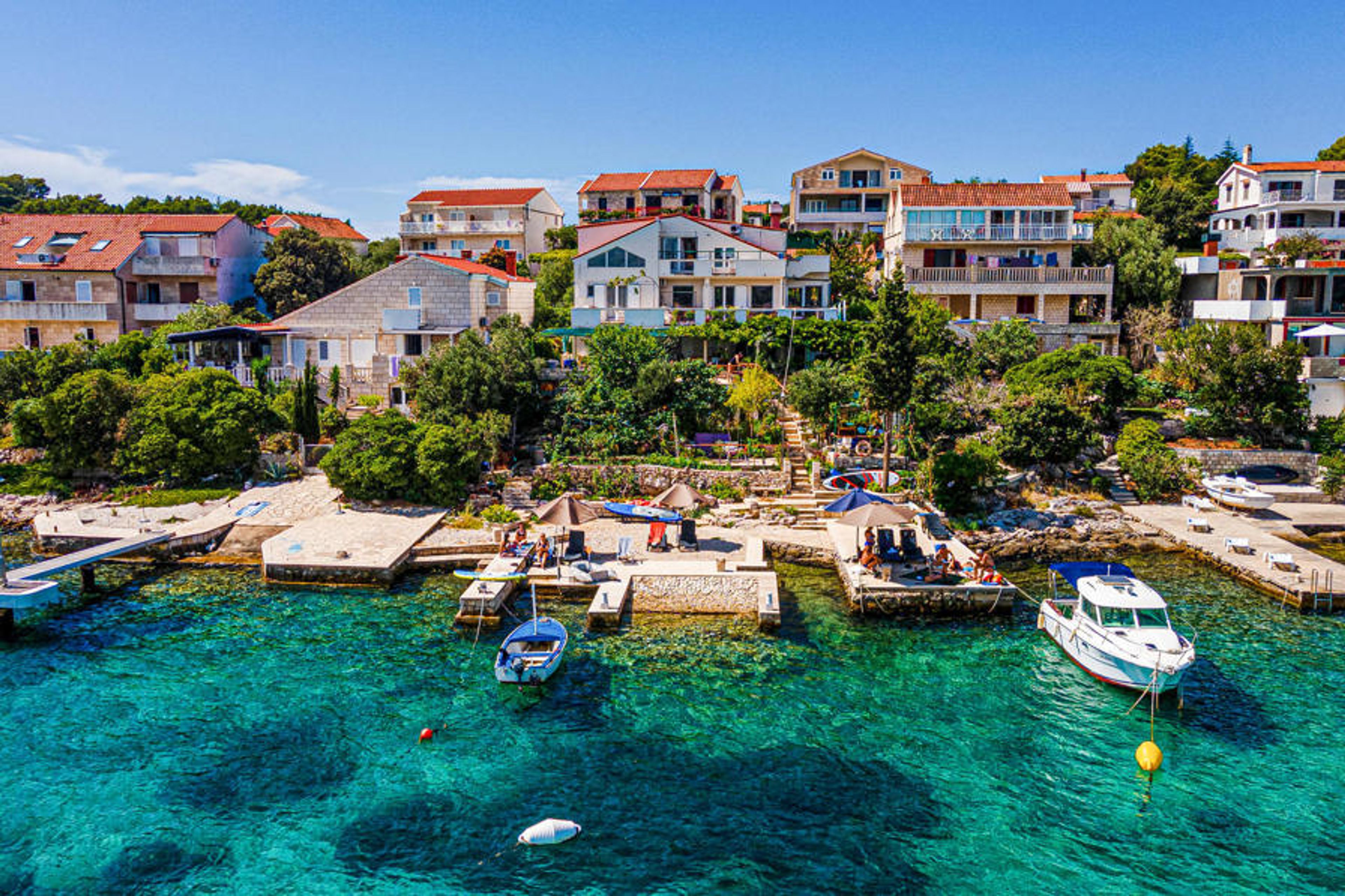 This beautiful, spacious holiday apartment is located on the first floor of a family house near the town Korčula, directly at the sea.