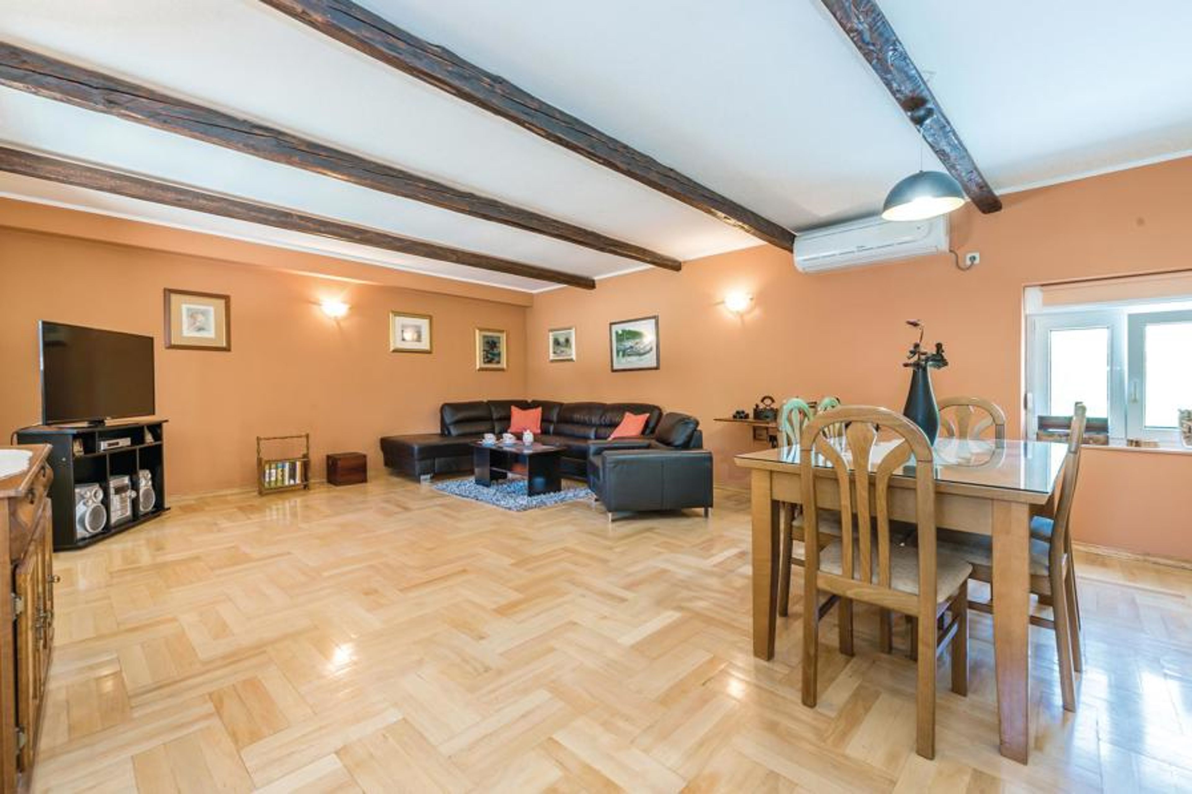 This friendly and practically furnished vacation home is located in the small village of Bilice, not far from Sibenik. Enjoy the peace and quiet in this vacation property, which is spread over two floors, connected by interior stairs. Visit Sibenik, with many cultural and historical sights, the beach Banj, the promenade and the preserved city walls. For gourmets, there is a diverse selection of restaurants serving traditional Dalmatian cuisine. Make trips to the national parks Krka and Kornati islands.
