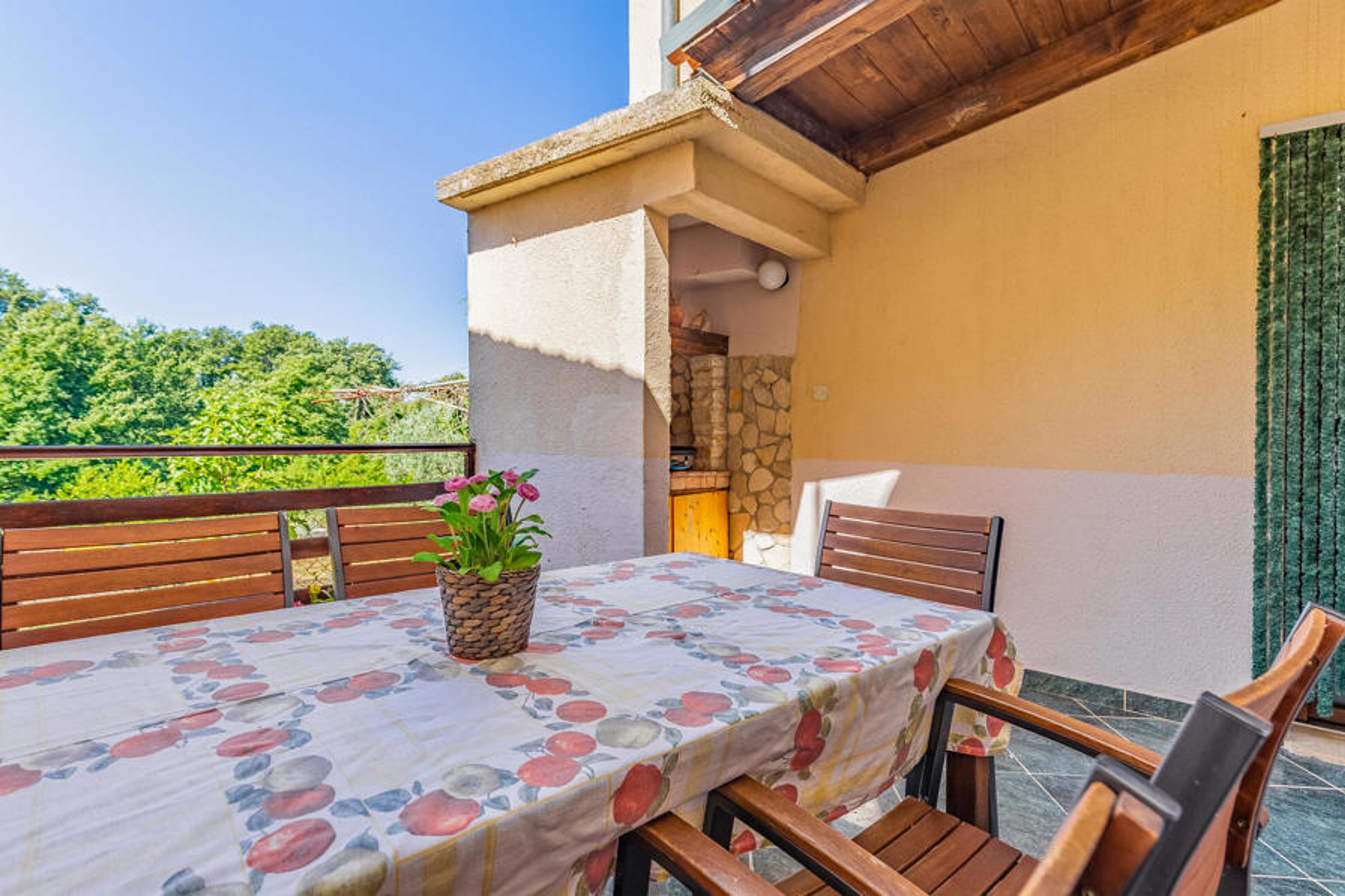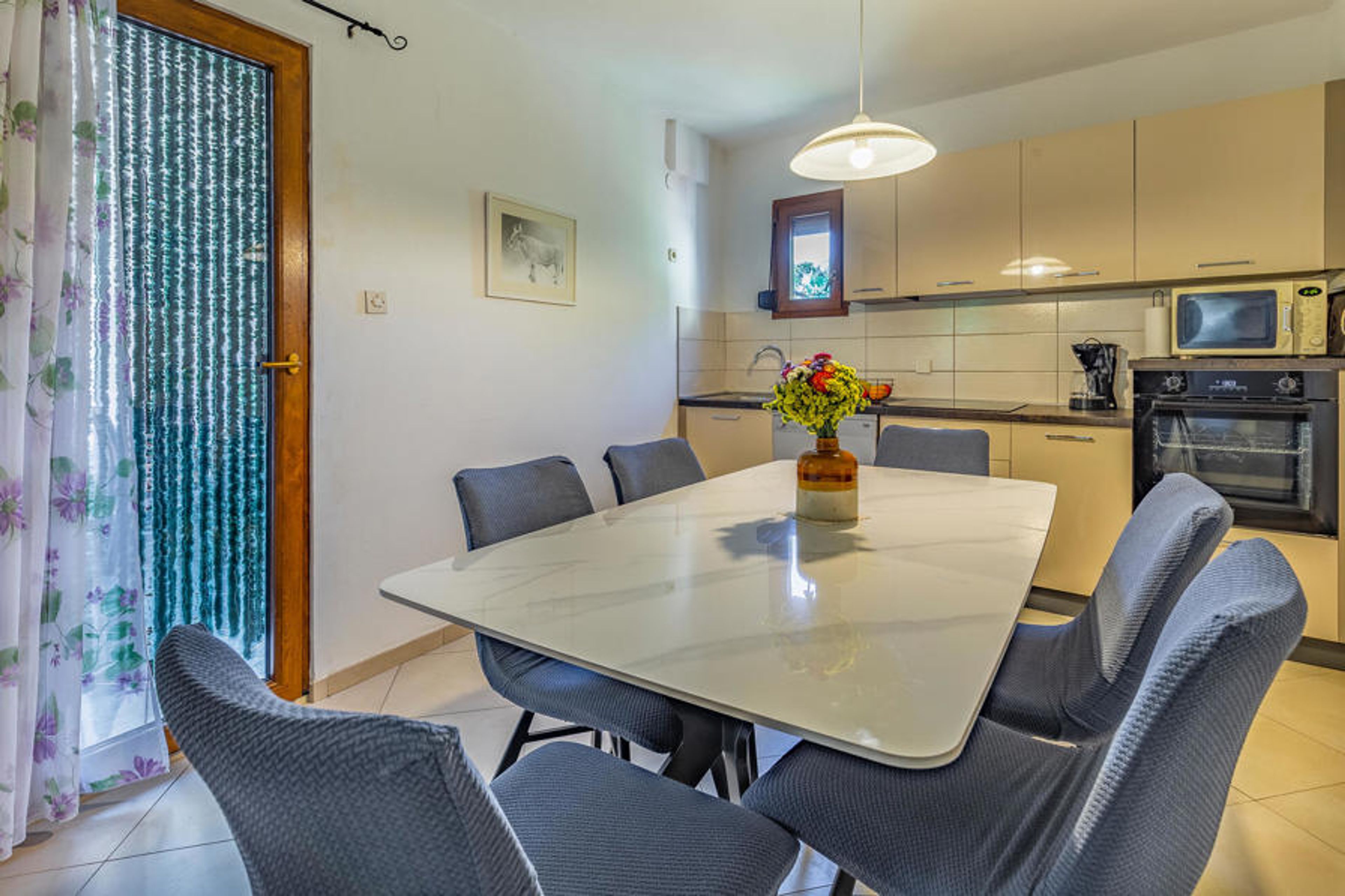 Spend a pleasant vacation in this terraced house, located in a small village and rural environment. It consists of two floors. On the first floor there is a kitchen with dining area, living room, guest toilet and terrace, while upstairs are three bedrooms and a bathroom. Be amazed by this beautiful landscape, because in a few minutes drive you can reach the natural rock and pebble beaches. Nature lovers can explore the beautiful area by bike and in the evening barbecue together with friends and family on the terrace while enjoying a glass of wine.