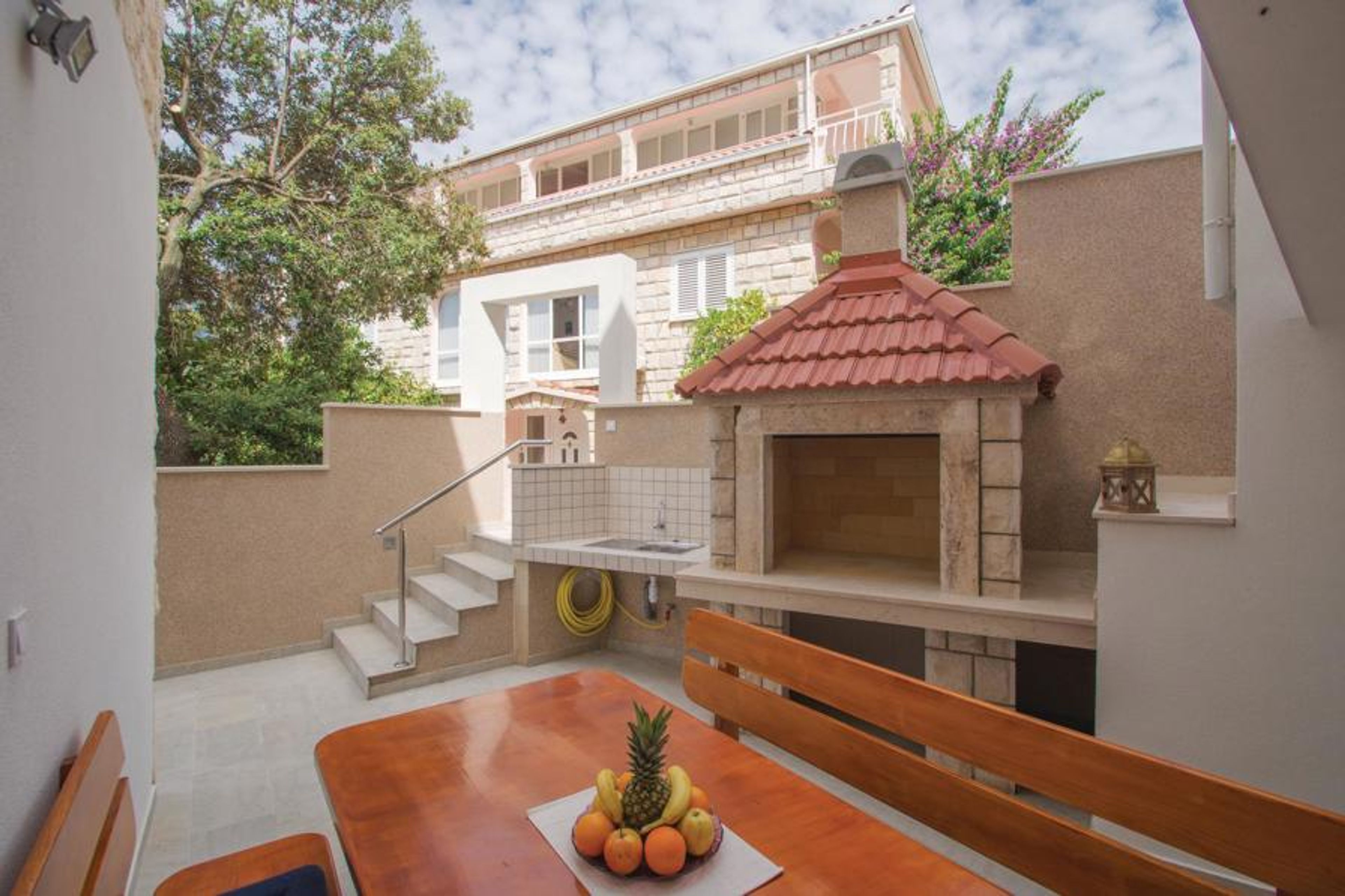 Spend a relaxing holiday in this holiday home, which is located in the village of Brna on the south side of the island of Korula. This bright and cosily furnished holiday home is located near a small sandy beach and consists of three apartments. The first floor is not rented out. The living spaces are distributed over the ground floor, where there is a two-bedroom apartment with direct access to the pool terrace, and two small apartments on the second floor, which are accessible via external stairs. The holiday home is ideal for several families who want to spend their holidays together. From the balconies you can enjoy sweeping views of the sea and the bay. The house is located on a road with regular but not heavy traffic.