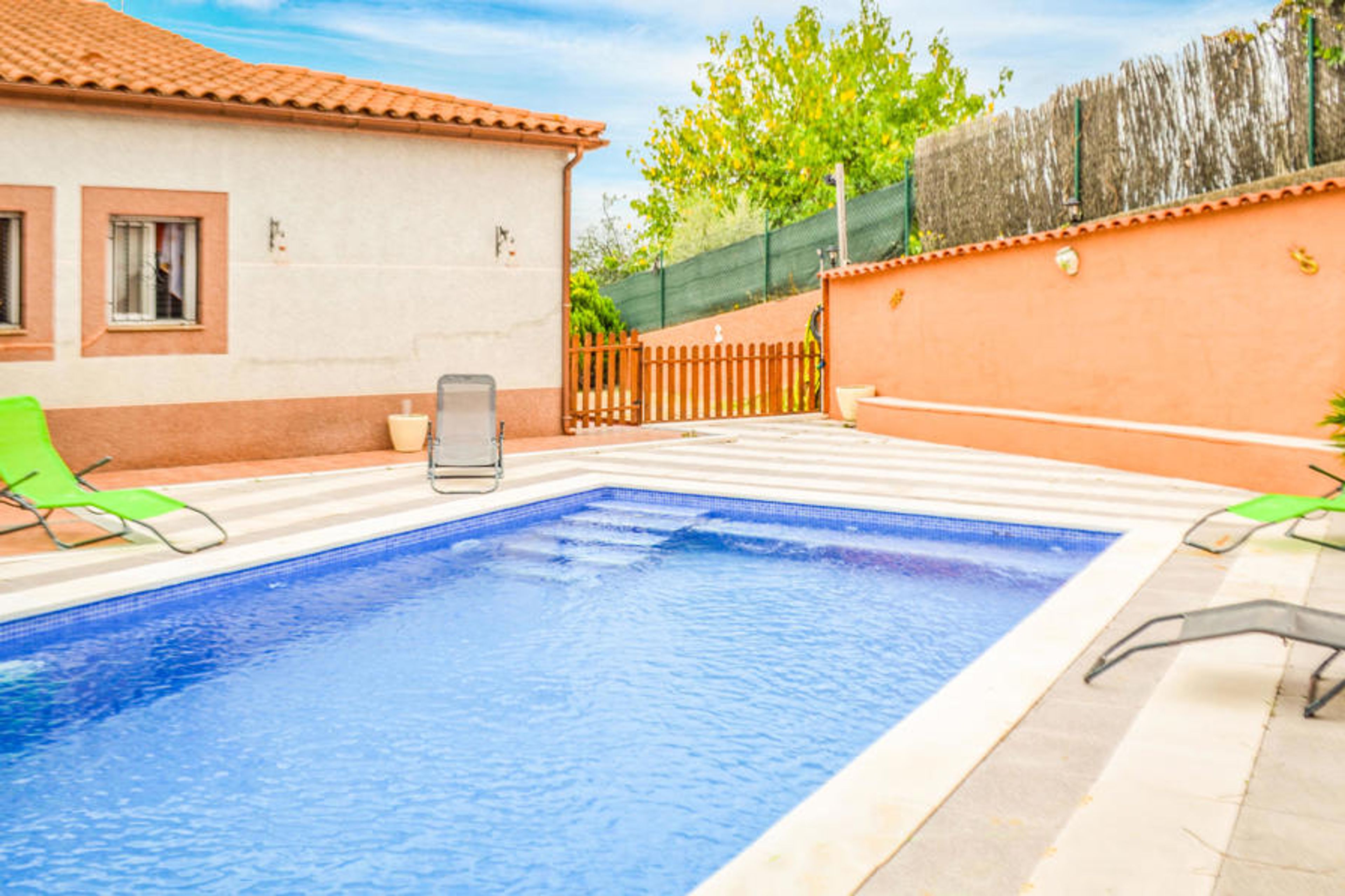 This cosy holiday home has a great terrace and a great pool for the whole family to get together. The beach is only 12 km away and offers the perfect destination for a carefree holiday, free from everyday worries. The entire living space is spread over one level and is equipped with 3 bedrooms, 2 bathrooms, 1 large kitchen and 1 comfortable living and dining room. You can park 2 cars on the property via a ramp from the street to the entrance of the house.