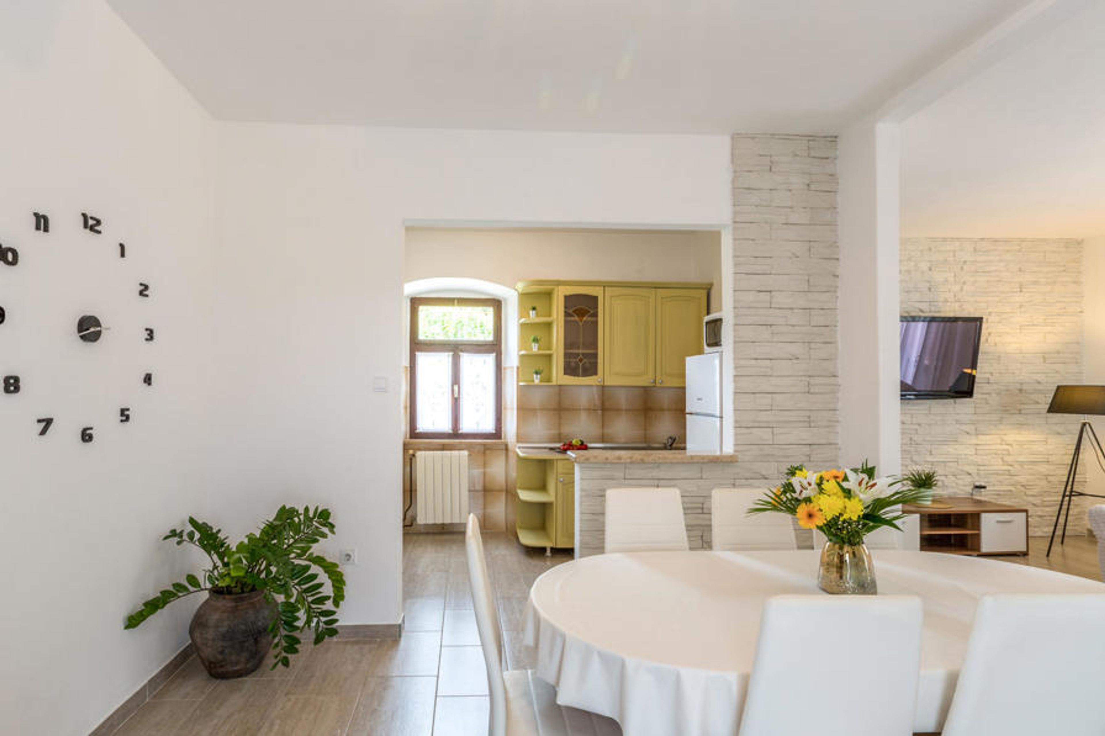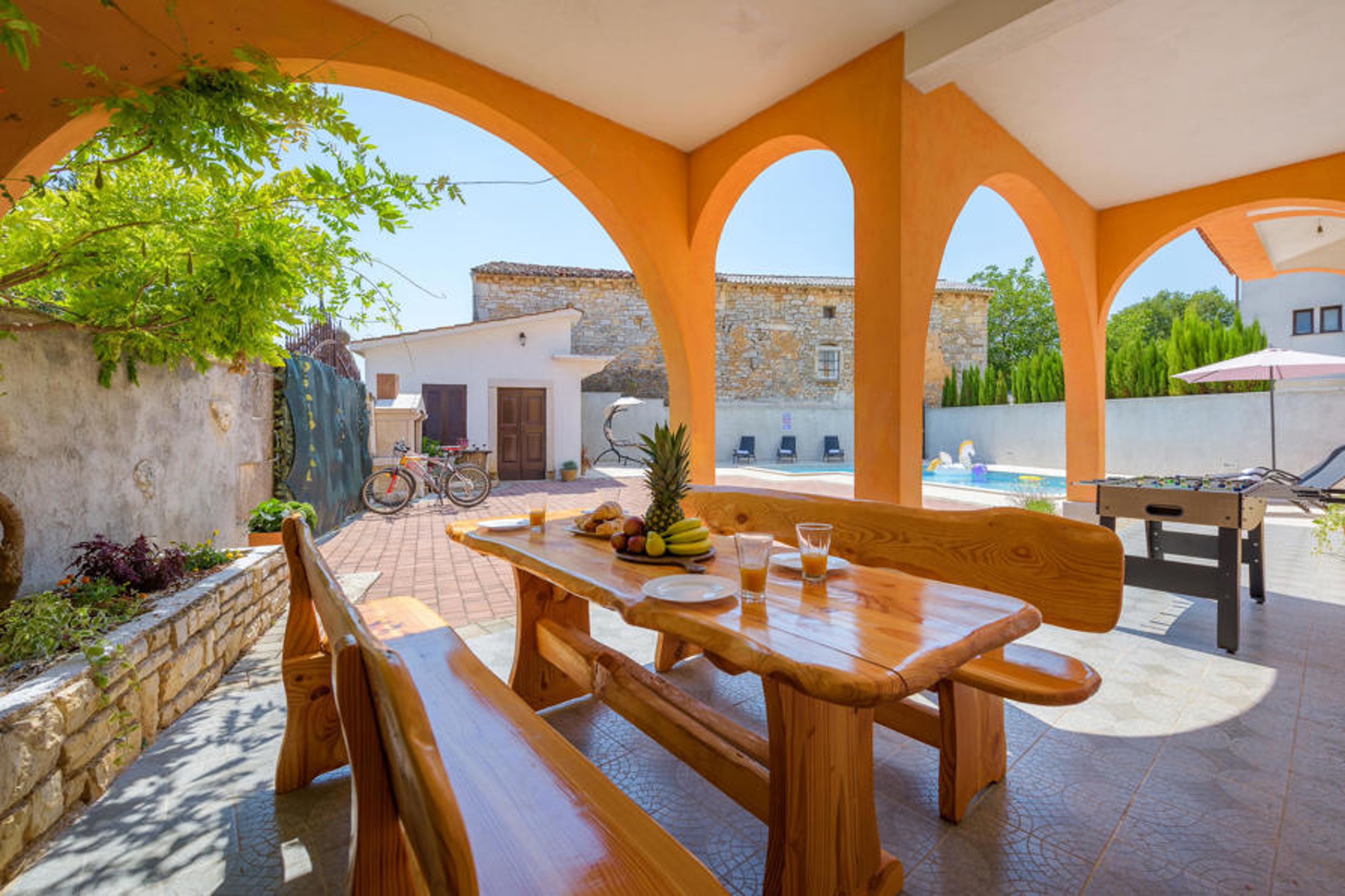 Spend a relaxing summer vacation in central Istria and enjoy a beautiful view of the evergreen landscape. This simply and functionally furnished semi-detached house is located on a hill and is suitable for nature lovers and cycling enthusiasts, who can explore the natural beauty of this area on many marked bike paths. In a few minutes drive you can reach the picturesque castle town of Motovun, which is especially known for its annual film festival. Be sure to also try the truffle specialties that are found in this area.