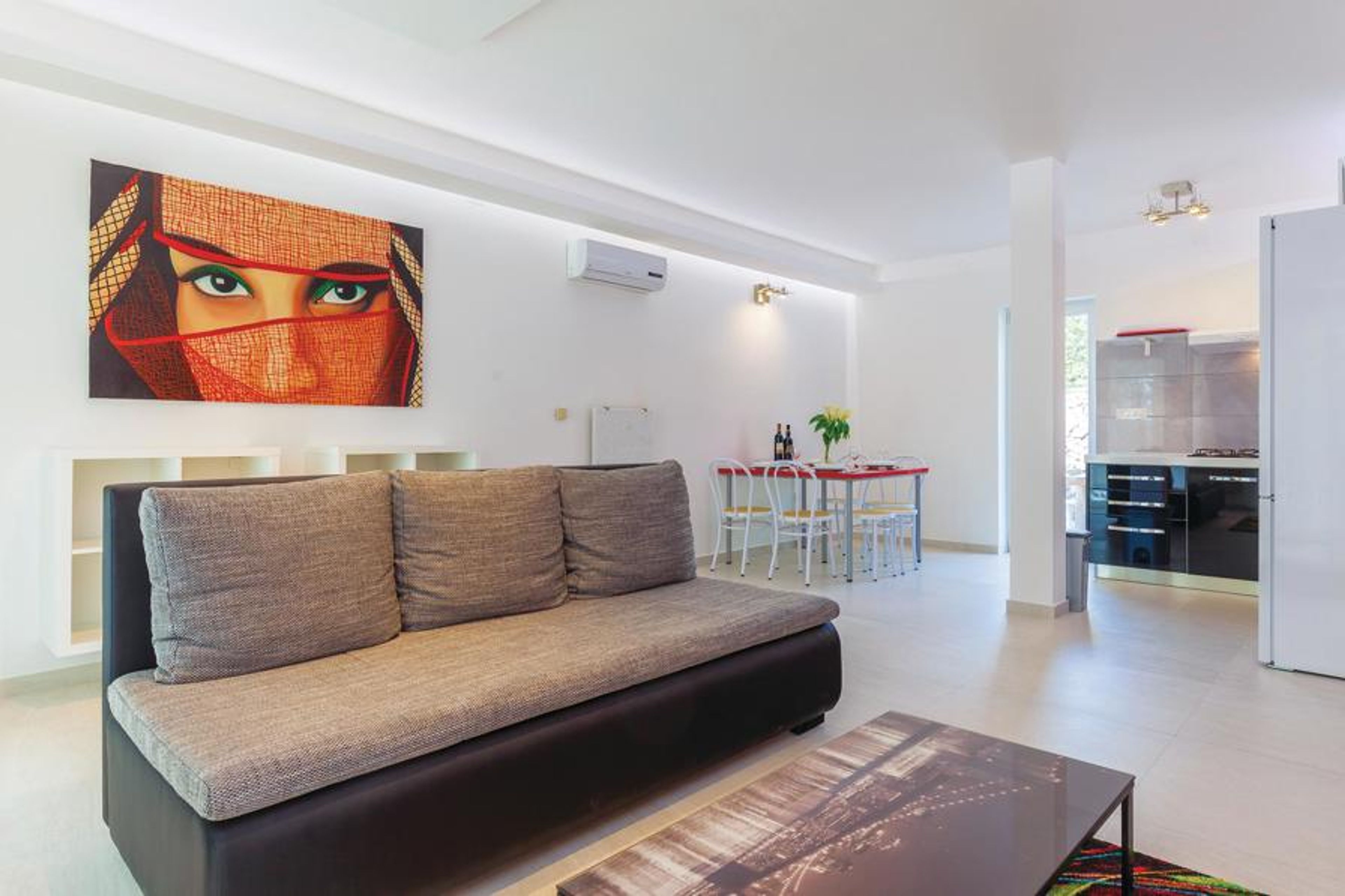 In the southern part of Novi Vinodolski, in a peaceful area is situated this holiday house. It consists of two apartments which are connected via external stairs.