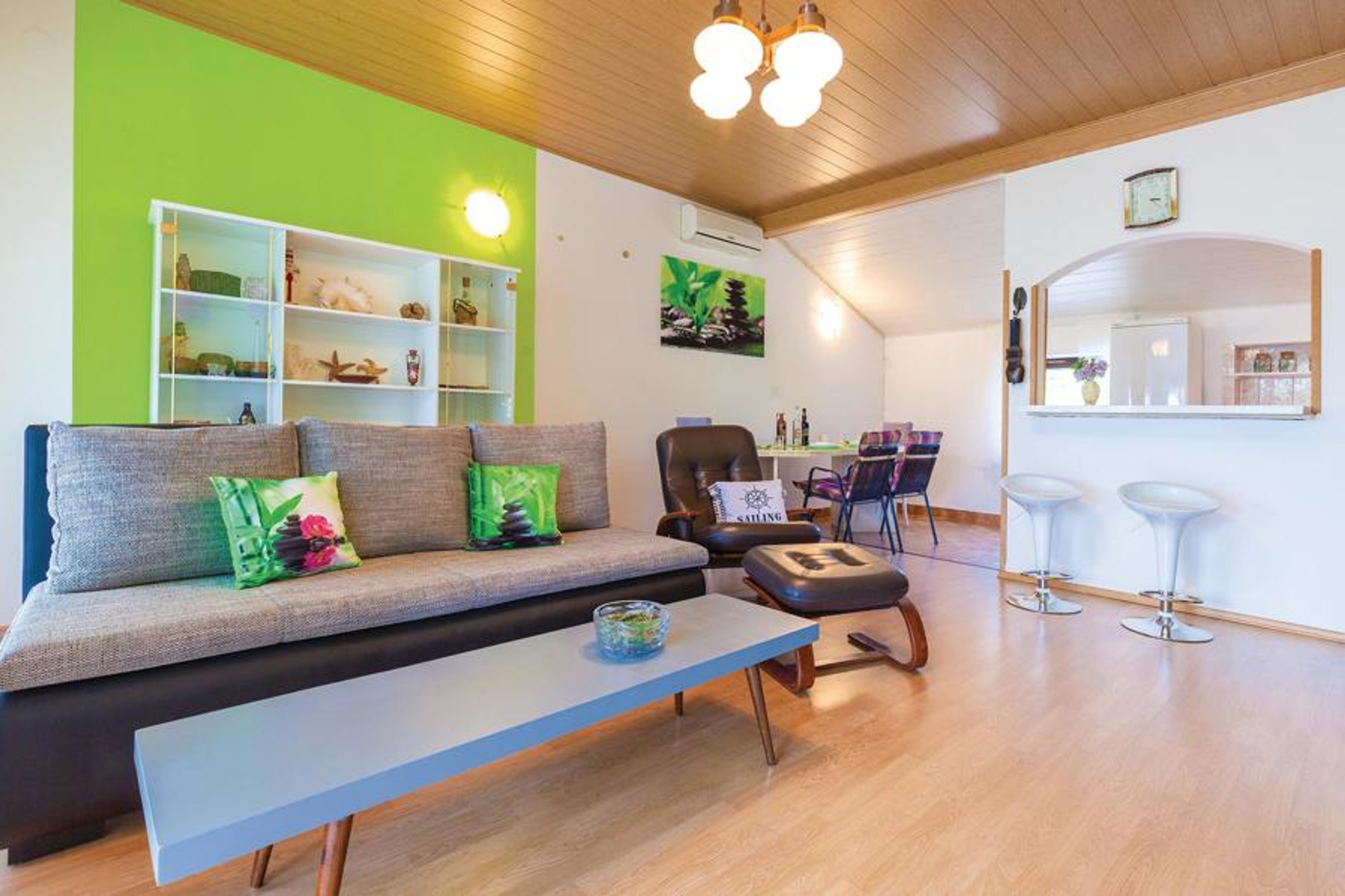In the southern part of Novi Vinodolski, in quiet area is located this vacation house. It consists of two apartments, which are connected by external stairs. Each apartment has two rooms, a bathroom and a kitchen with living room. The apartment on the first floor is tastefully decorated. The apartment on the second floor is simply and functionally furnished. Relax on the terrace and refresh yourself in the pool while preparing delicious meals with your friends on the grill. In a few minutes walk you can reach the sea and the nearest beaches. There are table tennis, darts and trampoline.
