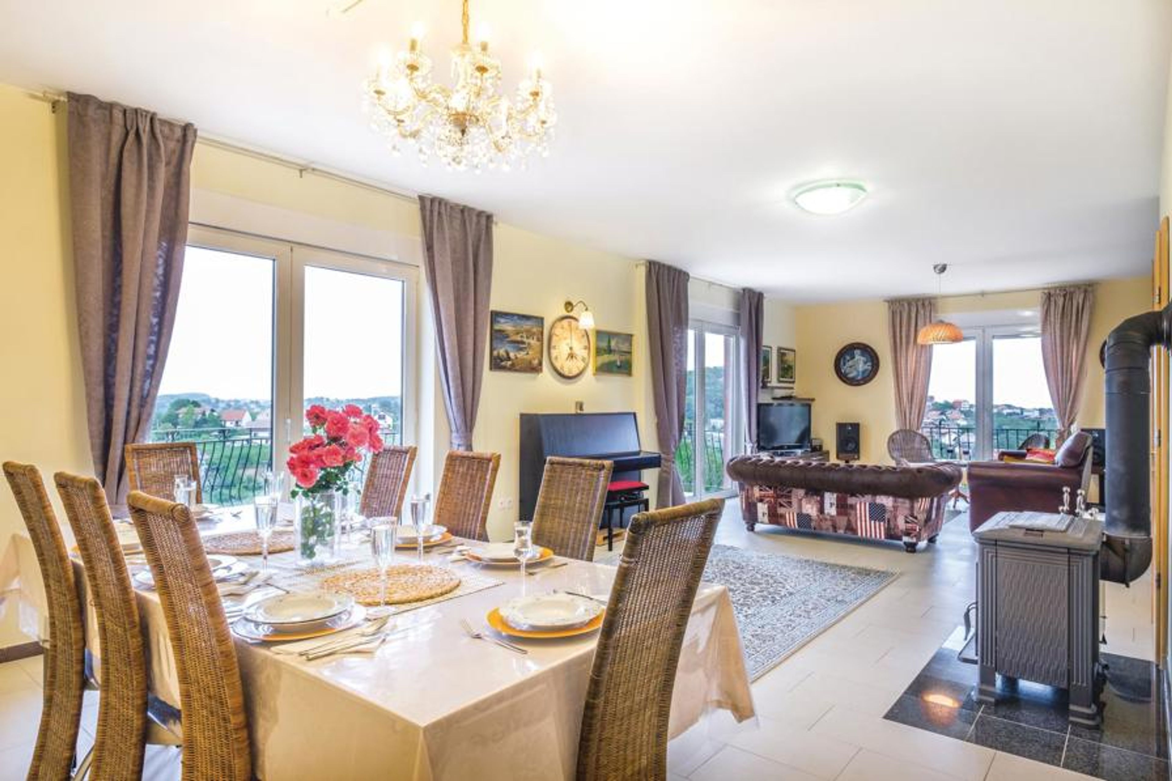 This spacious and cozy holiday home is located in quiet part of the City of Zagreb. It consists of four bed rooms, three bathrooms and big and light living room with the kitchen and dining area.