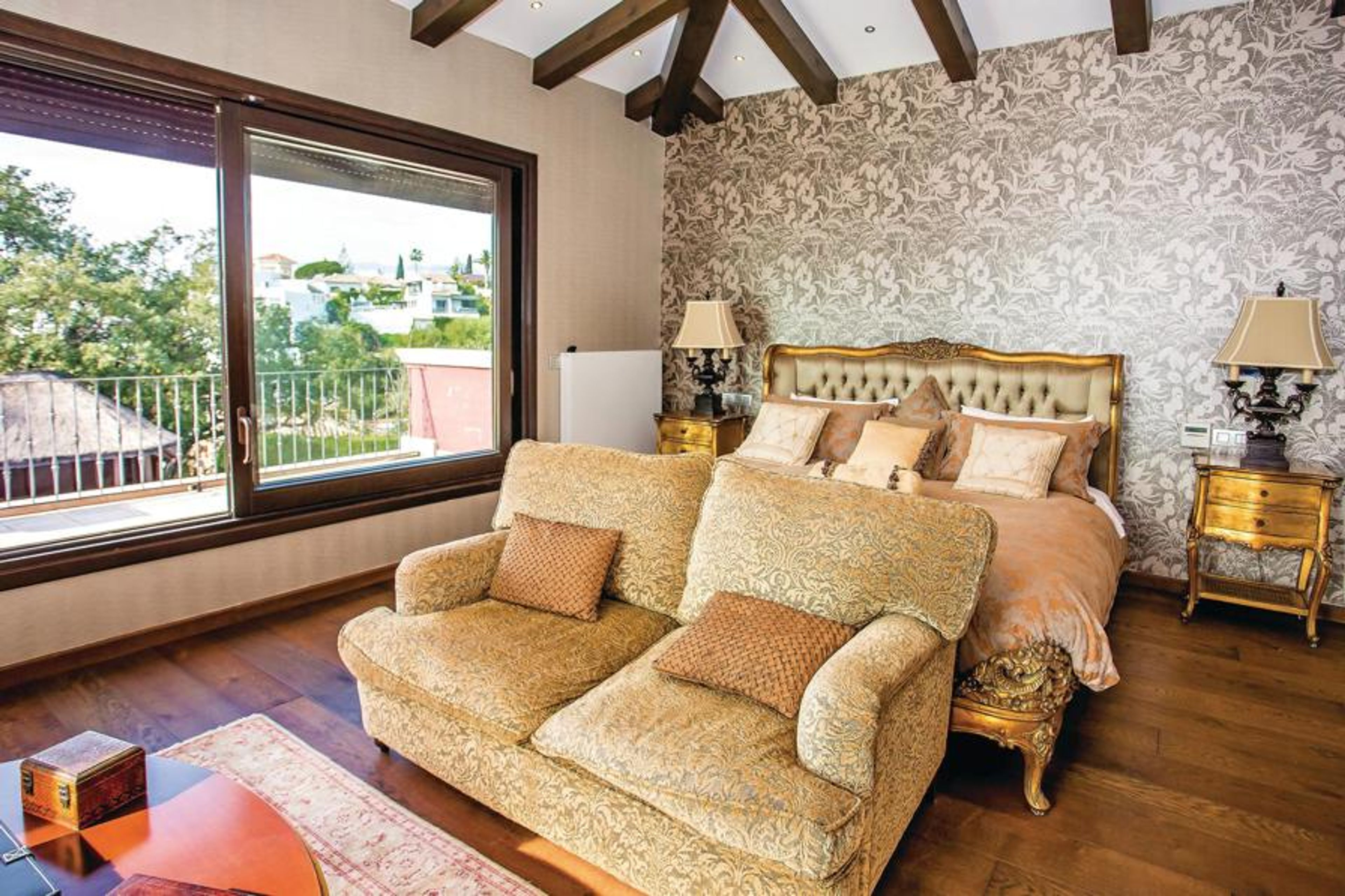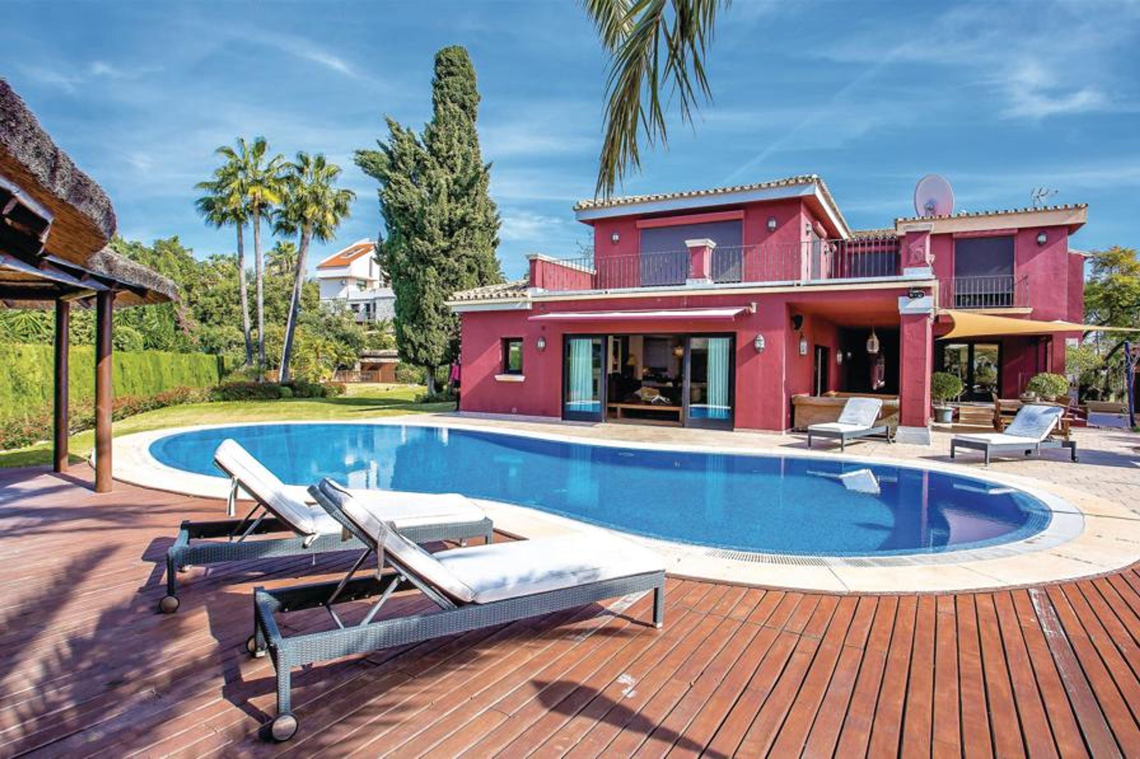 In the exclusive coastal town of Elviria near Marbella, you will find this fantastic vacation villa with a gorgeous pool area and a great veranda where you can enjoy a few drinks in the evening. The villa offers 6 spacious bedrooms that make dreams come true. The comfortable living room is equipped with a piano, fireplace and flat screen TV and leads directly to the terrace and fully equipped kitchen with a separate laundry room. The first floor also offers an office, dining room, bathroom and a bedroom. The entire living space is equipped with wifi, air conditioning and heating. The elegant staircase leads you to the upper floor, where the other 5 bedrooms are located, each of them is equipped with quality furniture and a TV. The master suite even has its own dressing room, a bathroom with a bathtub and has direct access to a sunny terrace. The spacious property offers a great green lawn with shaded areas, a barbecue and a bar. It is very private and in just a few minutes walk, you can reach the beautiful beaches of Elviria. Here you can spend a comfortable and luxurious vacation and enjoy the wonderful climate of the Costa del Sol!