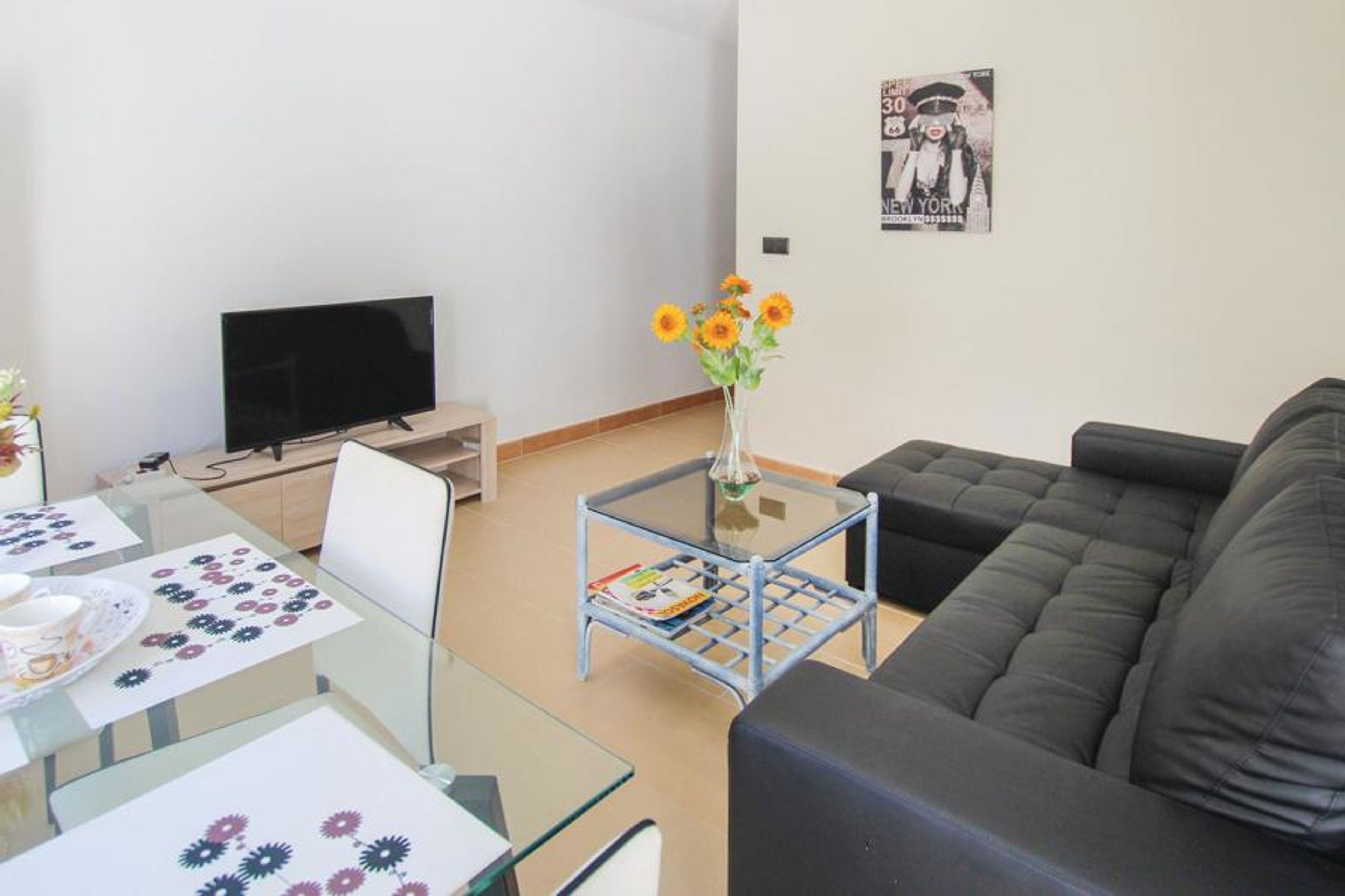 Located in the center of Alicante, you will find this tasteful 3-room holiday apartment. By bus or tram you can visit the fabulous city.