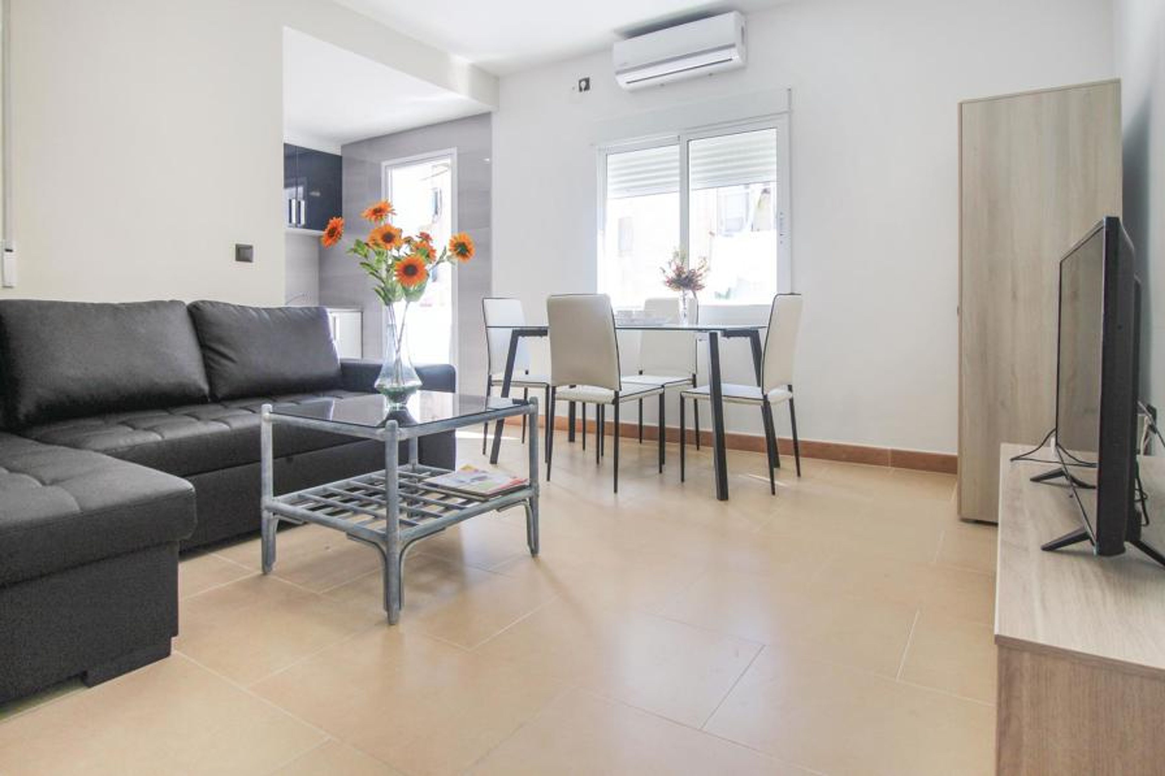 Right in the center of Alicante, you will find this tasteful 3 bedroom vacation apartment. You can visit the fabulous city by bus or streetcar. You should definitely visit the market hall, the castle of Santa Barbara, the archaeological museum and the beautiful beaches. In the neighborhood where the apartment is located and in the harbor there is a fantastic atmosphere, especially in the evening. Here you will find countless restaurants and stores for the whole family. AT-463079-A
