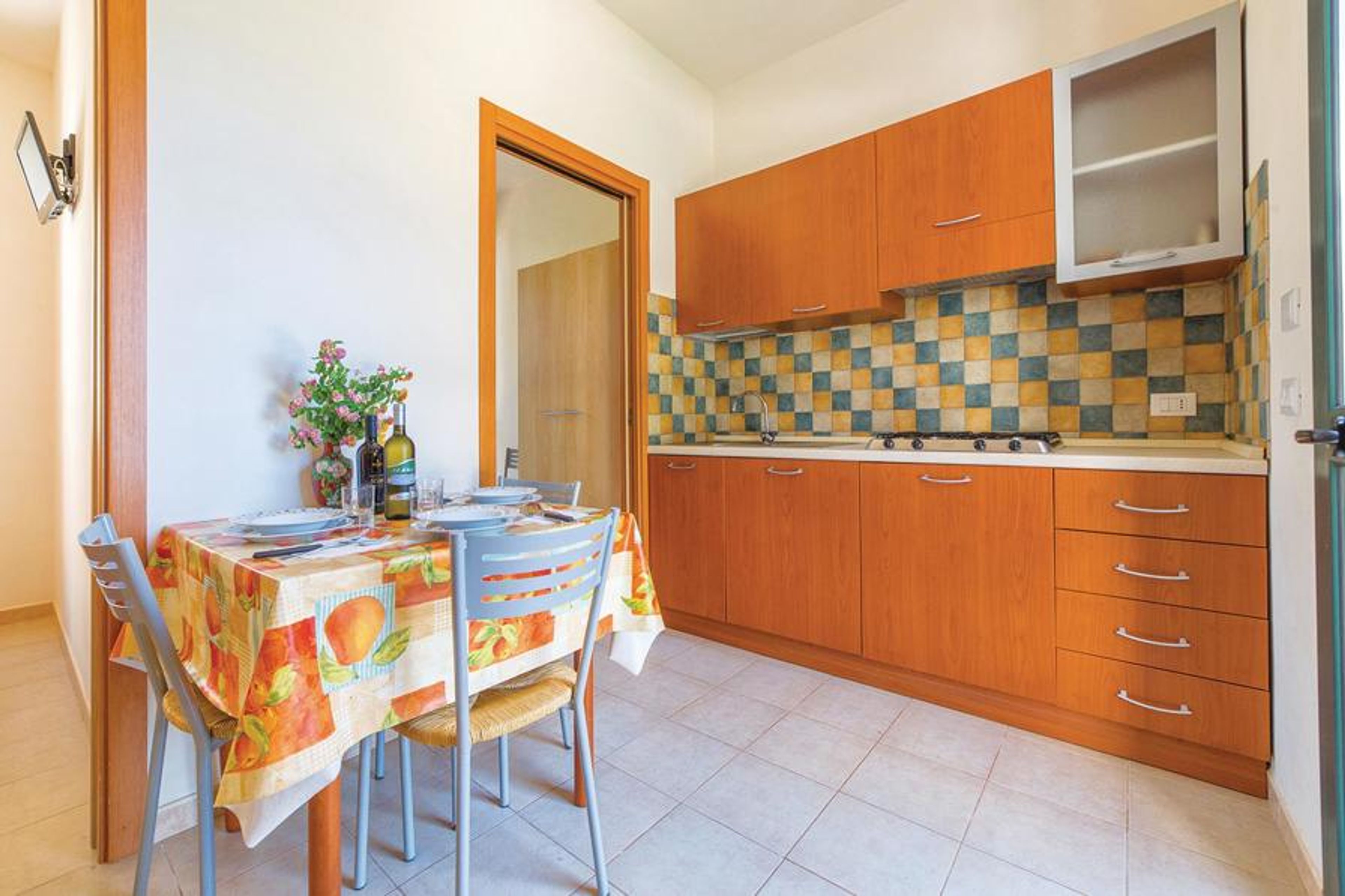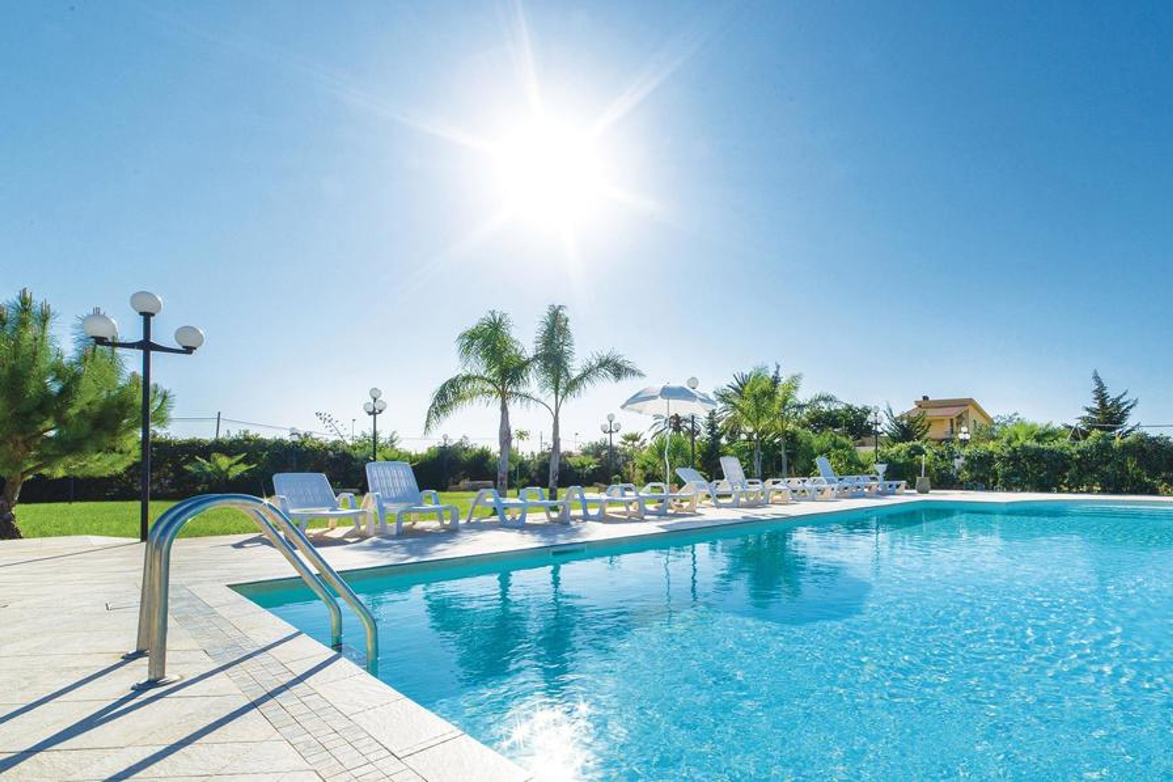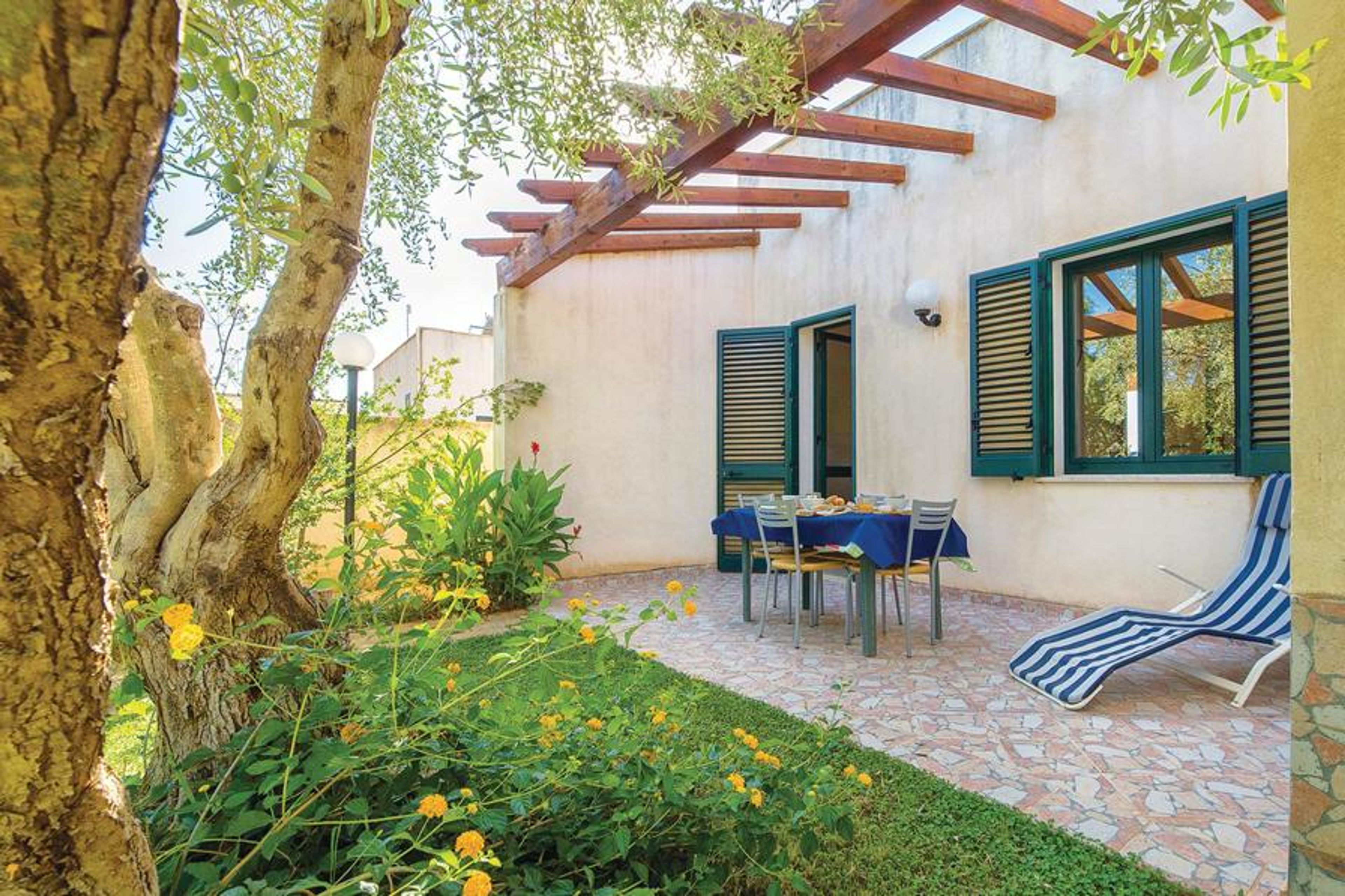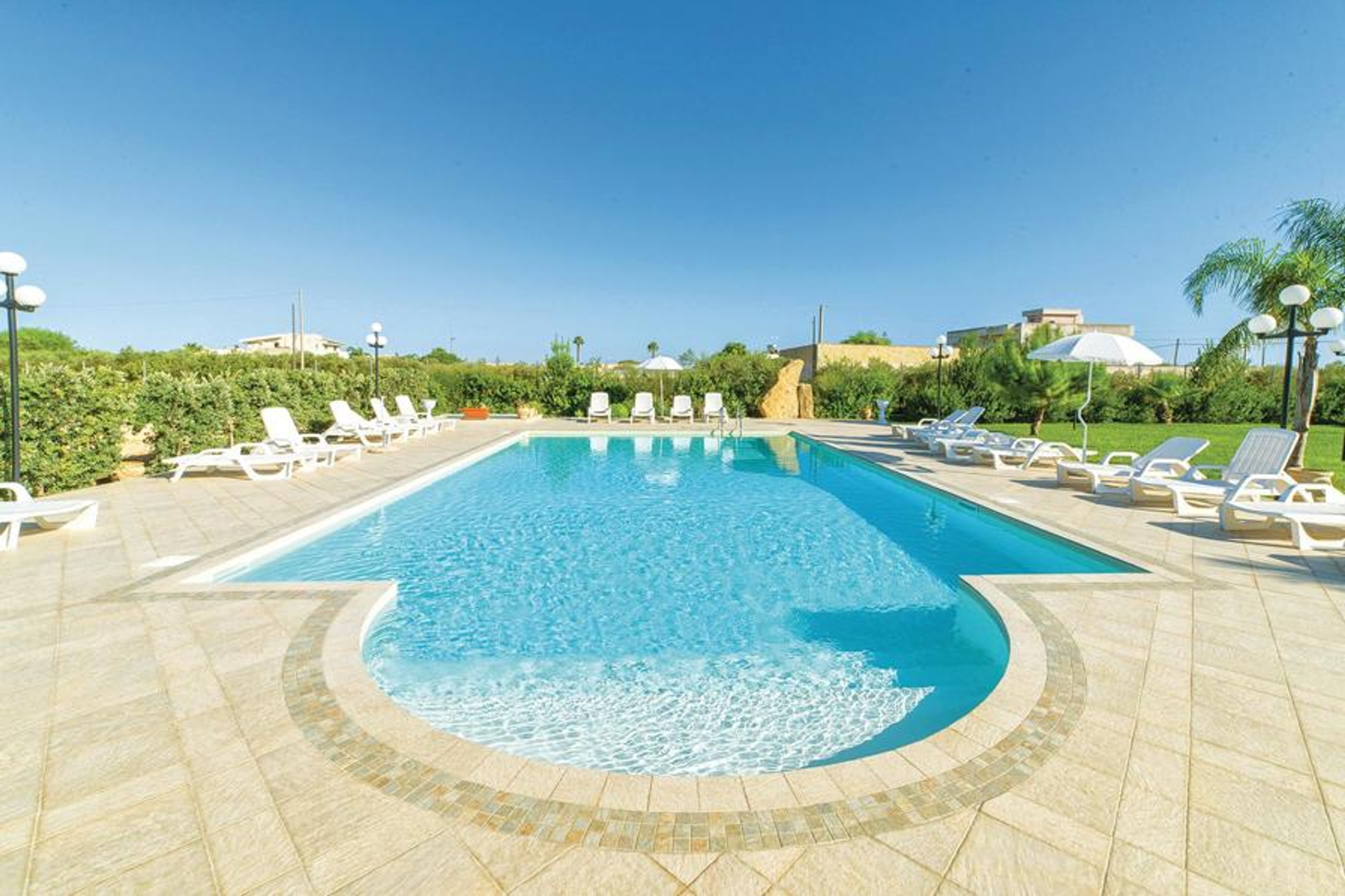 Apartment in a holiday complex with shared swimming pool and children’s playground near Marsala, only 3 km from the sea. Visit Marsala and its Porta Garibaldi or Madre di Marsala church.