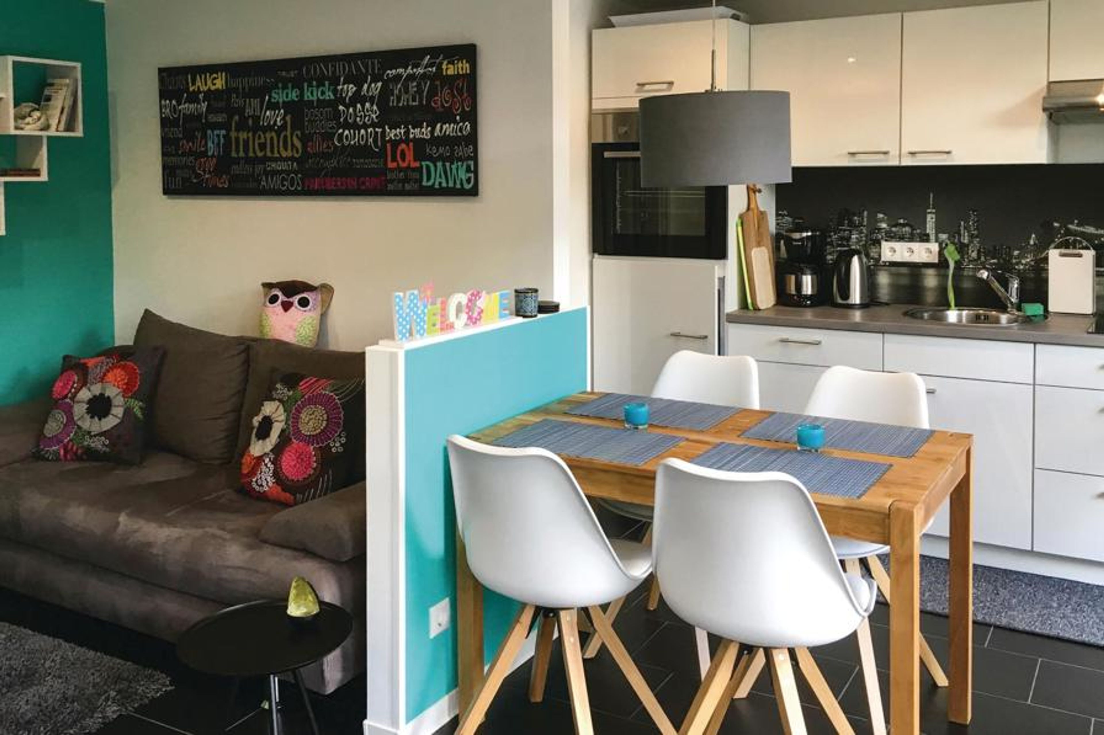 The living room, furnished with attention to detail, in which there is a sofa bed with two additional sleeping accommodations, integrates a very nice eat-in kitchen with a dining table for four people. From here you can directly access the spacious terrace on which they have selected garden and sunbed furniture and a barbecue. Enjoy your meals together here and relax in the fresh air. The lovely bedroom has a double bed and the modern bathroom has a shower.