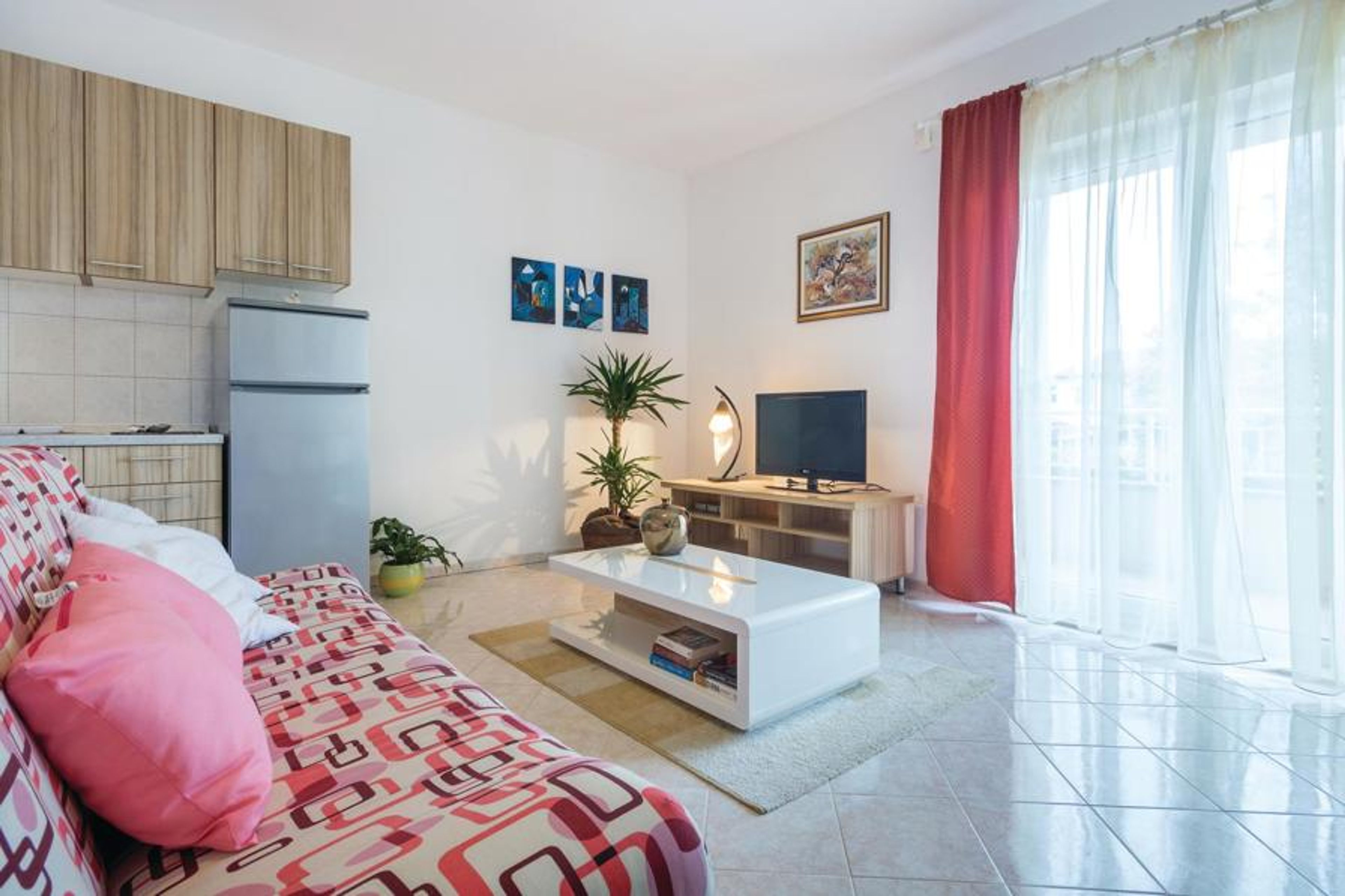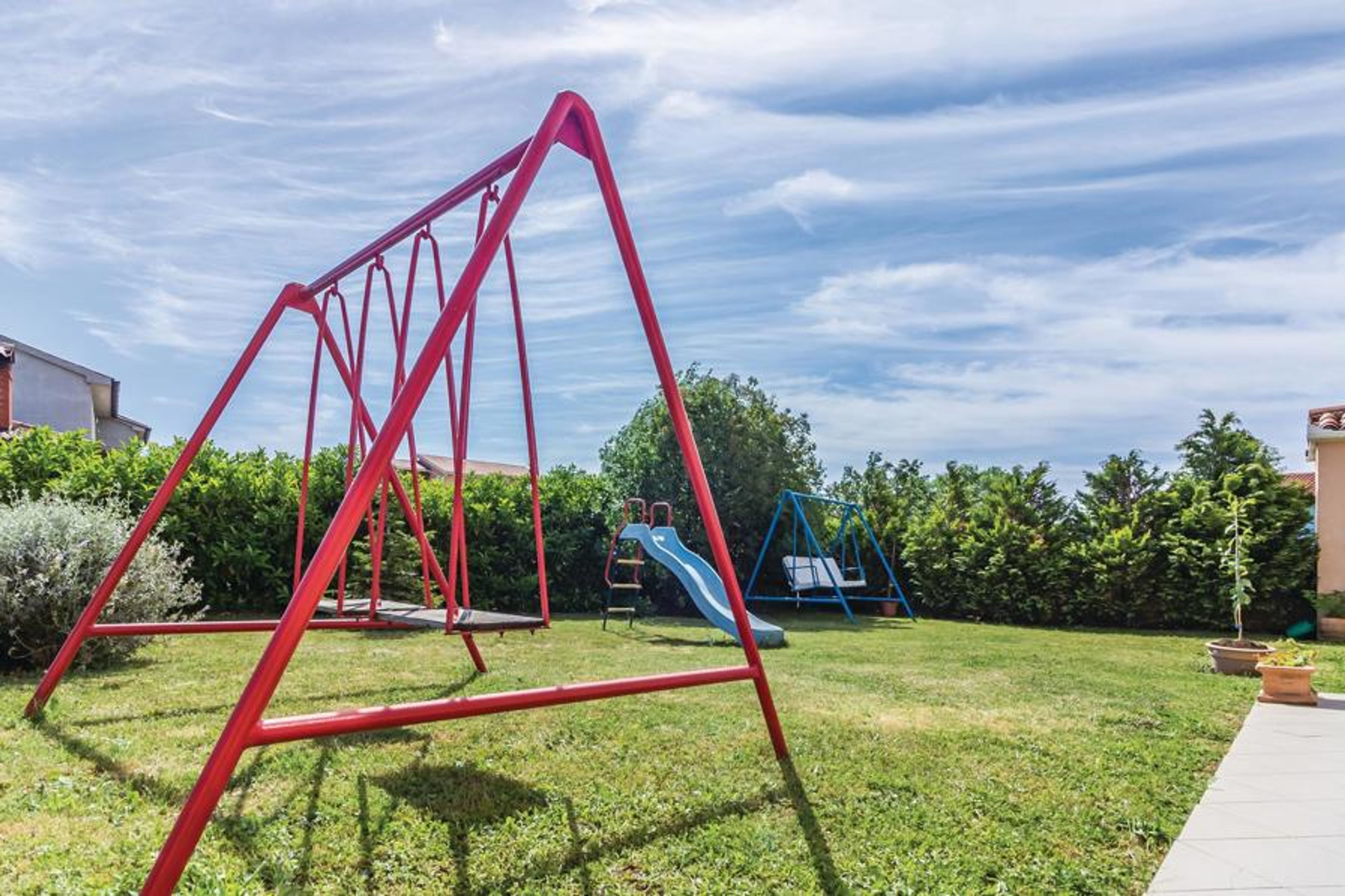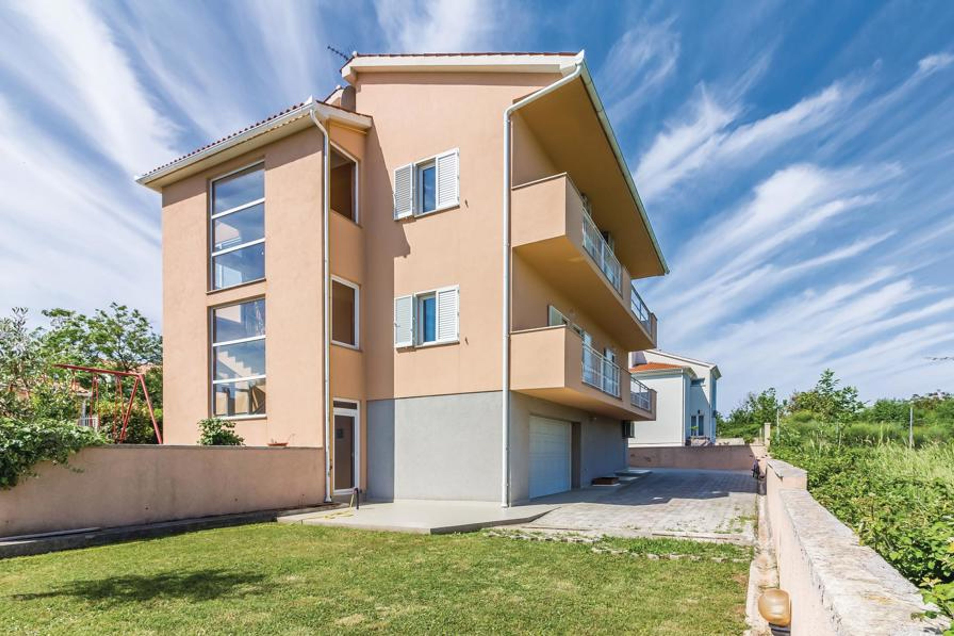 These two apartments are located on the 1st floor of a private house in a smaller suburb in Pula and are ideal for friendly families traveling together. Comfortably furnished, it invites you to spend relaxing, social hours on the shared property. Your children will enjoy the playground equipment in the garden. In just a 10-minute drive, sun worshippers can reach picturesque beaches and bays that have an irresistible appeal. A rich dose of culture awaits you in Pula, the oldest city in Istria, which thus invites you to visit.