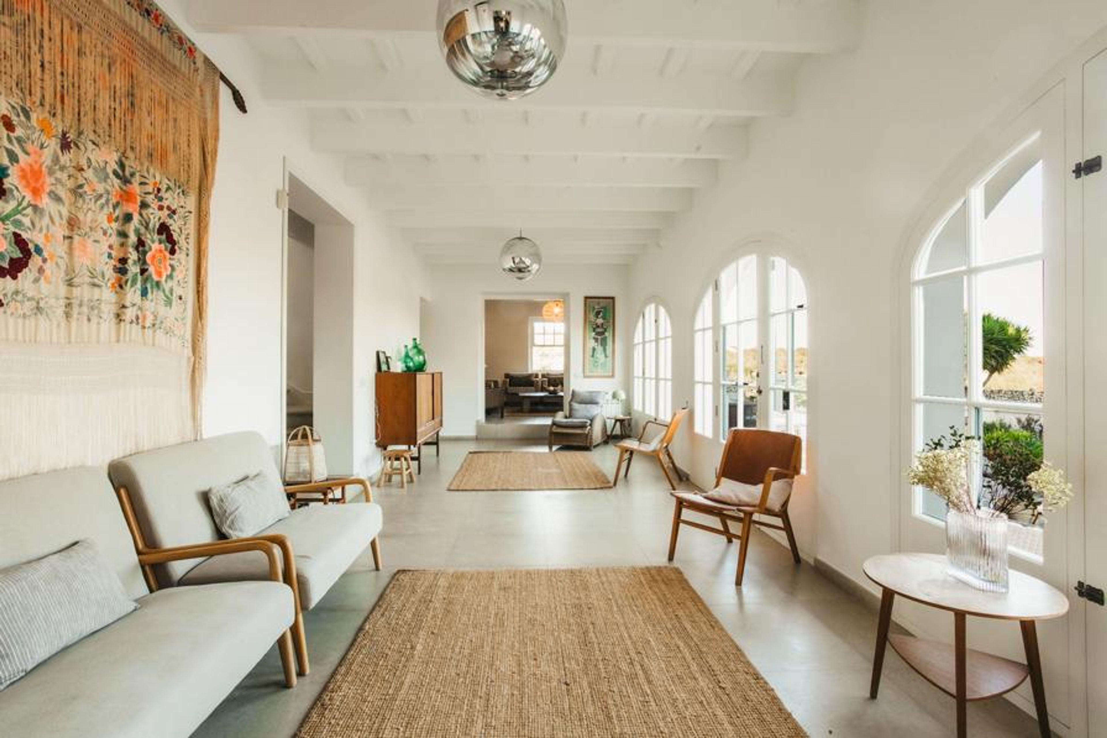 - Ample living room with comfortable seating and access to the garden