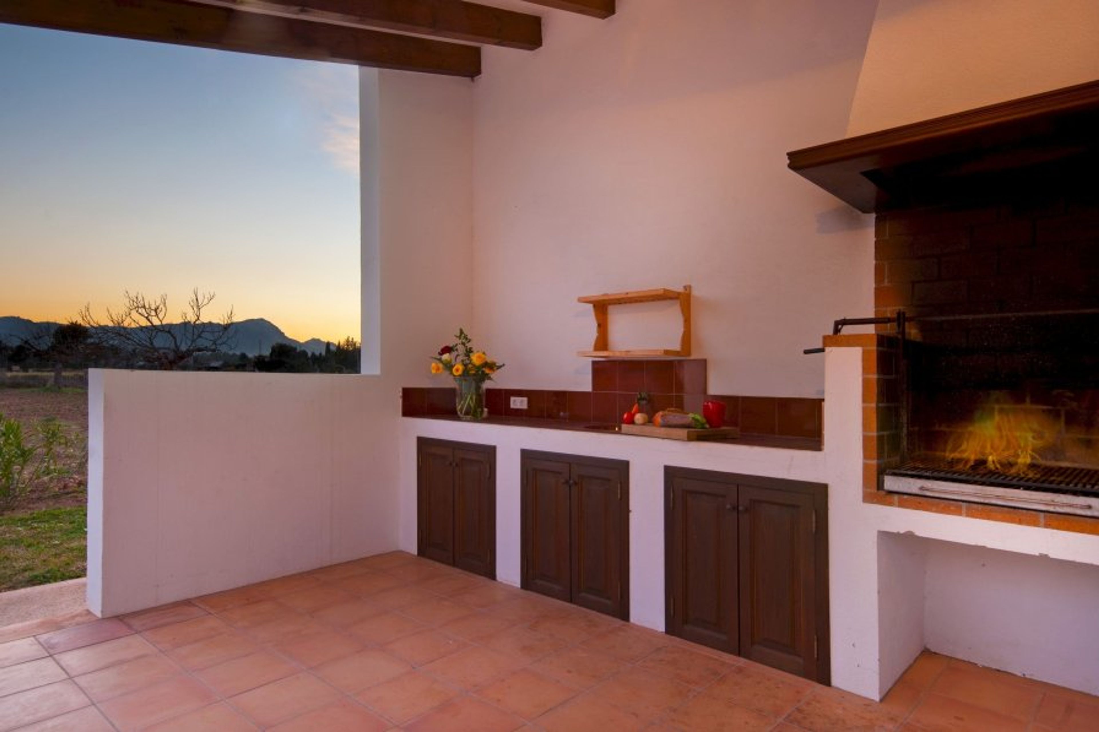 Fantastic Villa in almost walking distance from Puerto Pollensa. Aproximately 1 Km after Puerto Pollensa, a sign “La Vinya” leads to a small way away from the main road. At the end of this path we find the lovely house “La Vinya”. Surrounded by nature and some olive trees, the house is in a quiet place away from the louder roads. A wide parking area invites to park the car (or bicycles) and enter the main entrance of the house. The hall is spacious and very high. In front of us there is a staircase that leads to the dormitories in the first floor. Here we find three bedrooms and two bathrooms, one in suite and the other one with bath. Back to the entrance we look at the left side and find ground floor bedroom and a bathroom (shower). Straight on there is the sitting-dining room, passing the kitchen at the right side. Next to the kitchen we find the laundry and the second ground floor bedroom. The spacious sitting room offers views to the country side and to the pool. Two slide doors give access to the nice, great terrace. Here it is an ideal place for having meals or just relax in the sofas. The swimming pool (9×4.5×1.5) and the large barbacue are next to the terrace and complete a round holiday: Enjoy this family villa with great facilities near to the Puerto Pollensa center and the beach!