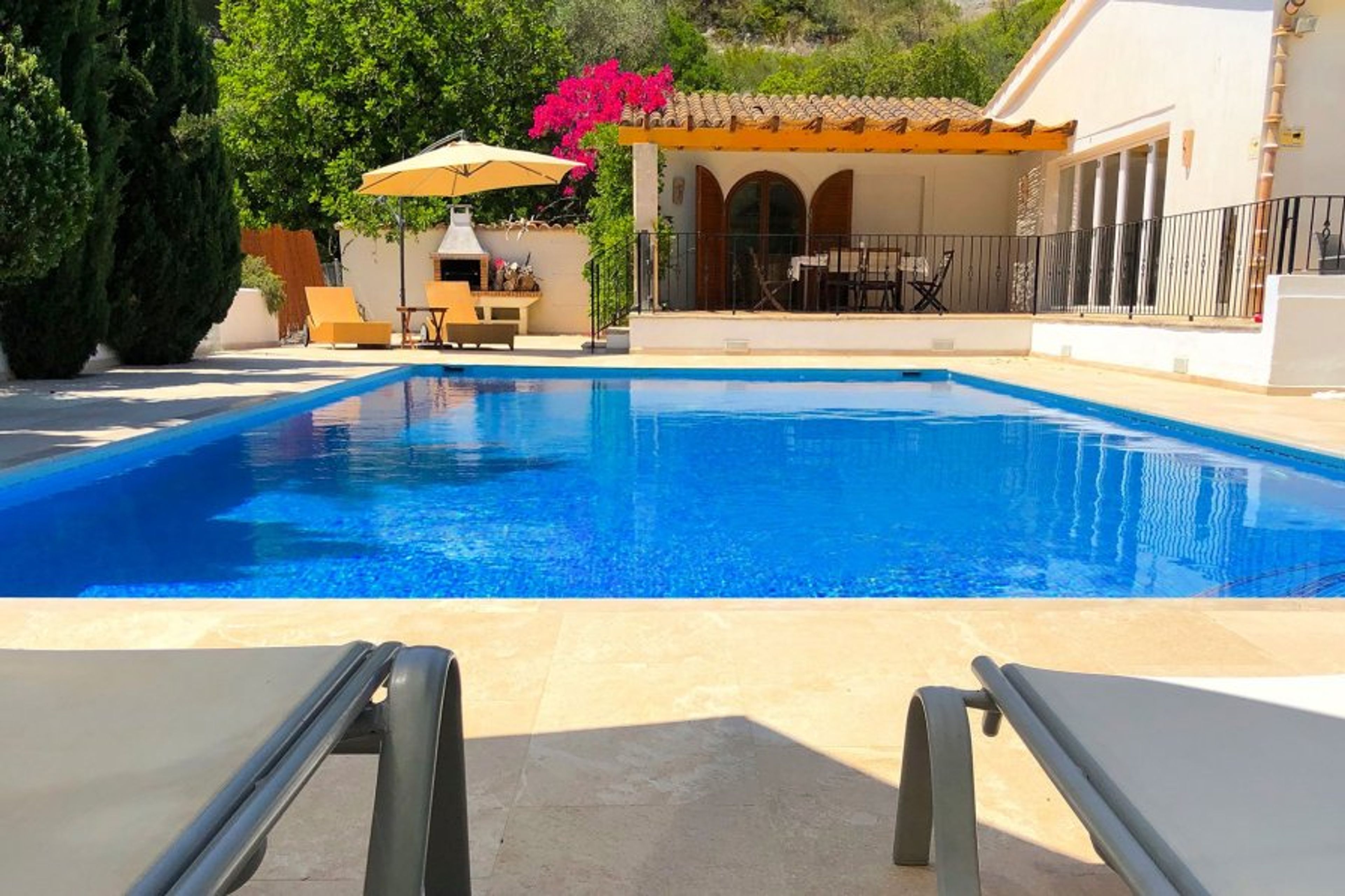 This beautiful Mediteranean Villa is situated on the lower level of the exclusive urbanisation of La Font, Pollensa. Having recently been completely refurbished a few years ago, the property now presents in excellent condition with a light and spacious feel throughout. Internally the property consists of a large open plan living and dining area which benefits from access to the outer terrace areas. This area leads to a fully equipped modern kitchen. Accommodation wise, the property offers in the main house three double bedrooms and two bathrooms. Within the grounds, there a is one bedroom / one bathroom guest annex. The Villa is surrounded by numeous terraces both sunny and shaded, a large 12 x 5 swimming pool and a BBQ area.