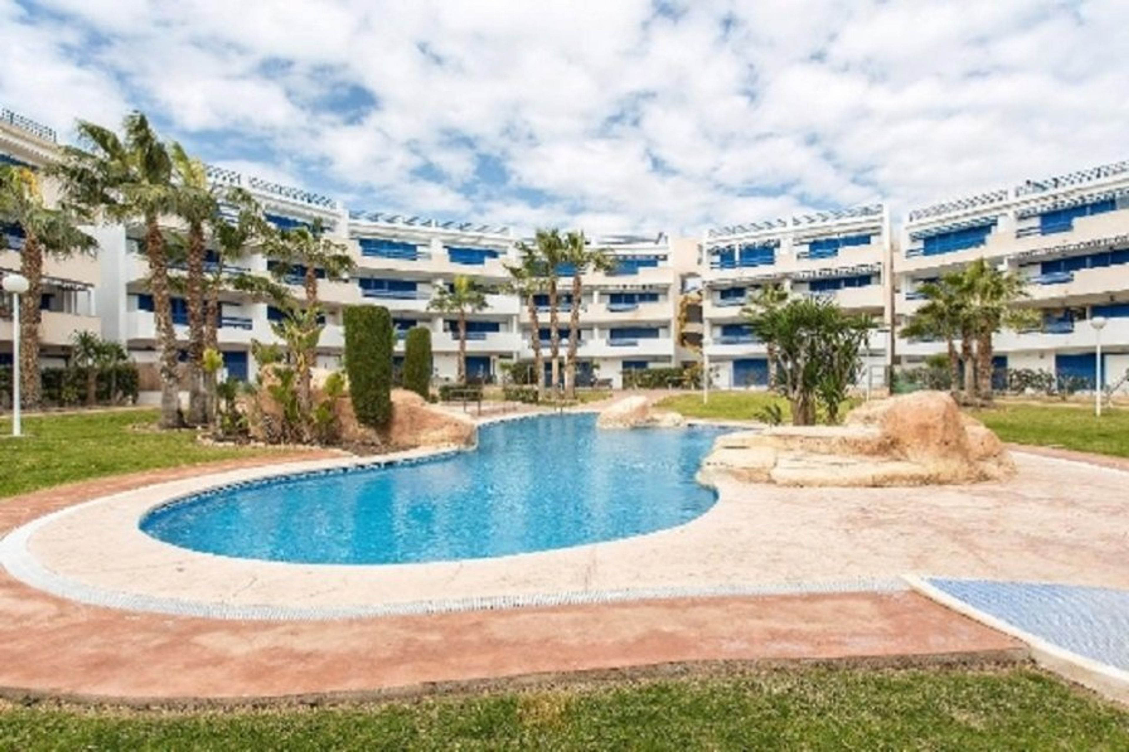 A well-equipped and spacious, ground floor apartment with all the facilities needed for an ideal holiday. Located in the popular, friendly and secure development of La Calma, Alameda del Mar, Playa Flamenca on the Orihuela Costa.