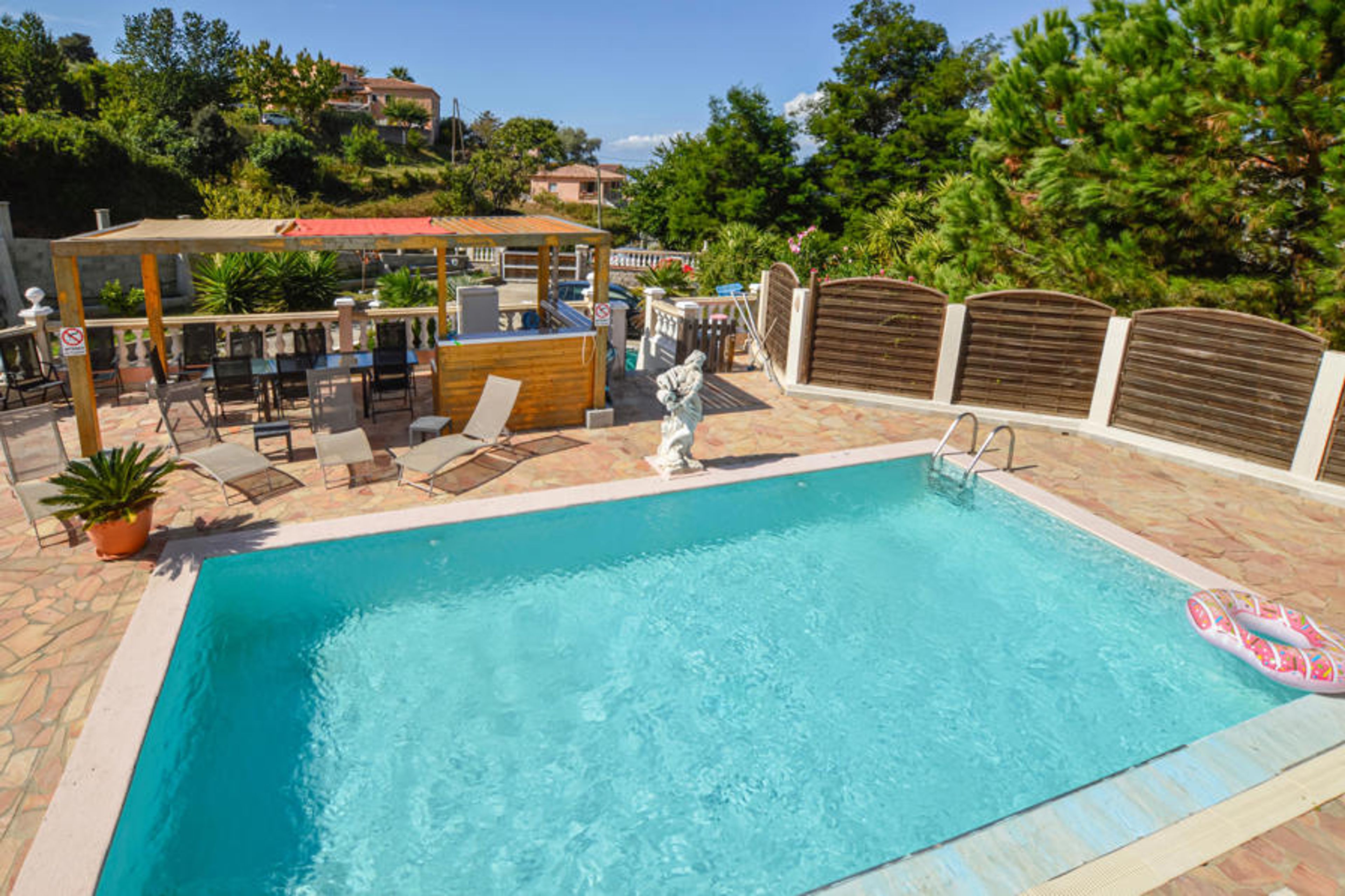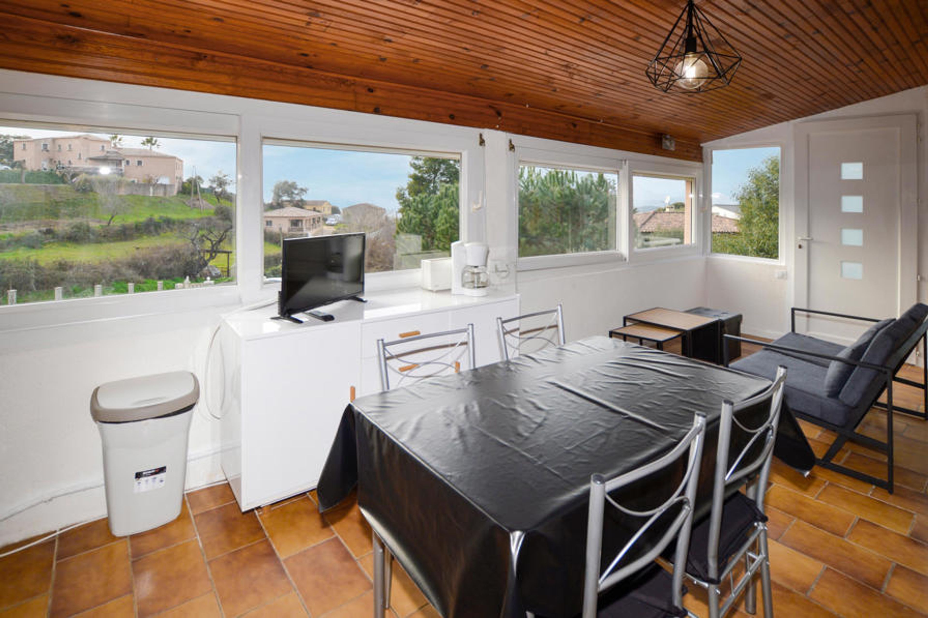 Charming apartment for a successful family vacation on the sunny island of Corsica. The apartment in the house of the landlords impresses with a very pleasant interior and offers the best relaxation. It is accessible via an external staircase. You are welcome to use the beautiful garden and the wonderful swimming pool. Partly there is a small sea view from the property. Only 8 km separate you from the water and warm beach sand. 13 km away Ajaccio attracts with the birthplace of Napoleon, a beautiful cathedral and the Place d'Austerlitz. You can experience the unique nature of Corsica during a walk on the old tax collector's path, or discover the Îles Sanguinaires or the Blood Red Islands: pure postcard idyll. With this charming vacation home, your family vacation on the island of beauty will be an unforgettable experience. 2 bedrooms have no window, they are side by side and each has a glass door to the kitchen and another door to the hallway.