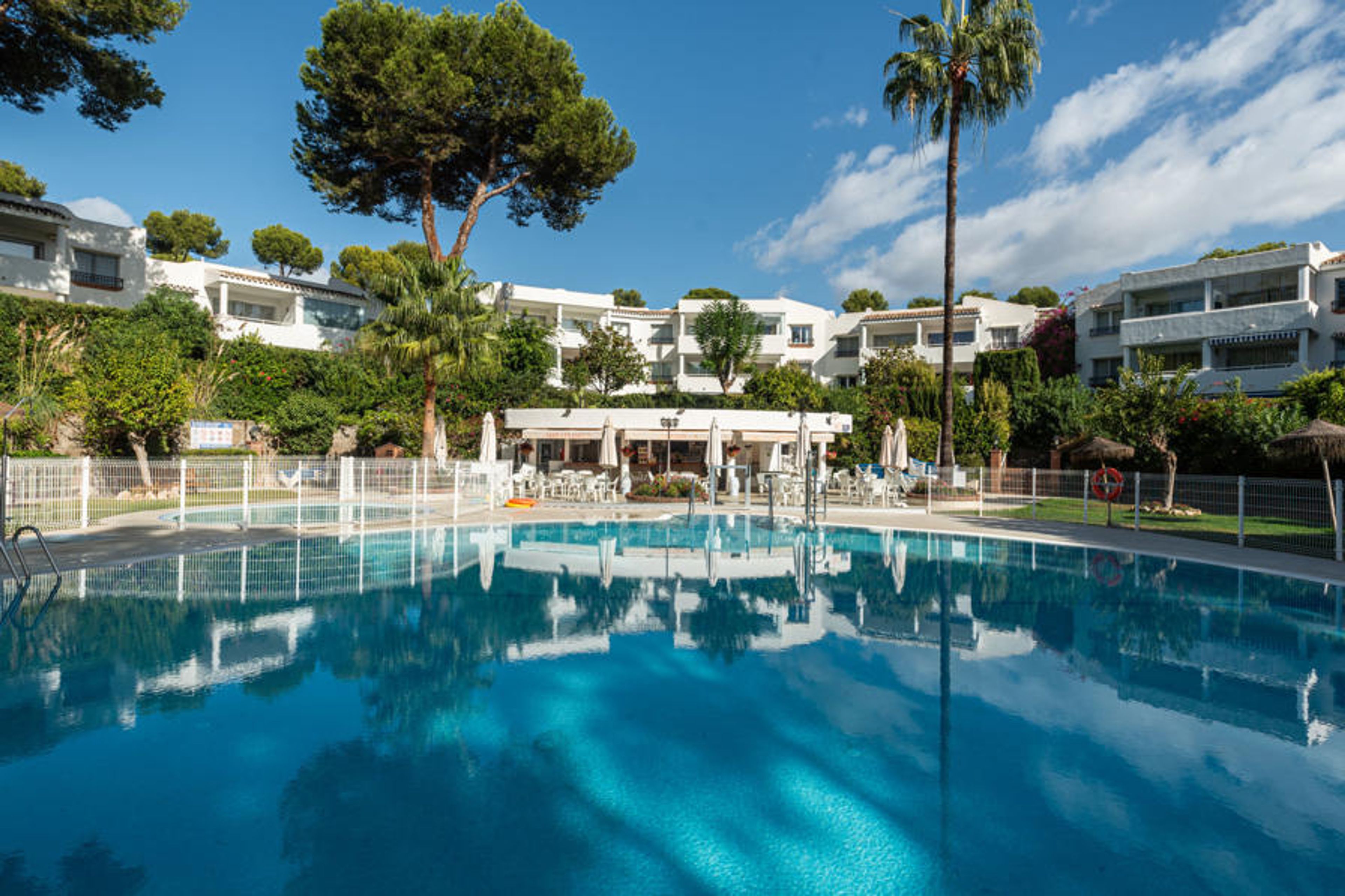 Mijas Costa 18 km from Marbella: Comfortable holiday development "Jardin de miraflores". In the resort Mijas Costa, 950 m from the sea. For shared use: property, well-kept garden with lawn, swimming pool (seasonal availability: 01.Apr. - 31.Oct.). Children's pool, outdoor shower, tennis, children's playground. Stepped path (12 steps) to the house. Public parking on the road. Shop, grocery 100 m, supermarket 1 km, restaurant 200 m, bus stop "Pueblo Miraflores" 550 m, sandy beach 950 m. Golf course (18 hole) 2 km. Please note: no lift.