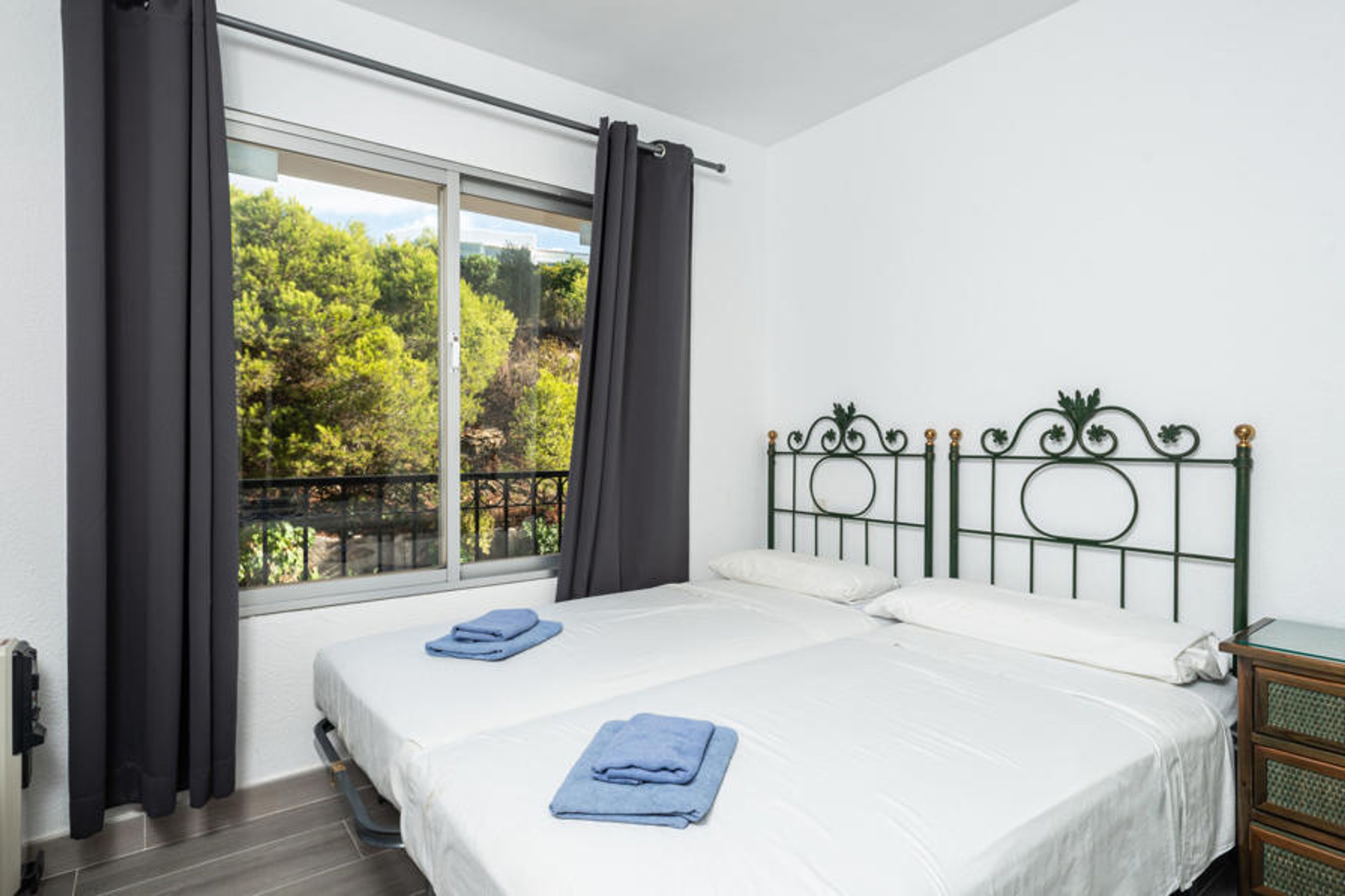 "Jardin de miraflores", 3-room apartment 82 m2 on 1st floor. Practical and comfortable furnishings: living/dining room with 1 sofabed, satellite TV, radio and DVD. Exit to the terrace. 2 rooms, each room with 1 double bed. Open kitchen (4 hot plates, oven, microwave). Bath/WC. Air-conditioning, forced-air heating. Terrace 10 m2. Terrace furniture. View of the sea. Facilities: washing machine, iron, children's high chair, baby cot, hair dryer. Internet (WiFi, free). VUT/MA/02591