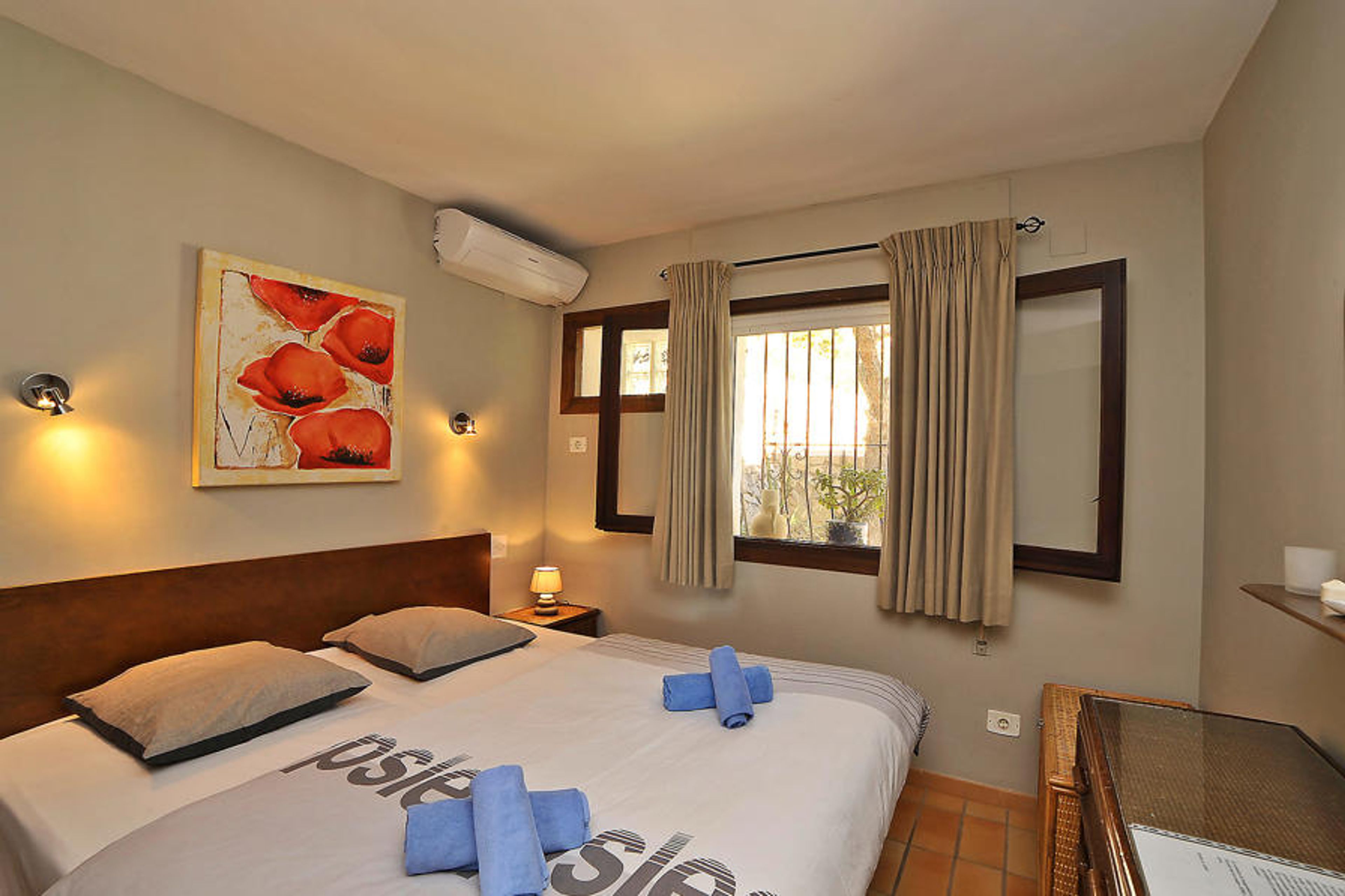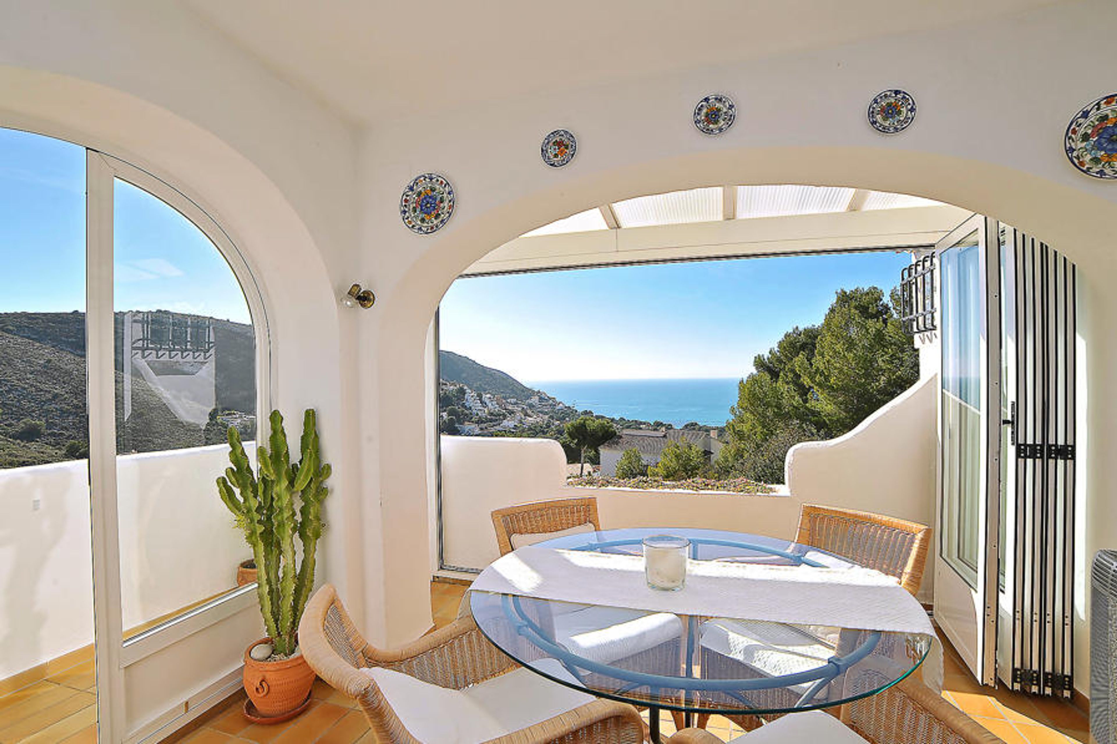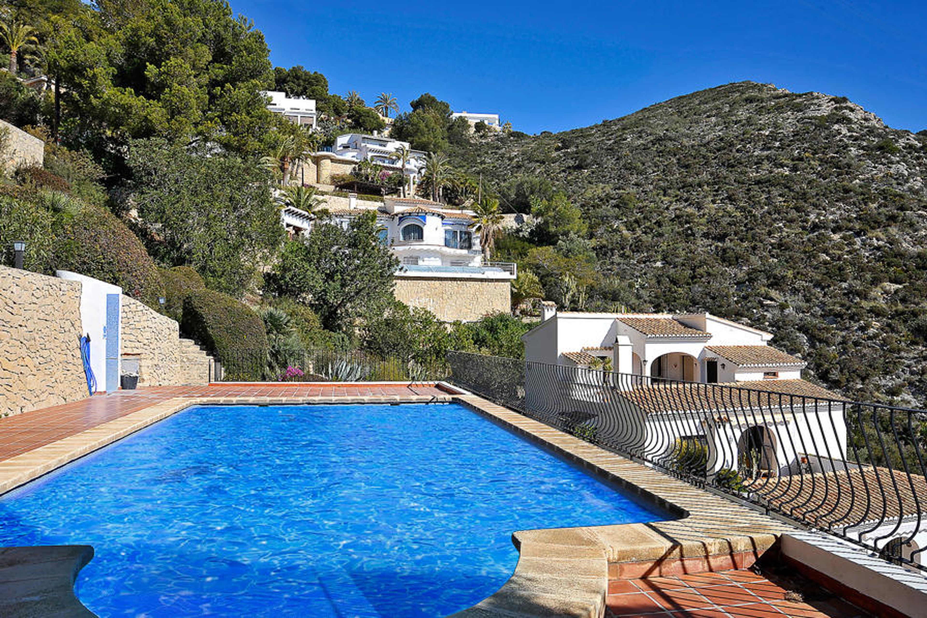 El Portet: Beautiful, comfortable hillside complex "La Colina", semi-detached. 1.7 km from the centre of Moraira, in a quiet, elevated position on a slope, 700 m from the sea, 700 m from the beach. For shared use: swimming pool (11 x 6 m, seasonal availability: 01.May. - 30.Sep.) with internal staircase. Outdoor shower, terrace, garden furniture. Private: terrace, garden furniture. Stepped path (54 steps) to the house. Supermarket, restaurant, bar 950 m, bus stop 2.7 km, sandy beach 700 m. Please note: car recommended. The owner does not accept any youth groups.