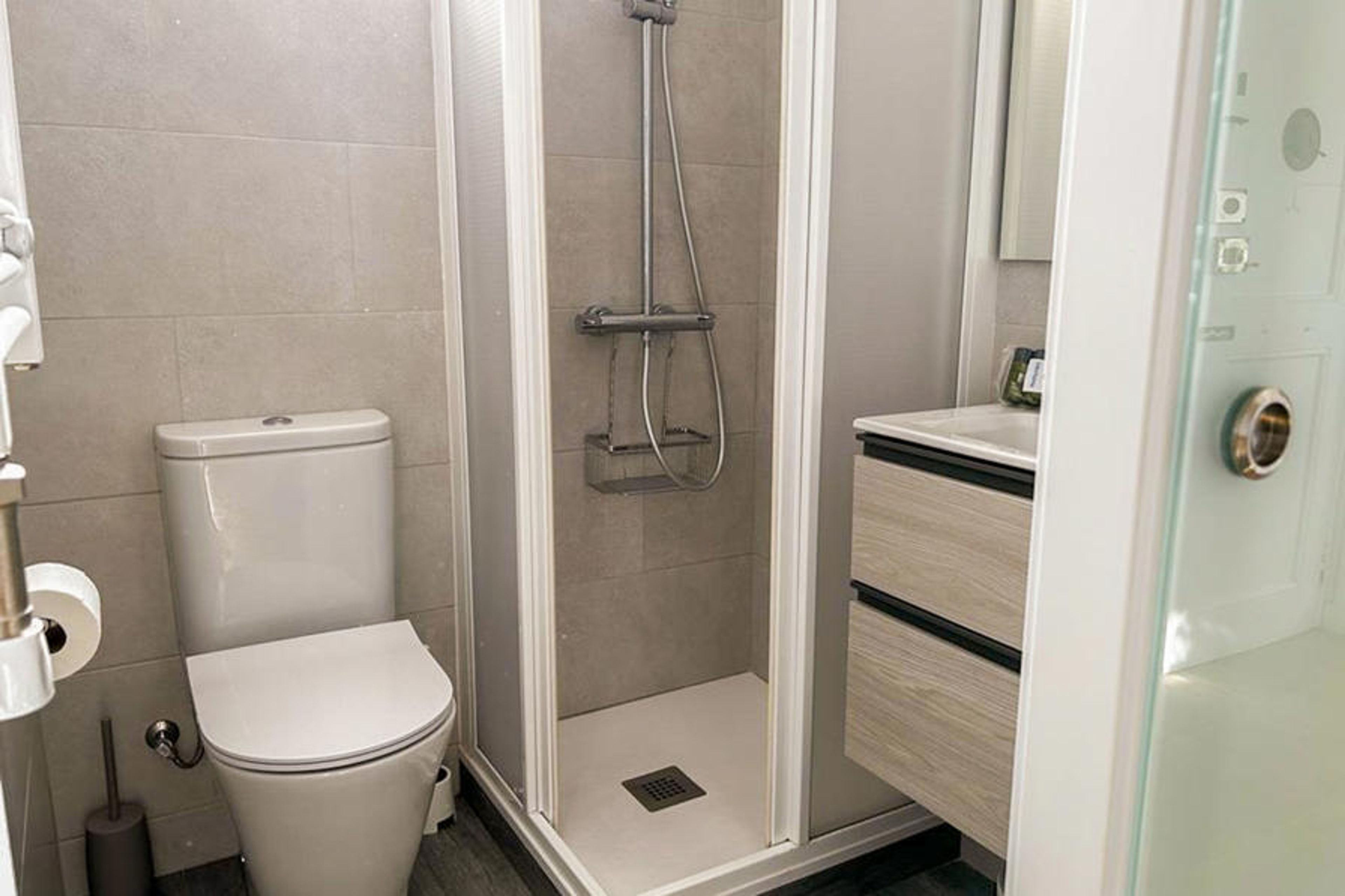 2-room apartment 45 m2 on 4th floor. Bright, comfortable furnishings: living/dining room with digital TV, flat screen and air conditioning. 1 room with 1 french bed (150 cm, length 190 cm). Exit to the balcony. Open kitchen (oven, dishwasher, microwave, freezer, electric coffee machine, Capsules for coffee machine (Dolce Vita) free). Shower/WC. No heating option. Balcony. Facilities: washing machine, iron. Internet (WiFi, free). Suitable for families. The house has smart tv with access to "Netflix". HUTB-006963 // Reg. Nr.: ESFCTU00000805700044779500000000000000000HUTB-0069630