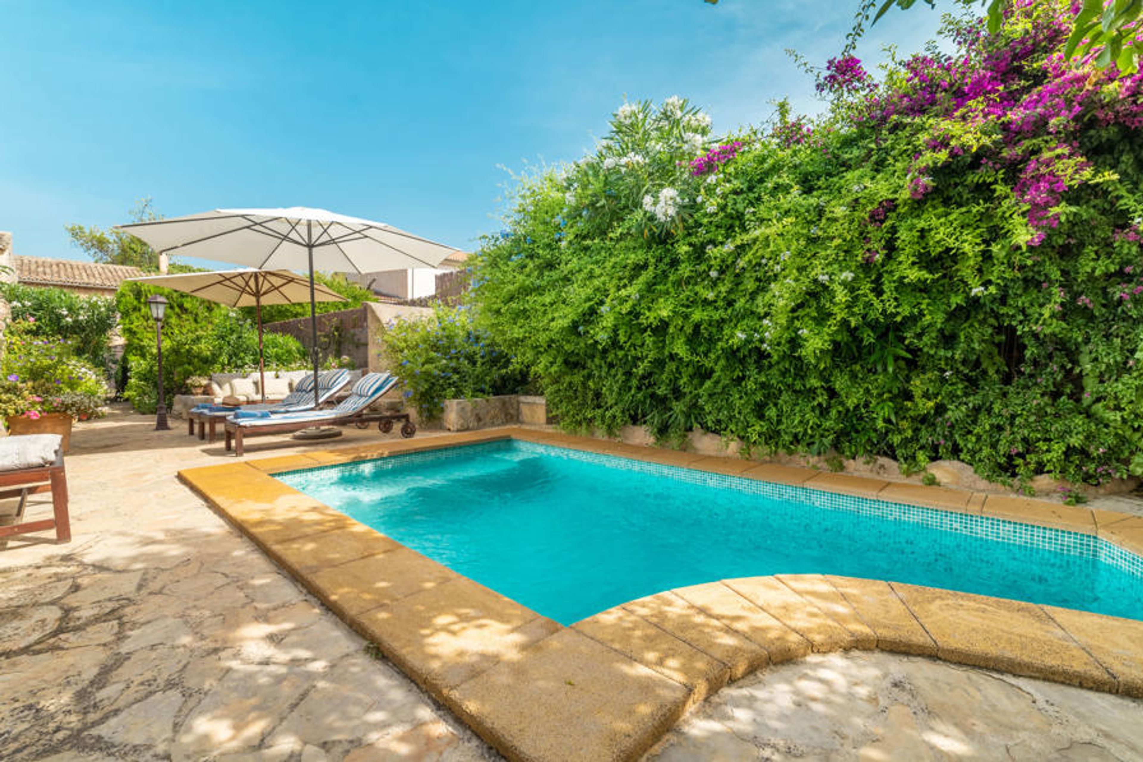 Campanet: Beautiful, rustic house "Sa Teulera", 2 storeys. In the resort, 1 km from the centre, in a quiet position, 17 km from the sea. Private: beautiful garden to relax, swimming pool angular (6 x 4 m, seasonal availability: 01.Mar. and 30.Nov.). Shower/WC in the pool area, patio (100 m2), garden furniture, barbecue. In the house: with TV, internet access, WiFi, air conditioning, washing machine, tumble dryer. Shop, grocery, supermarket, restaurant, bar, bakery, café, pedestrian zone 900 m, bicycle rental 5 km, pub garden 900 m, bus stop "Campanet" 1.5 km, sandy beach "Playa de Alcudia" 17 km pebble beach "Playa de Aucanada" 18 km, shingle beach "Playa de Aucanada" 18 km, rocky beach "Playa de Aucanada" 18 km. Sports harbour 15 km, marina 15 km, golf course (18 hole) 18 km, tennis 1 km, sports centre 1 km, cycle lane 500 m. Nearby attractions: Coves de Campanet 3 km, Fonts Ufanes 5 km, Sa Clasta Wine Tour. Please note: no lift. Suitable for families, suitable for seniors baby equipment on request. Object suitable for 6 adults groups of teenagers on request only. The owner does not accept any youth groups. Loading and unloading of baggage is possible at the holiday house. Airfield 45 km from the property.