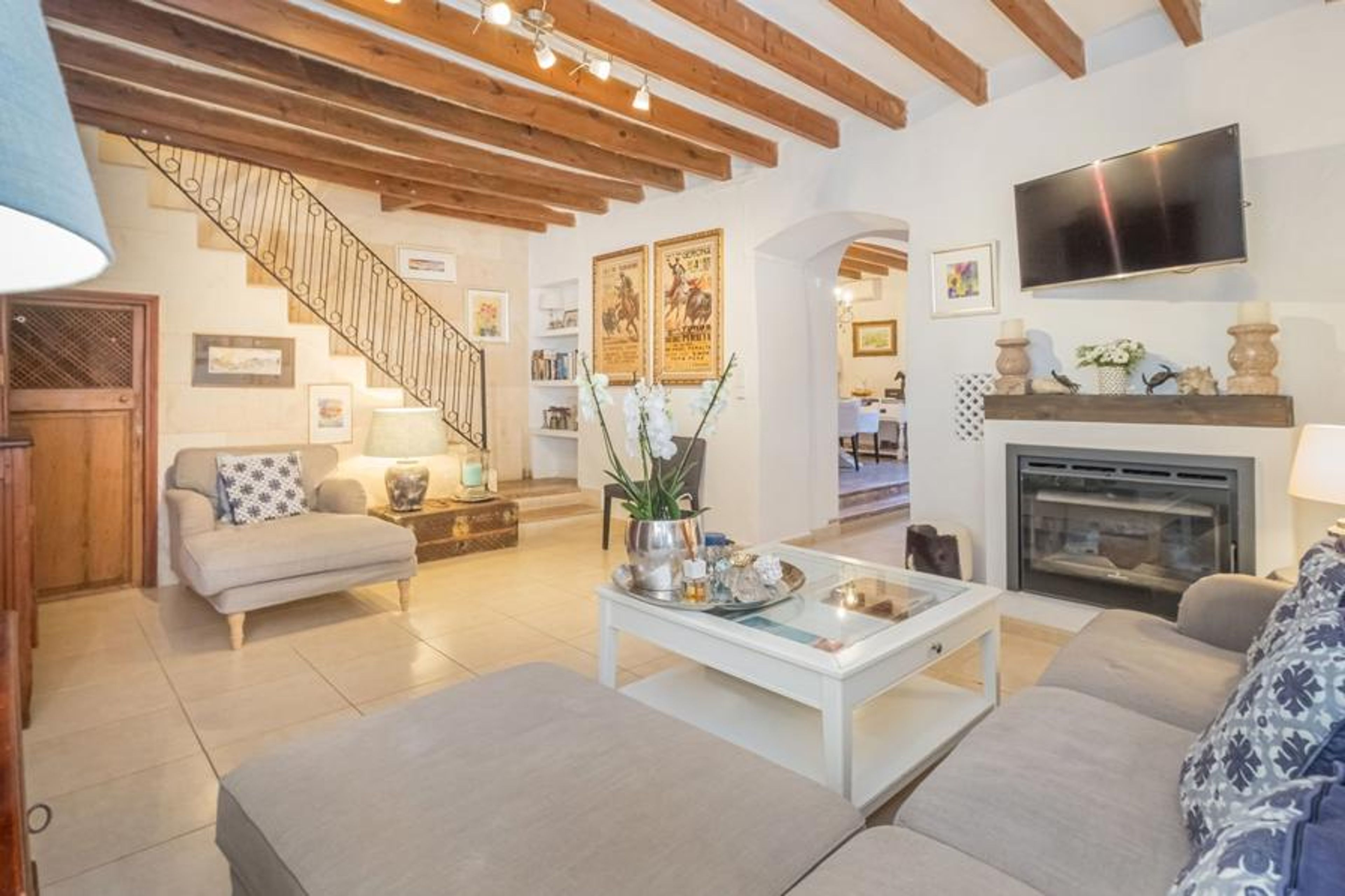"Sa Teulera", 3-room terraced house 150 m2 on 2 levels. Object suitable for 6 adults. Partly with sloping ceilings, fully renovated, beautiful and tasteful furnishings: living room with TV and international TV channels. Dining room with open-hearth fireplace, dining table and air conditioning. Exit to the patio, to the swimming pool. Kitchen (oven, dishwasher, 3 ceramic glass hob hotplates, microwave, freezer, electric coffee machine, cooking island) with dining table. Exit to the patio, to the swimming pool. Upper floor: 1 double bedroom with 1 french bed, TV, air conditioning and forced-air heating. 1 double bedroom with 2 french beds, air conditioning and forced-air heating. Bath/shower. Natural stone floors. Comfortable furnishings in the country house style. Large patio. Terrace furniture, barbecue, deck chairs, sitting area. Partial of the swimming pool, the garden, the countryside and the resort. Facilities: washing machine, iron, children's high chair, baby cot for up to 2 year olds. Internet (WiFi, free). At the house. Suitable for families. Limited Wifi. Sometimes connection might be of low quality. The groundfloor bathroom is located on the terrace area. ETV12662 // Reg. Nr.: ESFCTU0000070220002601330000000000000000000ETV/126623