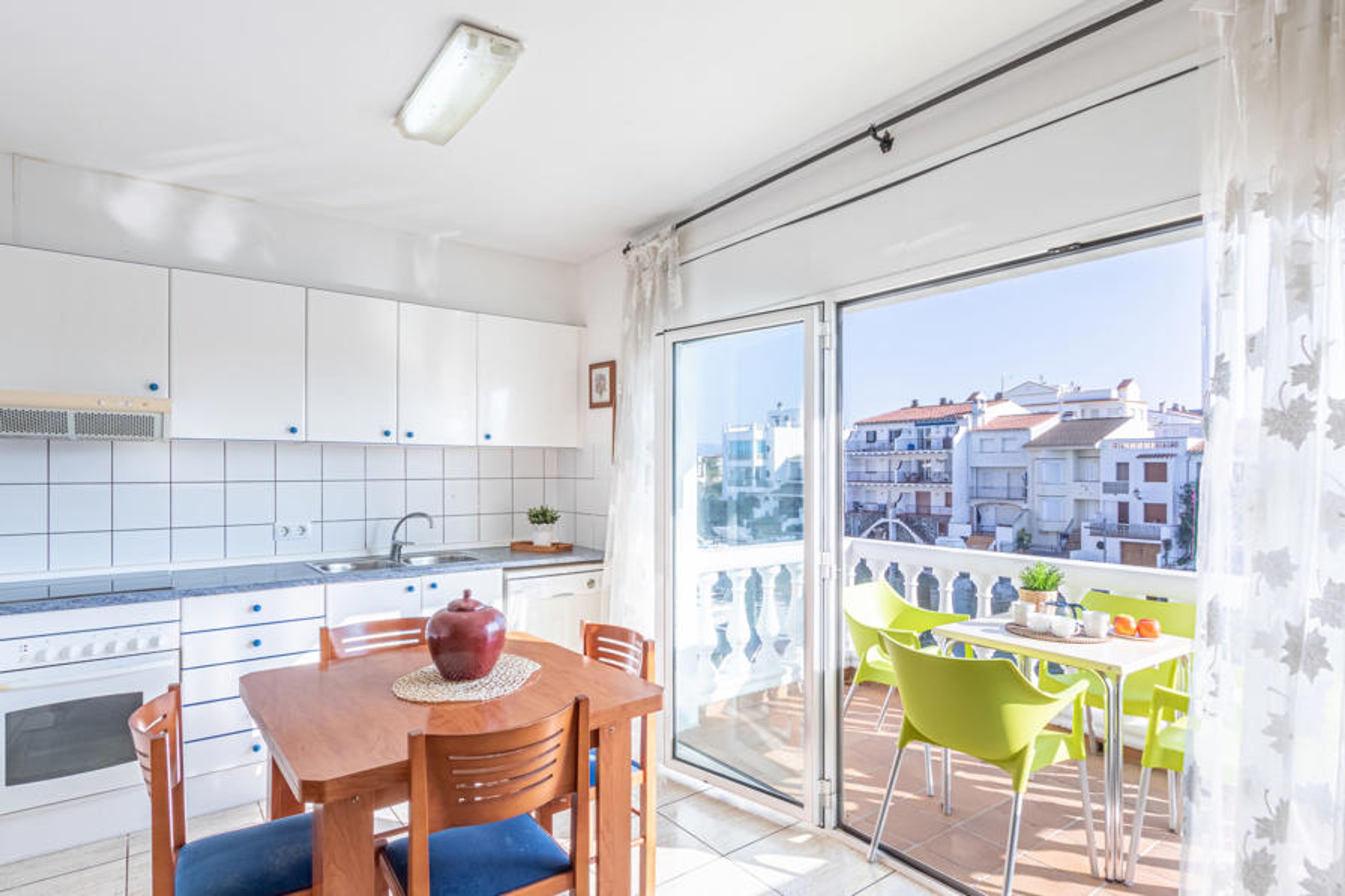 2-family house "Port Banyuls", 2 storeys. In the district of Port Banyuls 1.3 km from the centre of Empuriabrava, in a quiet, sunny position, 2 km from the sea, on a main road. In the complex: WiFi, washing machine. Grocery, supermarket, shopping centre, restaurant, bar, café 500 m, bus stop "Empuriabrava Cruïlla" 1.7 km, railway station "Figueres Renfe Adif" 15 km, sandy beach "Empuriabrava" 2 km. Sports harbour 1.8 km, tennis 1.3 km, minigolf 900 m, walking paths from the house 1 km, cycle lane 1 km. Nearby attractions: Centro Aeródromo y túnel del viento 1 km, Parque Acuático Roses 6 km, Casino y festival de Perelada 12 km, Museo Dalí de Figueres 15 km, Ruïnes de Sant Martí de Empuries 21 km, Monasterio de Sant Pere de Rodes 23 km. Please note: the keys‘ handover takes place by the agency Interhome in Empuriabrava. Additional accommodations can be booked.