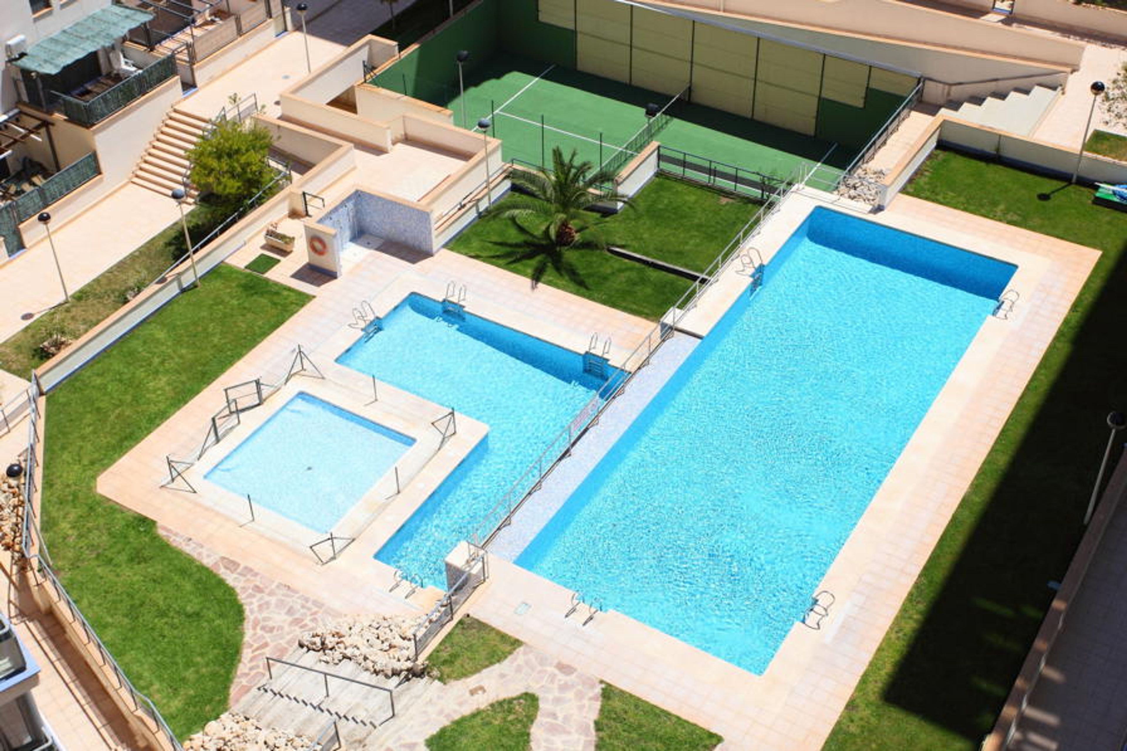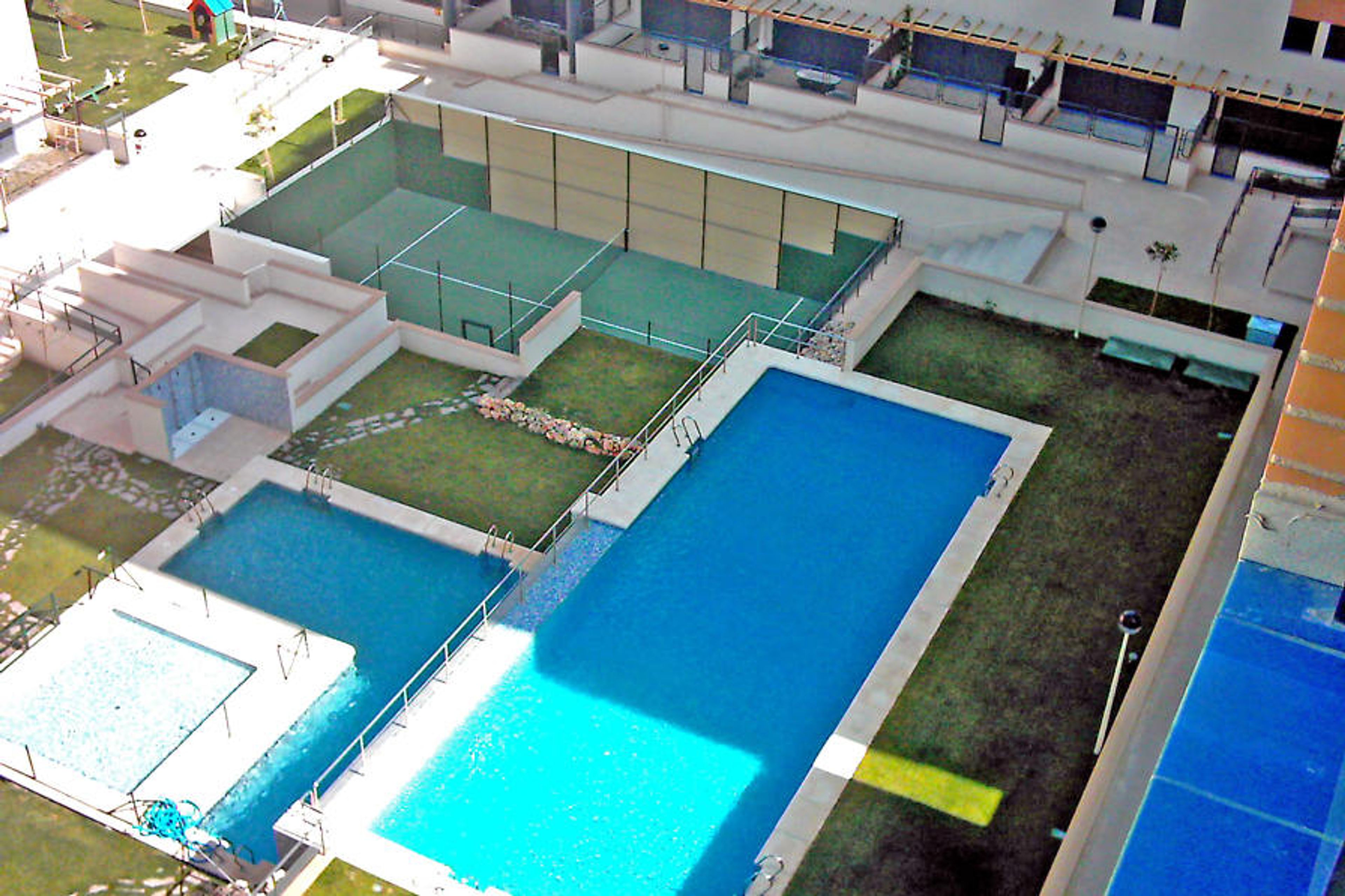 La Cala de Finestrat: Modern, cosy holiday development "Tamarindo", 9 storeys. On the outskirts, 400 m from the centre of Cala de Finestrat, 4 km from the centre of Benidorm, in a quiet, sunny position, 400 m from the sea, from the beach. For shared use: terraced garden, 100 m2 (fenced) with lawn and plants, swimming pool fenced (18 x 8 m, depth 100 - 180 cm, seasonal availability: 01.Jun. - 30.Sep.). Children's pool, outdoor shower. In the house: lift. Public parking on the road. Grocery 400 m, supermarket, shopping centre 500 m, restaurant 400 m, bar, bus stop "Benidorm" 500 m, railway station "Benidorm" 4 km, sandy beach. Golf course (18 hole) 3 km, walking paths from the house 200 m. Nearby attractions: Benidorm Palace 10 km, Aqualandia 10 km, Mundomar 10 km, Terra Mitica 8 km, Terra natura 8 km, Alicante 40 km. Please note: baby equipment on request. The owner does not accept any youth groups. Neighbourhood highly sensitive to noise. Quietness and good behaviour expected.