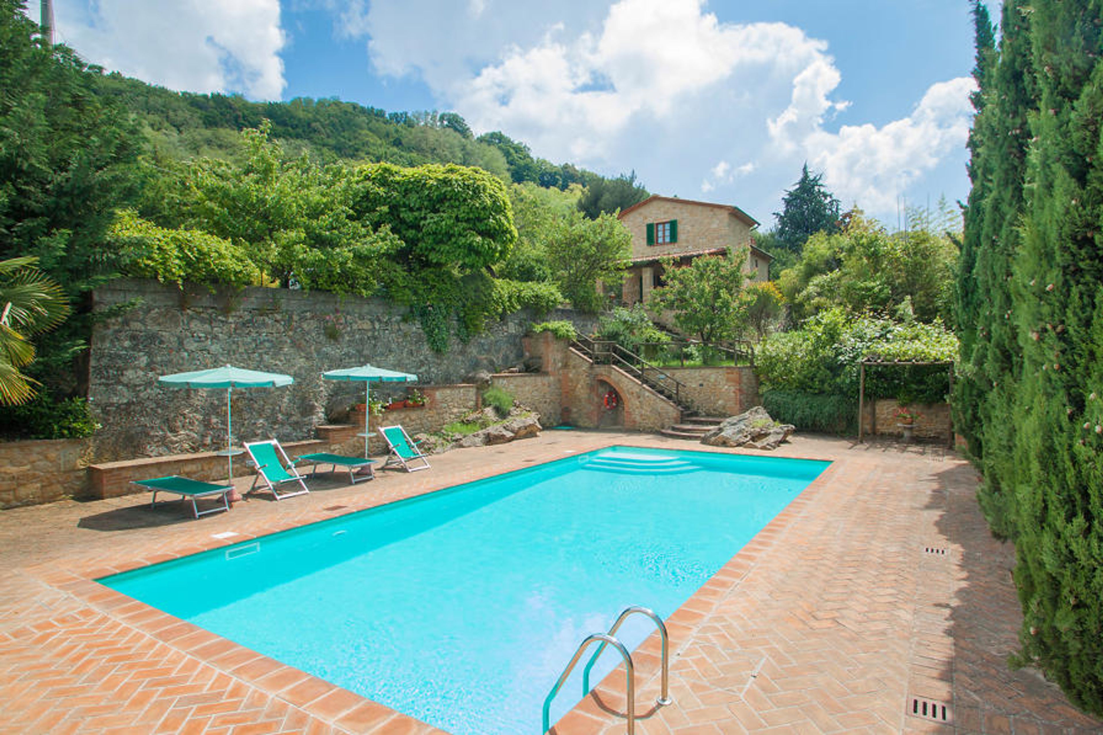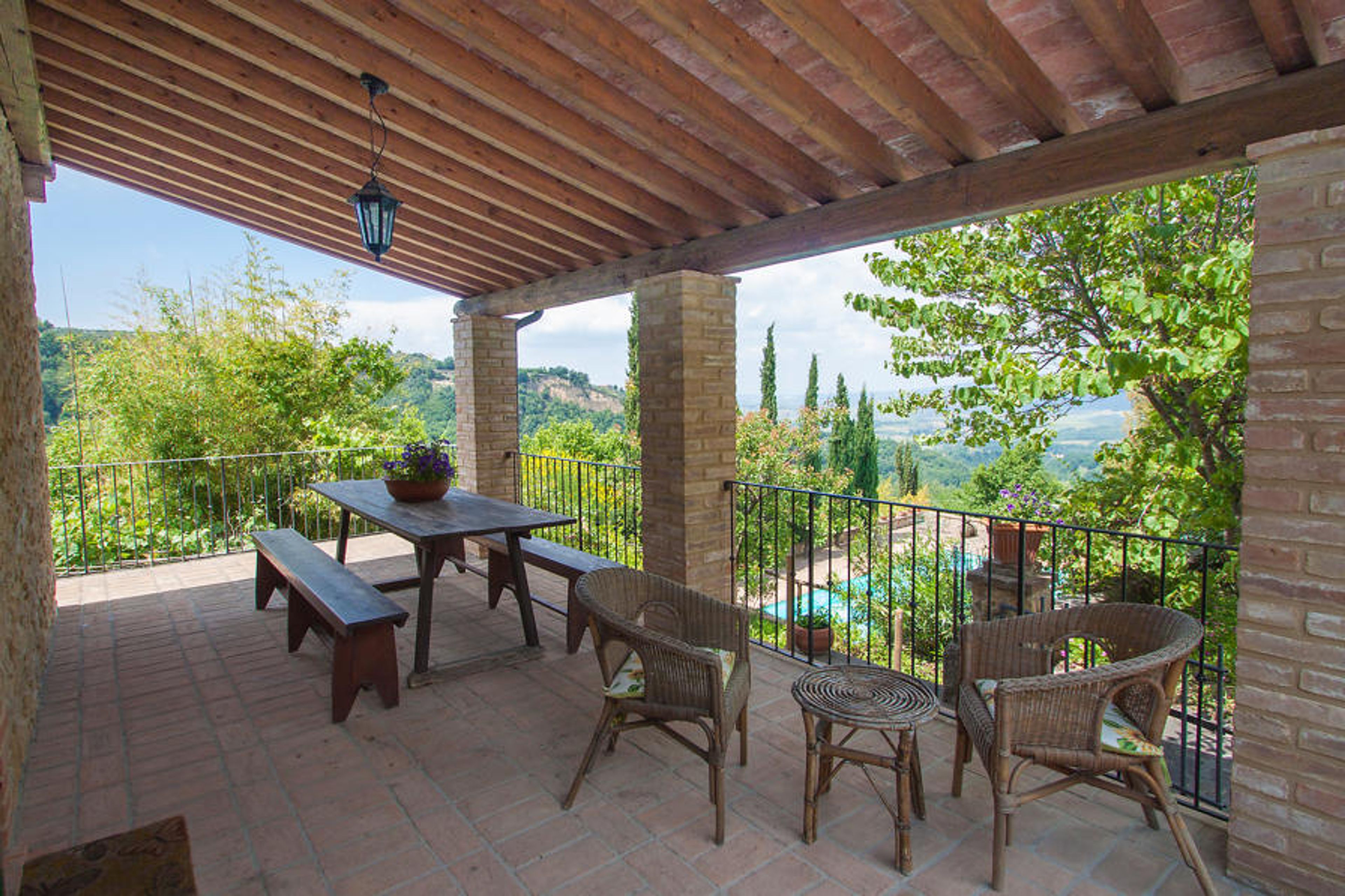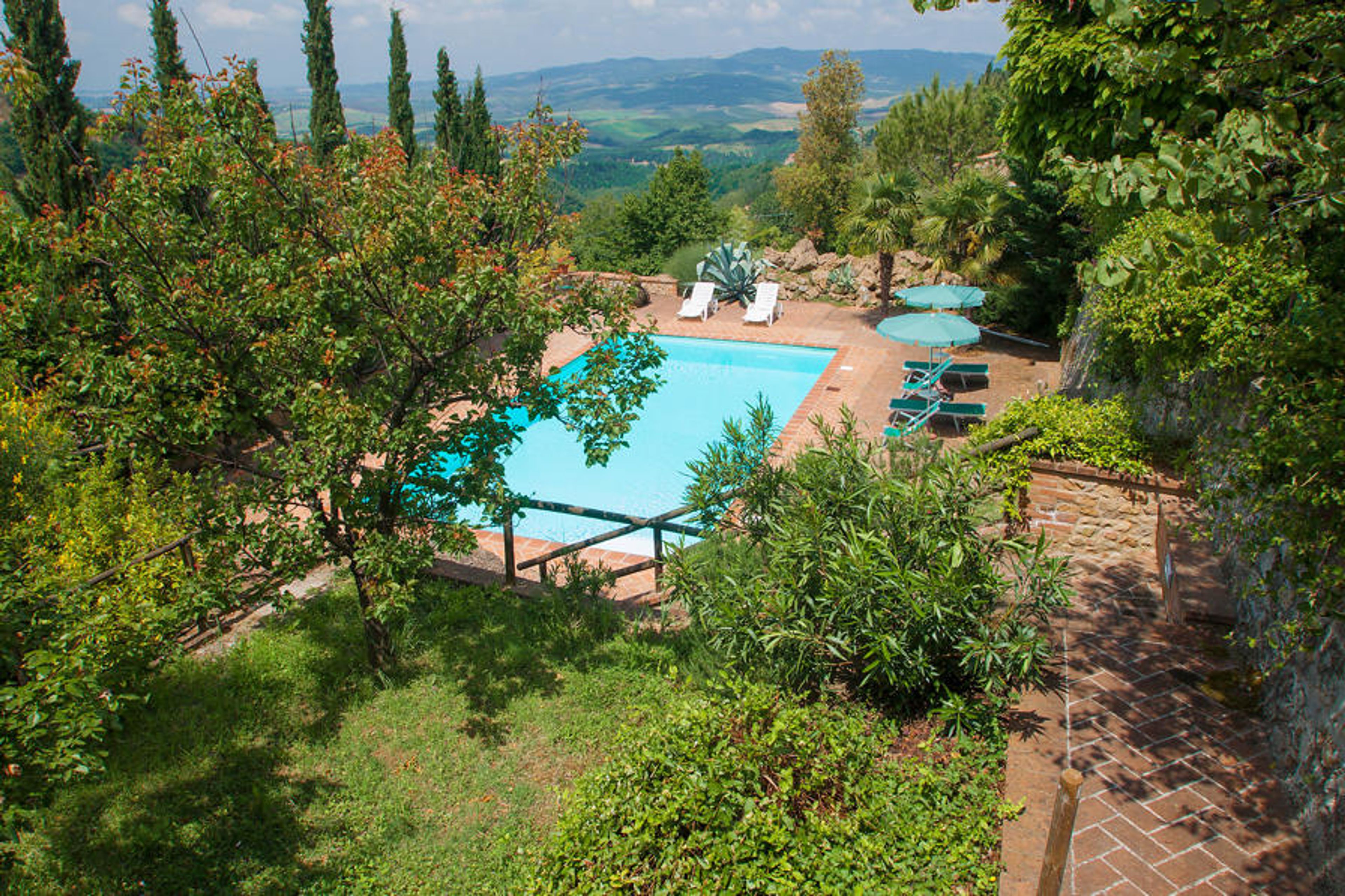 Small independent house situated in a panoramic position, surrounded by vineyards, olive grove and chestnut woods. The area has many ruins from the Etruscan period and it is only 40 km from the sea. Ideal for people looking for relaxation, tranquillity, but also the opportunity to spend a day at the seaside. Some of the outdoor area are fenced, among those a large area 16 x 20 m with furniture, a loggia with wood burning oven. There is a large brick porch to use for dining outside with the view on the swimming pool and the valley. Cosy, simple single-family house "Le Pergole". 1.5 km from the centre of Volterra, in a quiet, sunny position, in the countryside. Private: property (fenced), garden, swimming pool (6 x 12 m, depth 140 - 180 cm, seasonal availability: 02.May. - 14.Oct.). Table tennis, patio, terrace, garden furniture, barbecue. In the house: WiFi, washing machine. Linen change weekly (suppl. charge extra). Motor access (200 m via unmade road). Parking on the premises. Shop 1.5 km, restaurant 1.5 km, bus stop 1 km, railway station 10 km. Tennis 3 km, riding stable 10 km. Nearby attractions: San Gimignano 30 km, Siena 60 km, Firenze 70 km.