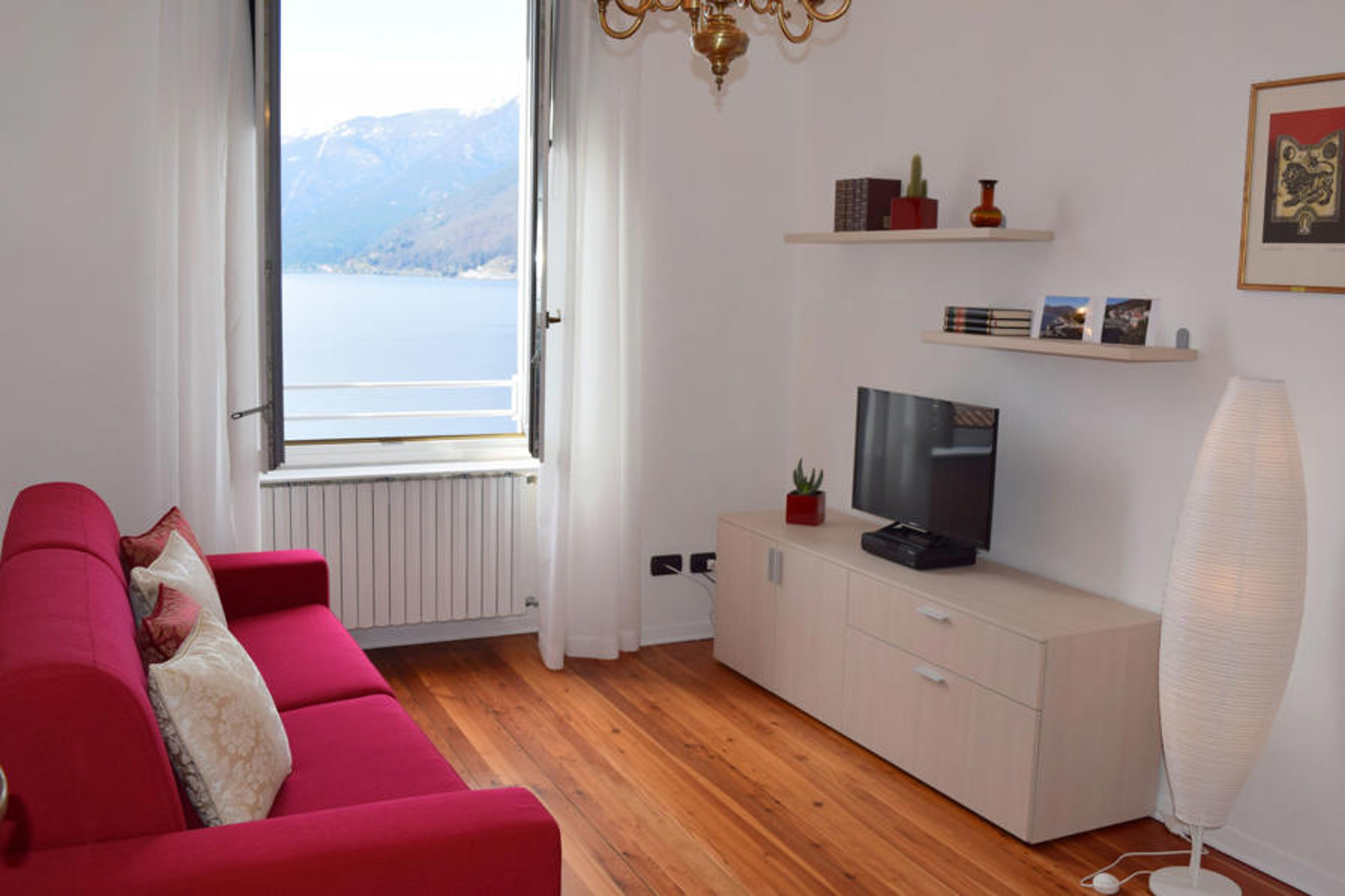 2-room apartment 50 m2 on 2nd floor. Tasteful furnishings: living/dining room with 1 double sofabed and satellite TV. 1 double bedroom. Kitchen (4 hot plates, oven, dishwasher, microwave, freezer, electric coffee machine). Exit to the patio. Shower/bidet/WC. Gas heating. Heating available only from 15.10. to 15.04. Wooden floors. Small patio. Balcony furniture. Beautiful view of the lake. Facilities: washing machine. Internet (WiFi, free). IT012142C2CVBBSUO2