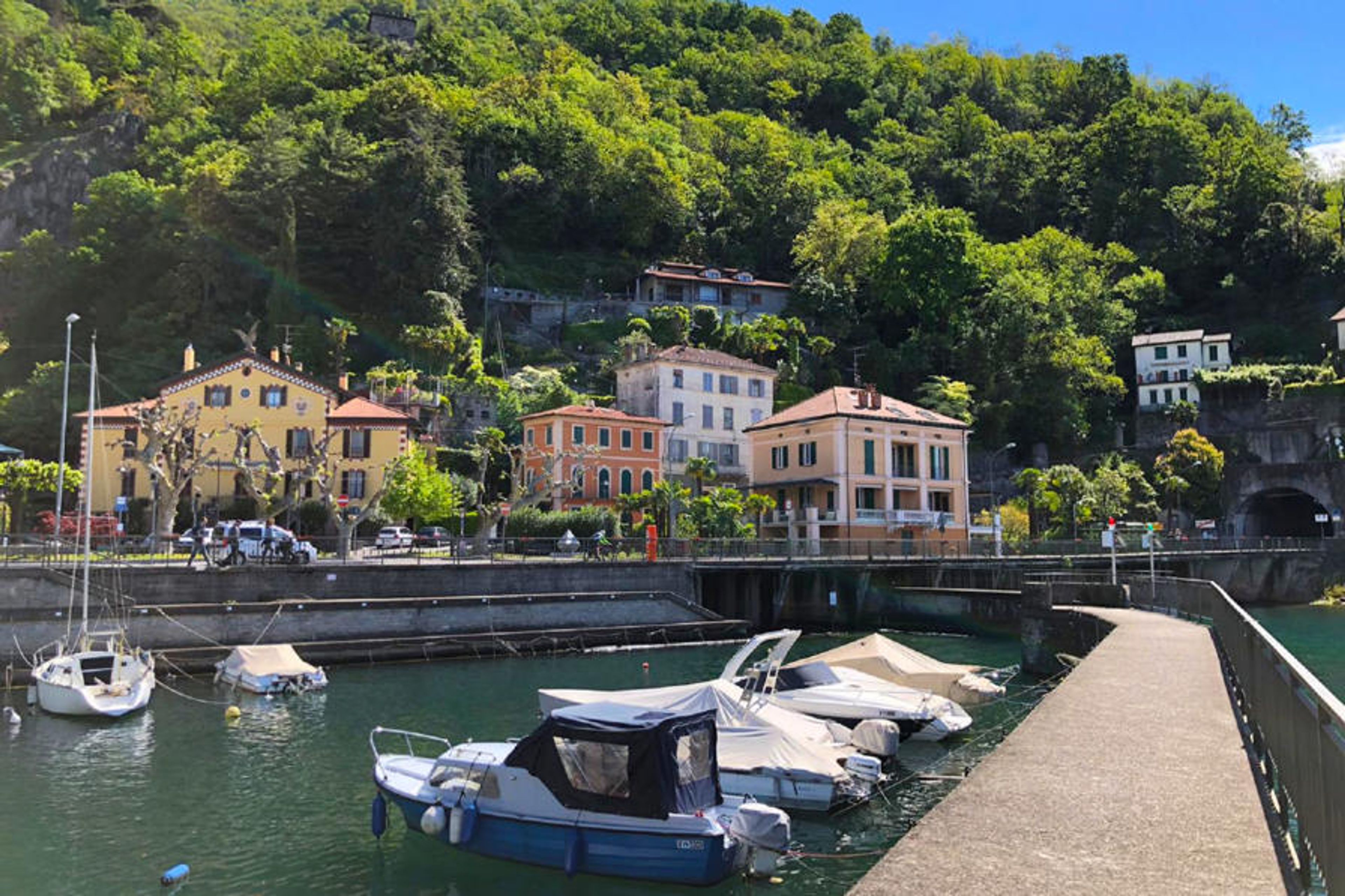 Apartment house "Piazzetta". 500 m from the centre of Maccagno, 100 m from the lake, road to cross, on a main road. Motor access to the house. Public parking 100 m extra. Supermarket 500 m, restaurant, bar 100 m, bus stop 300 m, railway station "Maccagno" 1.5 km, shingle beach "Giona" 500 m. Cycle lane 100 m. Nearby attractions: Luino 5 km, Svizzera/Schweiz/Switzerland 10 km. Please note: car recommended. Railway line 200 m from the property.