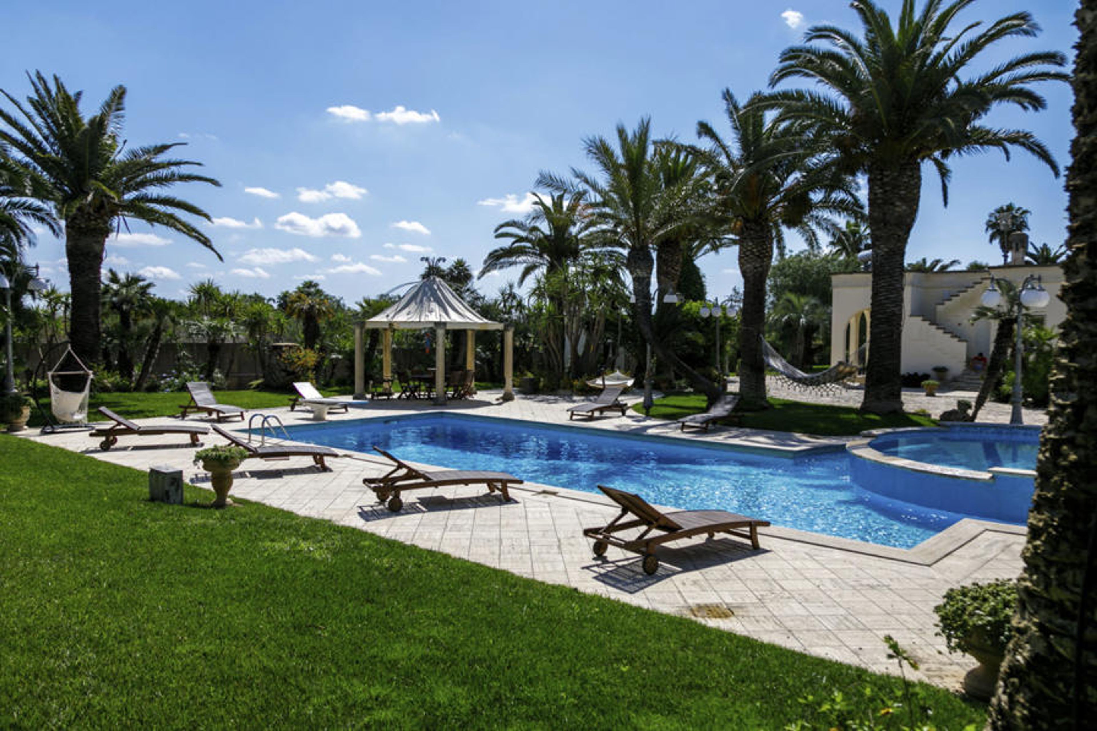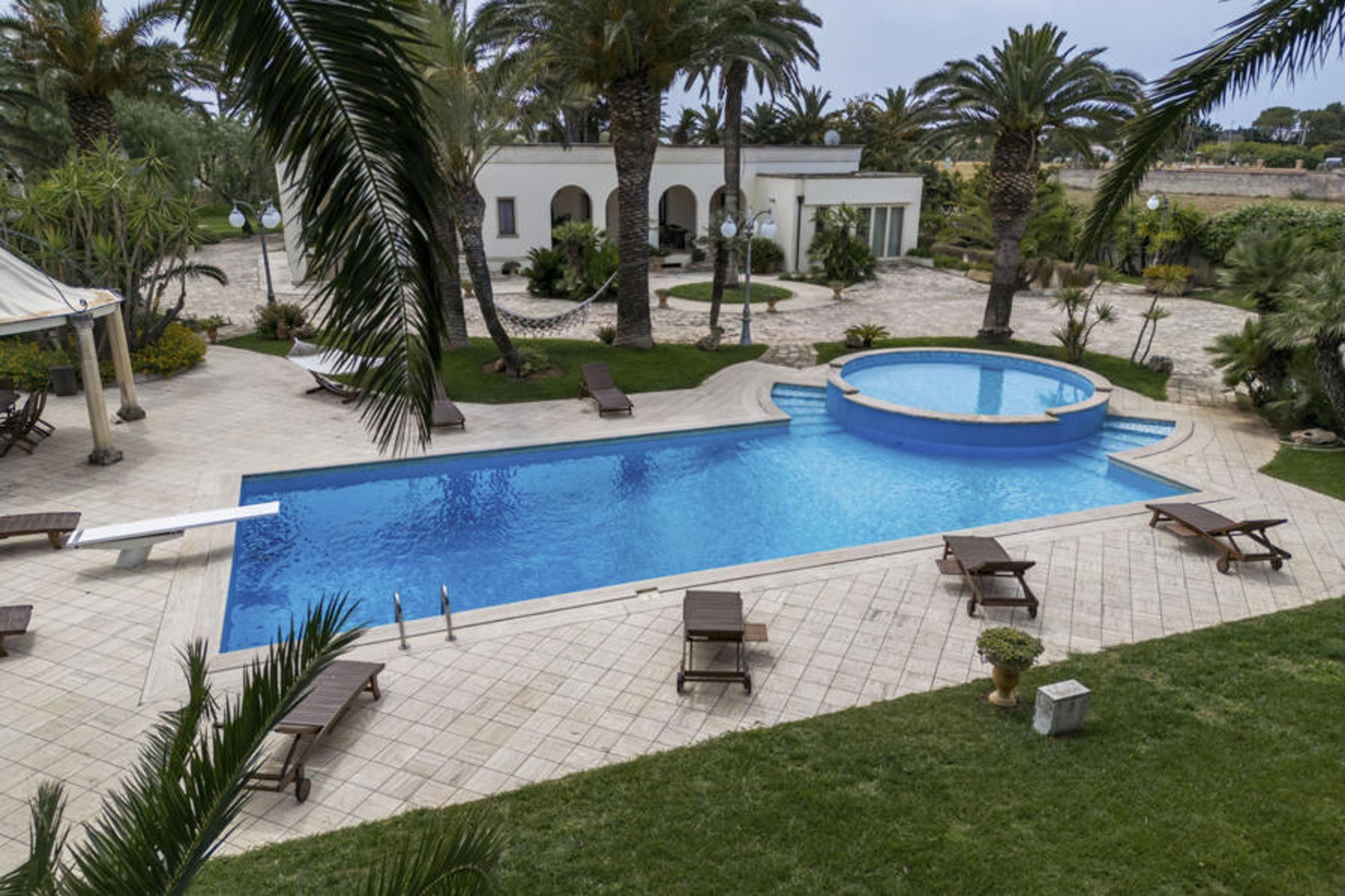 Luxurious, historical villa "Incoronata", surrounded by trees and fields. 1 km from the centre of Nardò-Città del Barocco Leccese, 15 km from the centre of Gallipoli, 24 km from the centre of Lecce, in a quiet, sunny position, 3 km from the sea, 3 km from the beach, in the countryside. Private: property (fenced), large, beautiful, well-kept garden 6'000 m2 (fenced) with flowers and trees, lawn for sunbathing, swimming pool with privacy (6 x 14 m, depth 90 - 270 cm, seasonal availability: 01.Apr. - 31.Oct.). Shower/WC in the pool area, paddling pool, outdoor shower, pergola, garden furniture, barbecue, pool maintenance by the owner/gardener. Linen change (suppl. charge extra). Towel change (suppl. charge extra). Parking on the premises. Shop, supermarket 700 m, restaurant 3 km, bar, bakery, bus stop 700 m, railway station "Nardò" 3 km, sandy beach "Santa Caterina" 3 km, rocky beach "Porto Selvaggio" 3 km. Tennis, sports centre 400 m. Nearby attractions: Melpignano- Città della Taranta 40 km, Otranto 60 km, Santa Maria di Leuca- Punta Sud Puglia 60 km, Alberobello 143 km, Polignano a Mare 149 km, Matera 162 m. Hiking paths: Parco Naturale Porto Selvaggio 25 km, Parco Naturale Terra delle Gravine 119 km, Grotte carsiche di Castellana 155 km. Please note: car recommended. In the basement of the villa is a separate, unoccupied apartment. The children's pool is 90 cm deep.